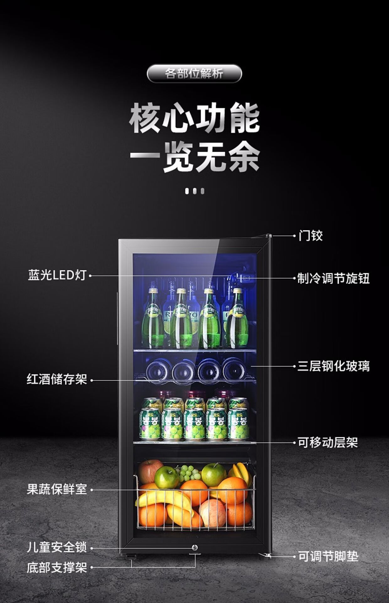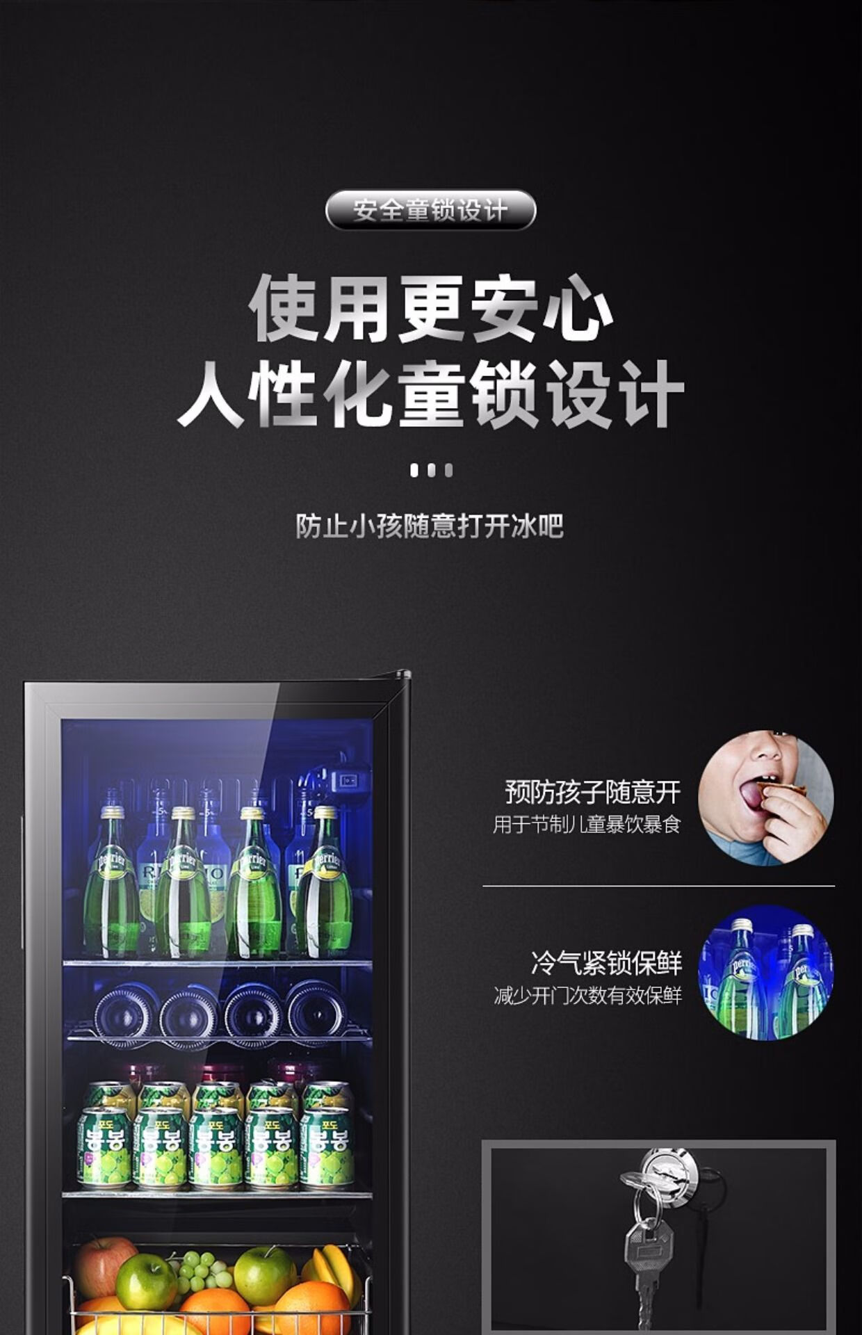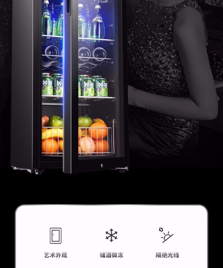 Double red wine cabinet, ice bar, office household single-door refrigerator, e-sports hotel tea small refrigerator sample cabinet BC-50 black (fully refrigerated and fresh-keeping + locked)