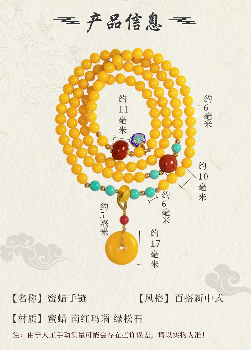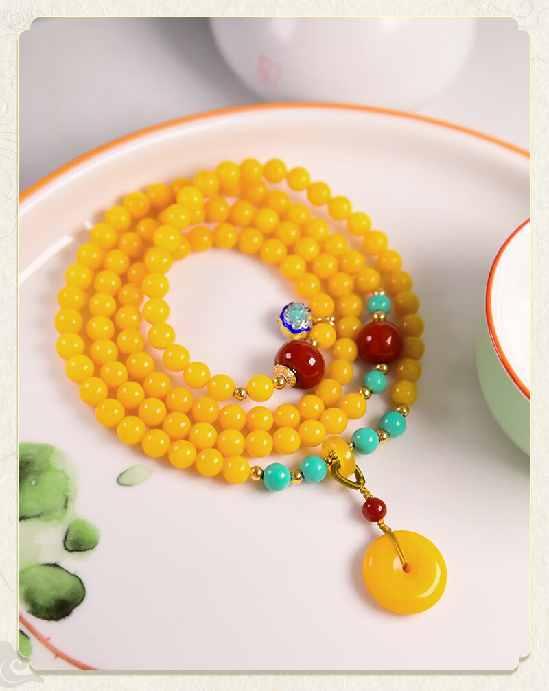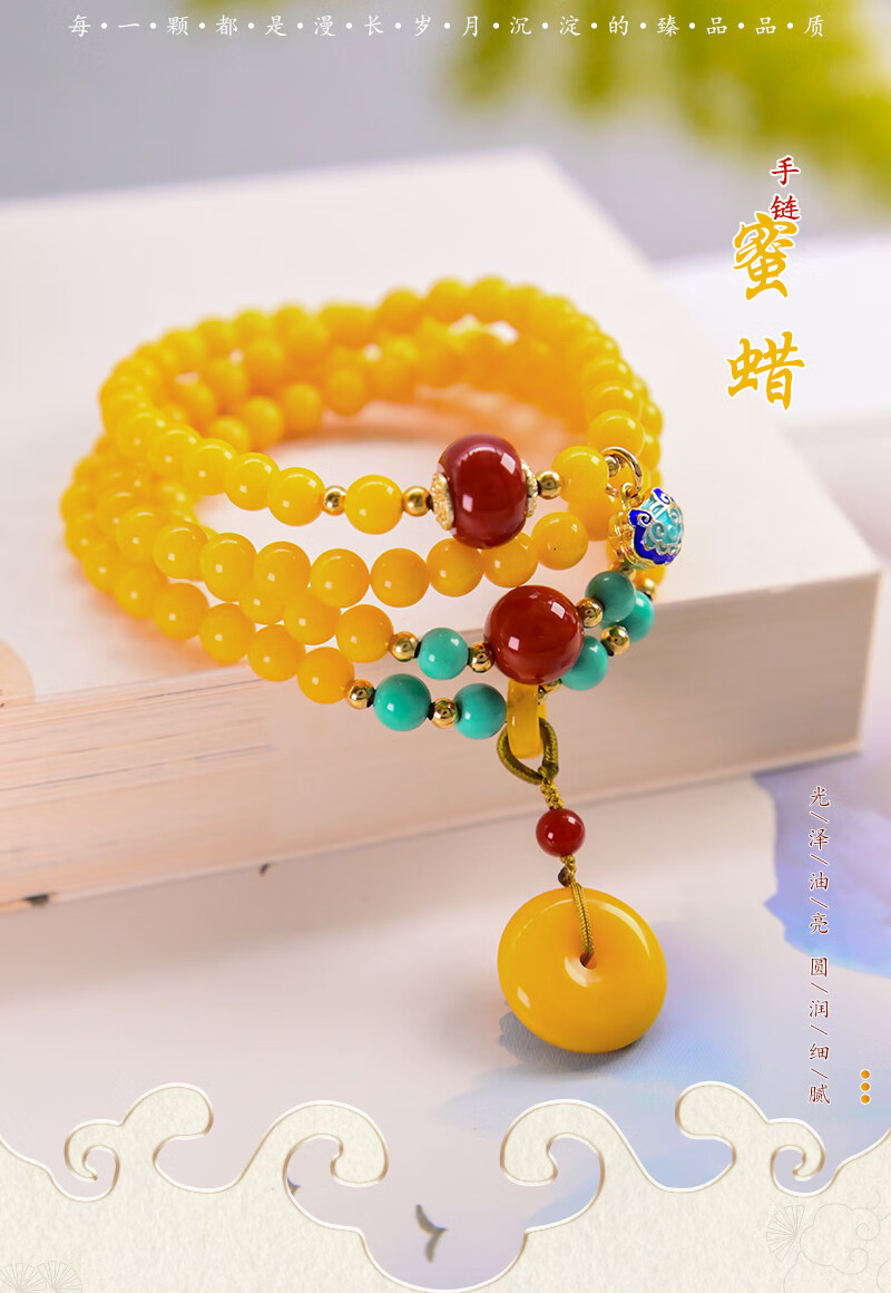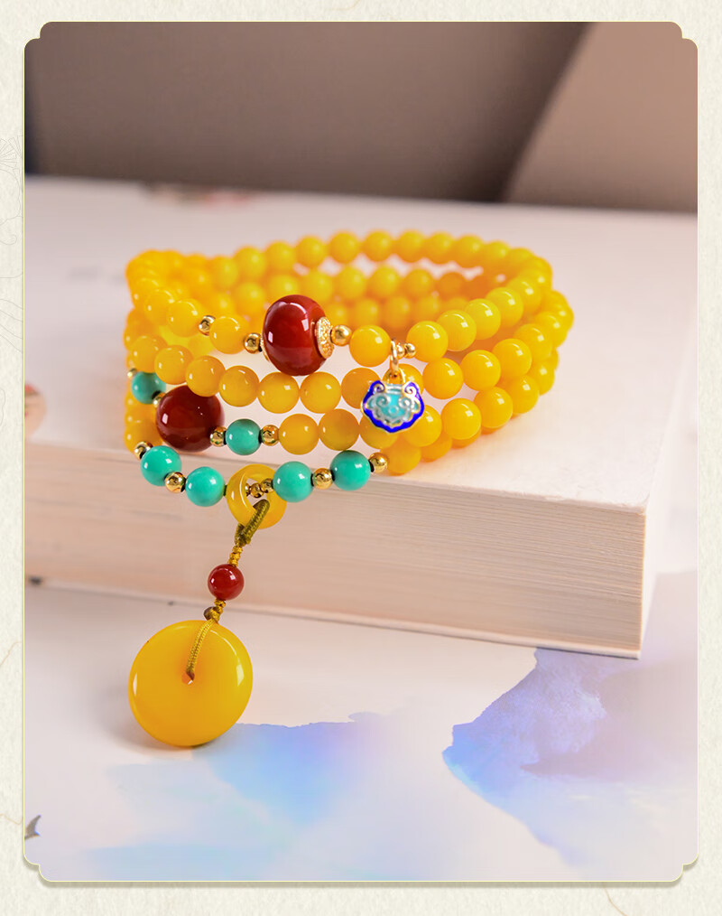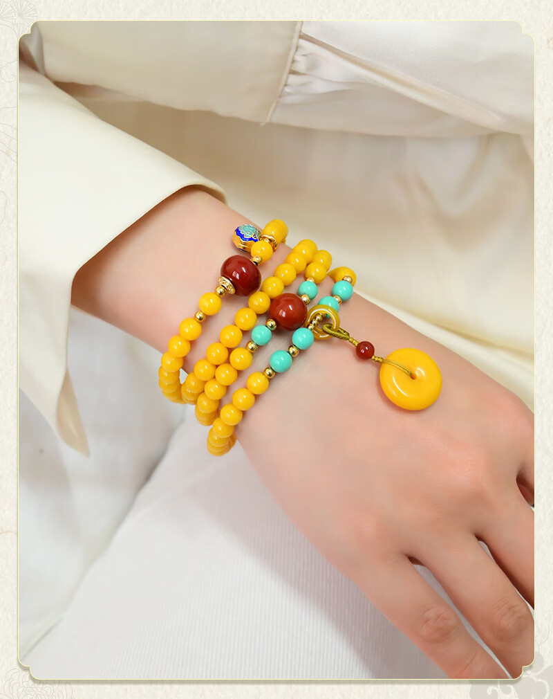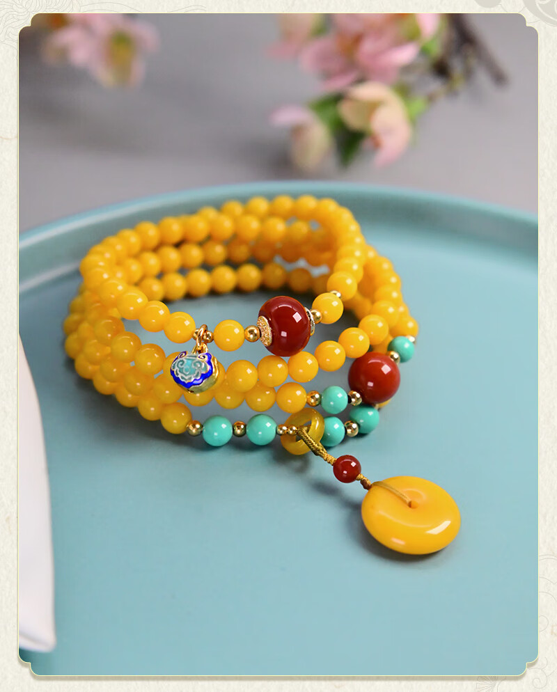 COASZE beeswax multi-circle bracelets, chicken fat yellow amber 108 rosary beads bracelet, safety buckle temperament retro women's bracelet, chicken fat yellow beeswax multi-circle bracelets