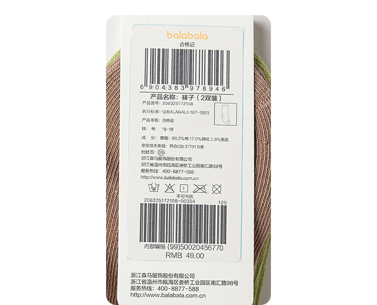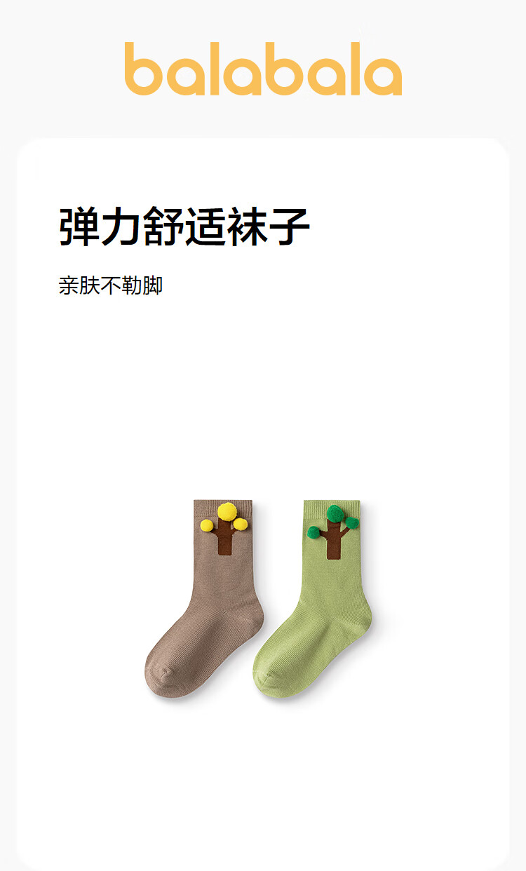 Balabala shopping mall same style boys' socks autumn new children's mid-calf socks that do not strangle feet fun two pairs of coffee green tone 00354 1-3 years old 80cm