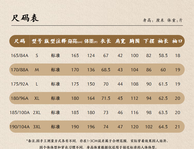 China (cm) 160-165/84-86 165-170 / 88-90 167-172 / 92-96 168-173 / 98-102 170-176 / 106-110