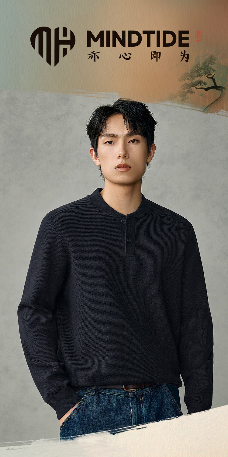 Heilan House (HLA) Knitted Sweater Men's 25 New Yixinzhiwei Series Henley Collar Sweater Men's Autumn Navy 1B S 165/84A Recommended 114~124Jin Jin equals 0.5 kg