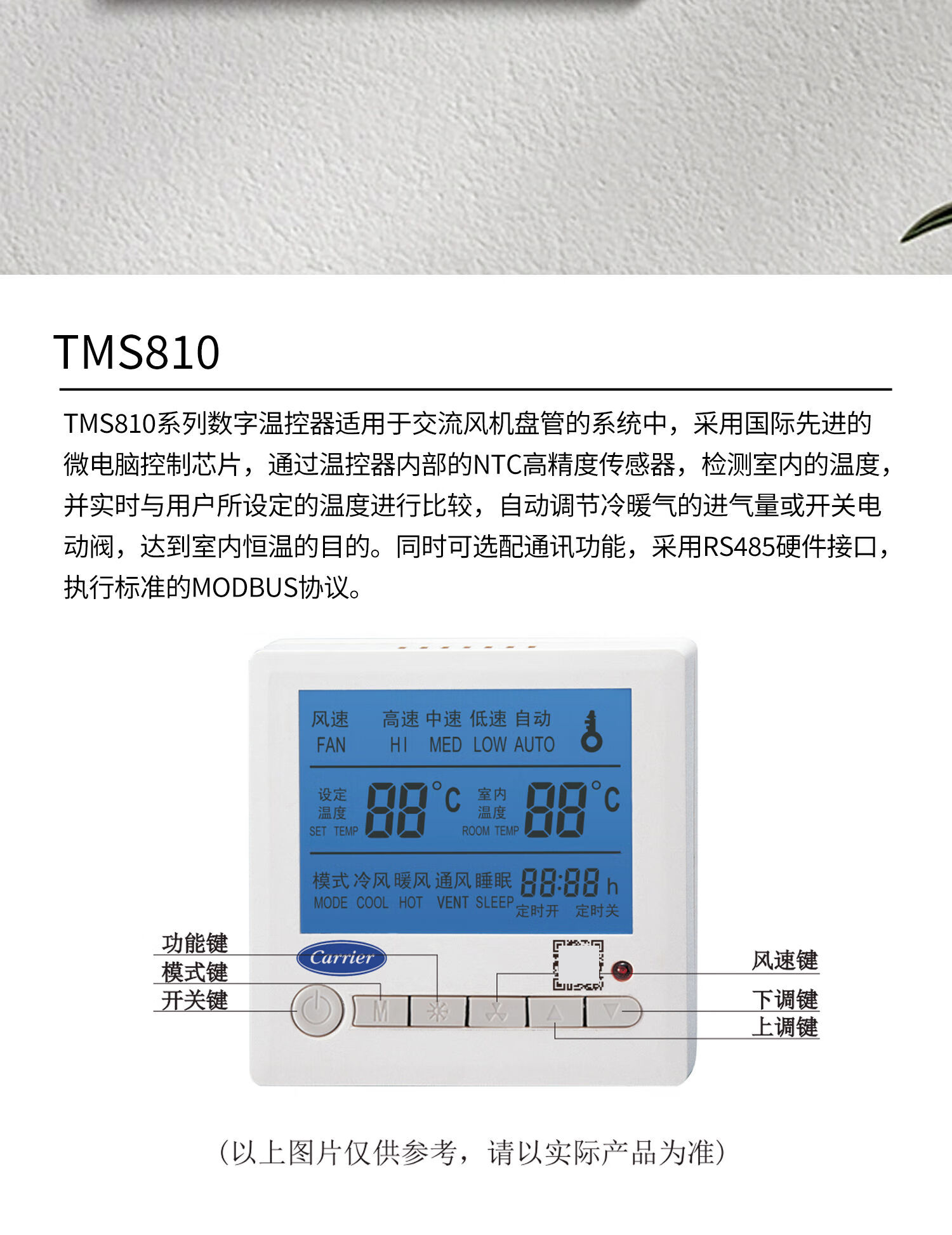 Carrier thermostat with 485 communication function central air conditioning LCD panel fan coil switch TMS810R TMS810R-YL
