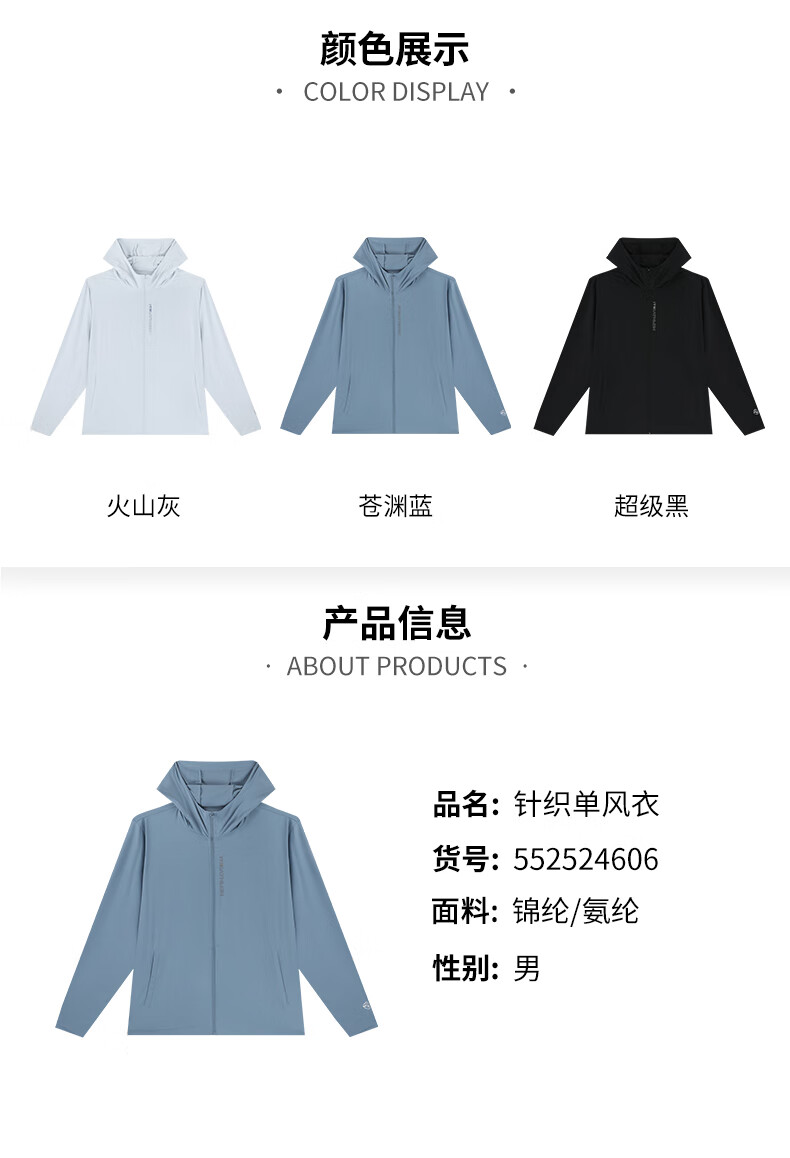 361 Men's Sports Windbreaker 2025 Autumn New Hooded Jacket Outdoor Fishing Running Top Men's Thin Sun Protection Jacket Cangyuan Blue S (165)