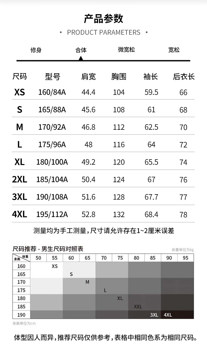 China (cm) 160-165/84-86 165-170 / 88-90 167-172 / 92-96 168-173 / 98-102 170-176 / 106-110
