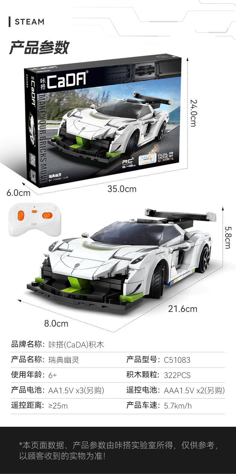 CaDA CaDA remote control building blocks assembled children's toys Swedish ghost racing sports car model boy car C51083 Swedish ghost-remote control version-322 particles