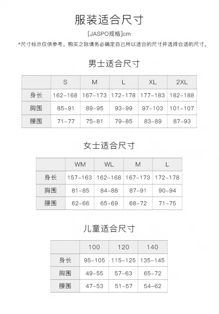 China (cm) 165 / 88-90 170 / 96-98 175 / 108-110 180 / 118-122 185 / 126-130