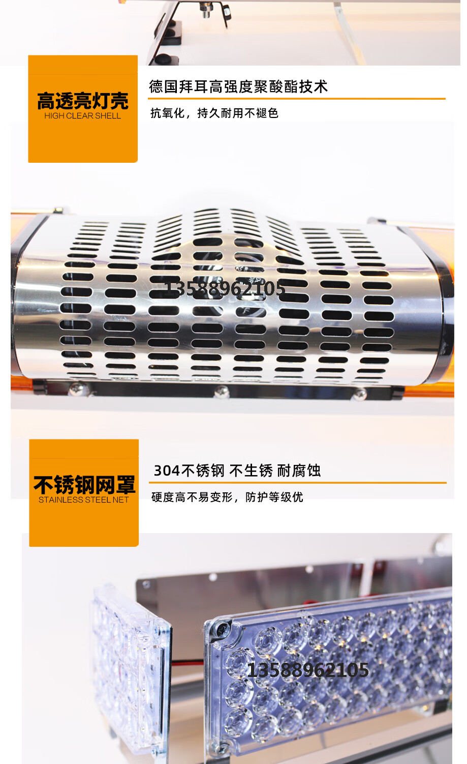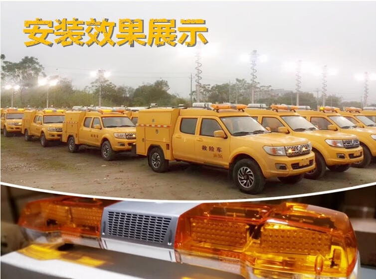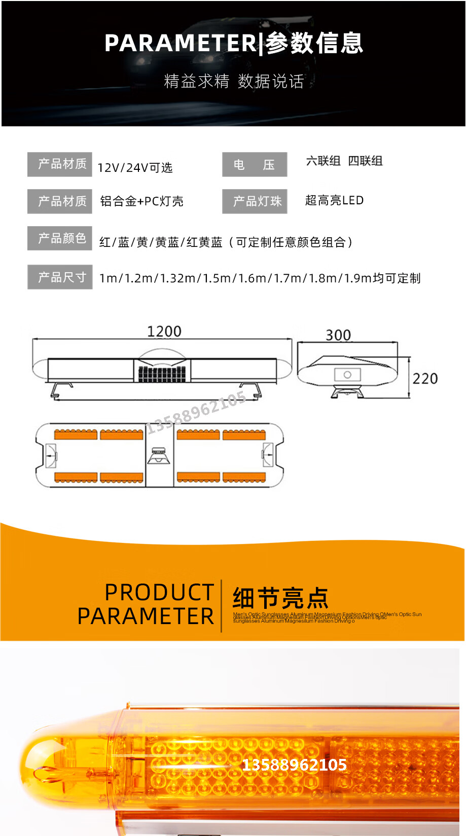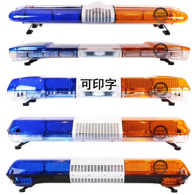 Comprehensive management of engineering vehicle warning lights, roof warning lights, yellow and blue LED long row explosion flash lights, trailer rescue lights, I-shaped printable type 1.5 meters, light + 200W handle