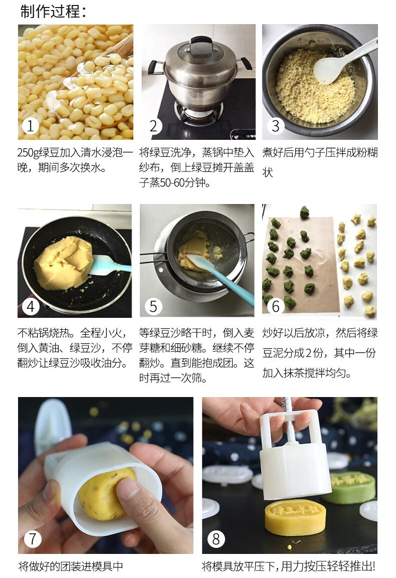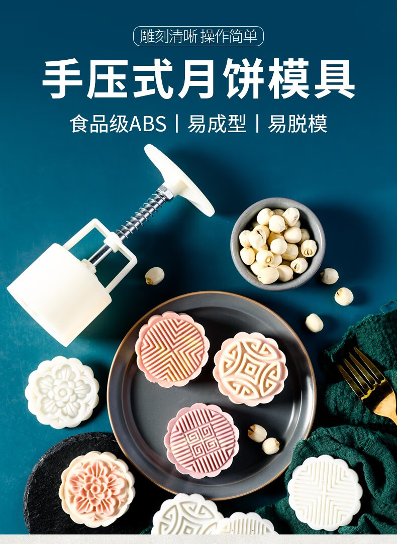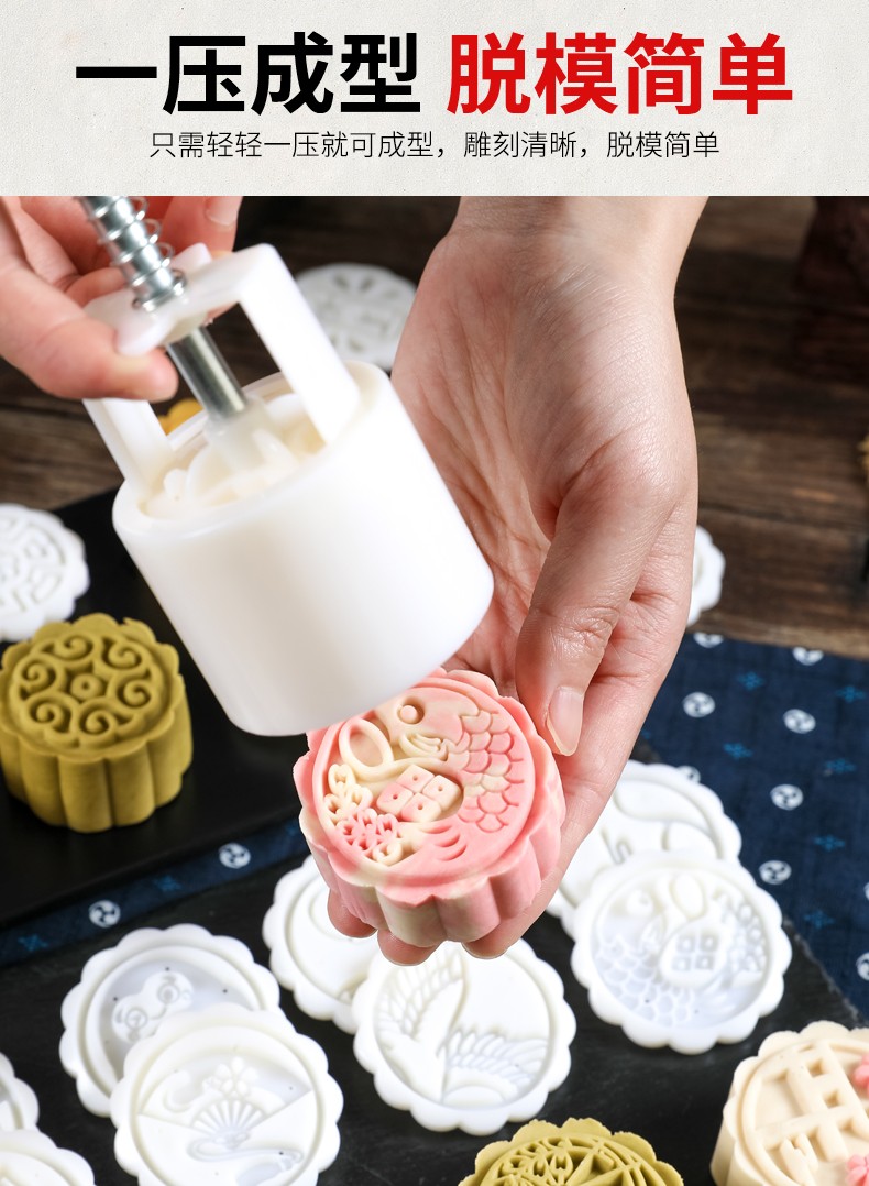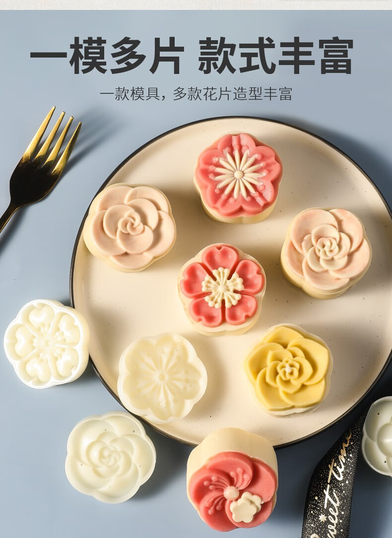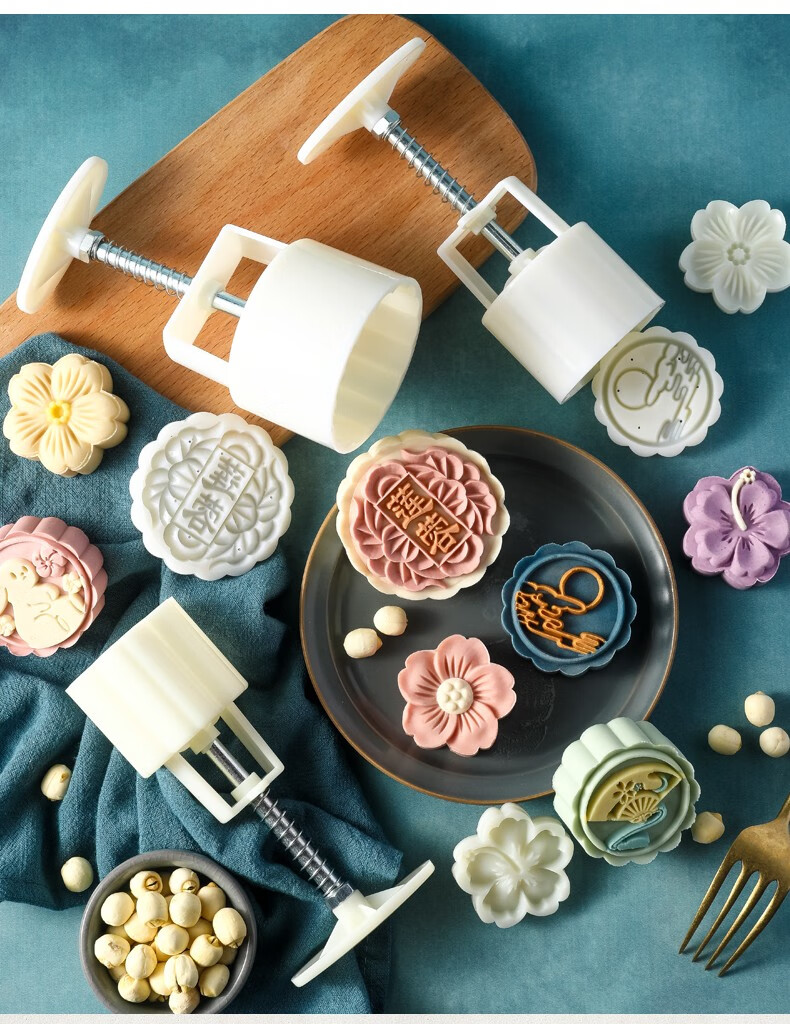 Baishengniu Mid-Autumn Mooncake Mold Household Non-stick Mung Bean Cake Pastry Model Printing Ice Skin Hand-pressed Baking Dessert Mold Cherry Blossom Plum 6 Flowers (50g)