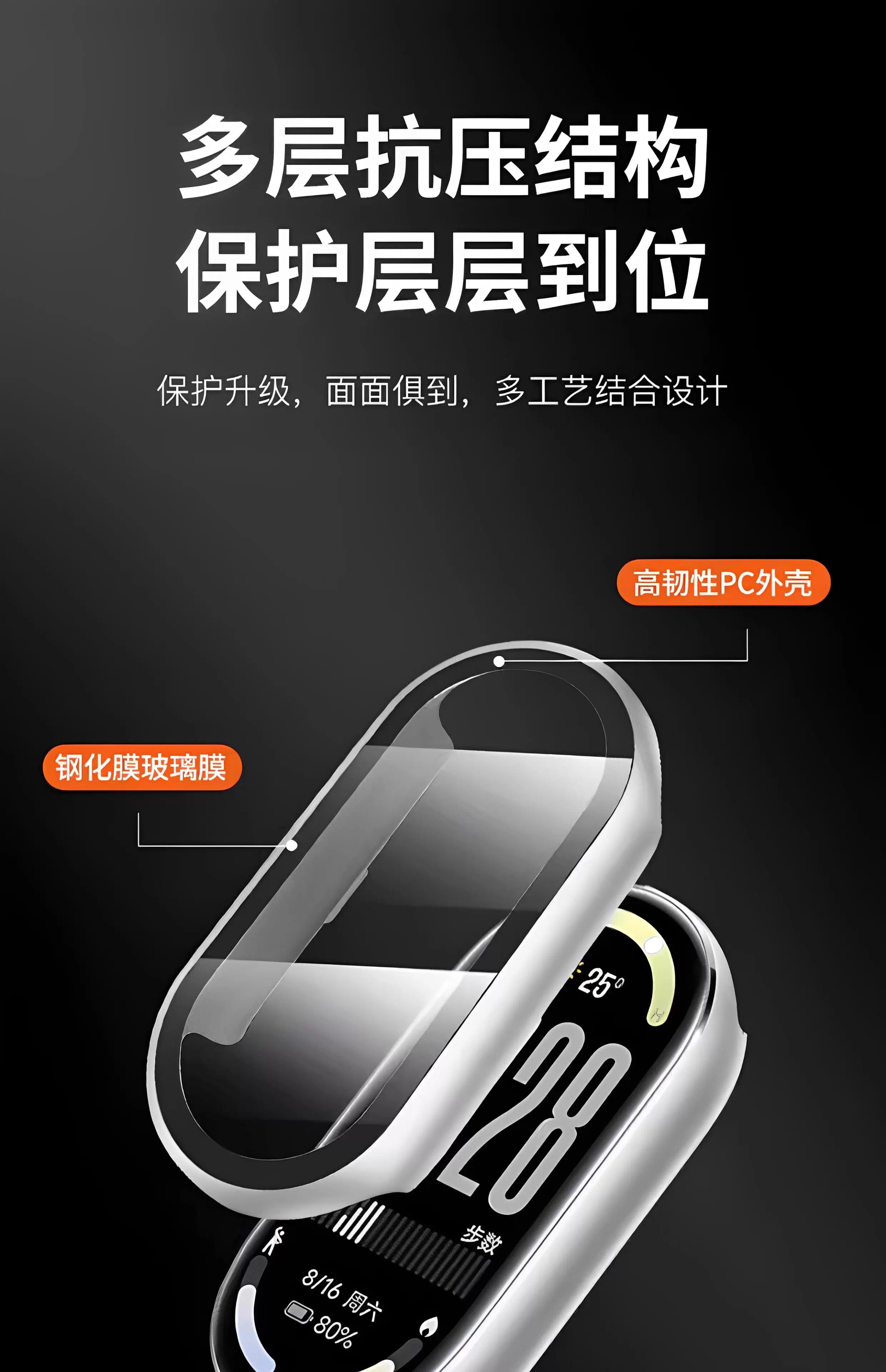 Tianfu is suitable for Xiaomi Mi Band 10 protective shell film integrated 10/9 bracelet watch case nfc version protective cover Xiaomi 8th generation ceramic version smart bracelet tempered film high-definition anti-scratch and anti-fall shell frosted pink gold Xiaomi Mi Band 10/NFC version