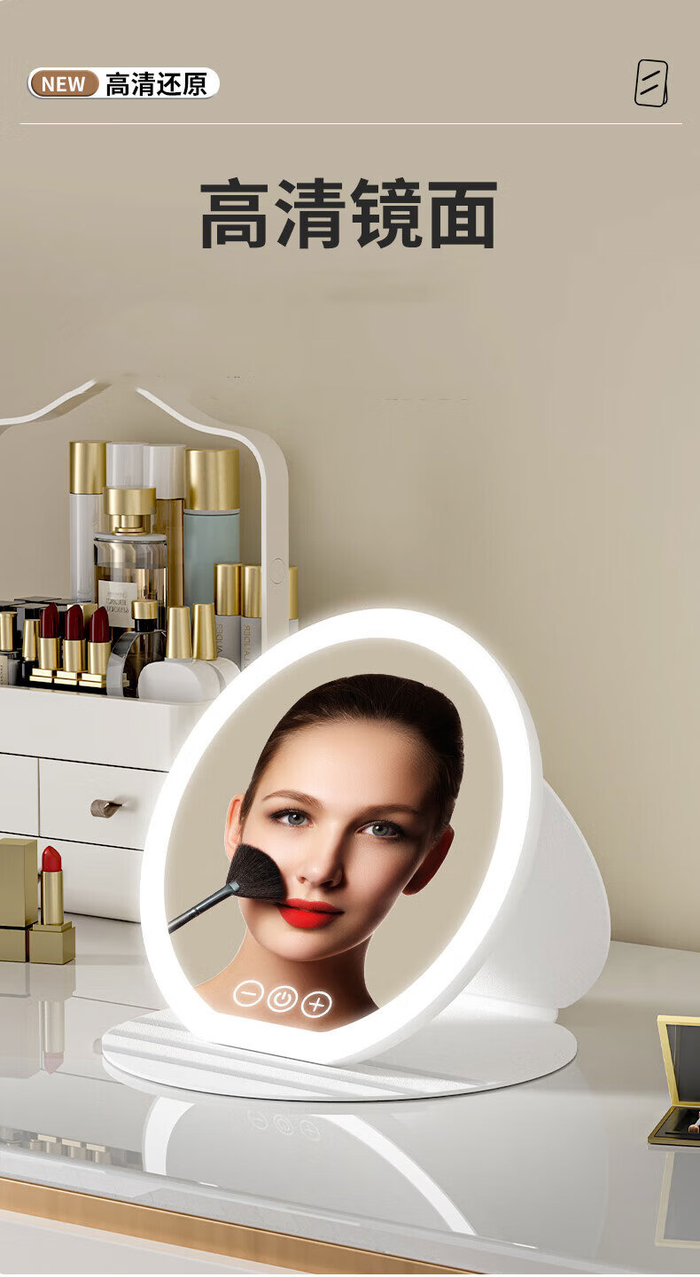 Qiyou Beauty Device Smart Cosmetic Mirror with Light LED Three-Color HD Charging Foldable Cosmetic Mirror for Student Dormitory Desktop Cosmetic Mirror Portable Christmas Gift for Girlfriend Large Size 2025 Most Popular Round Cosmetic Mirror The Hottest Model on the Internet Upgraded Smart Core Gift for Girlfriend on Chinese Valentine's Day
