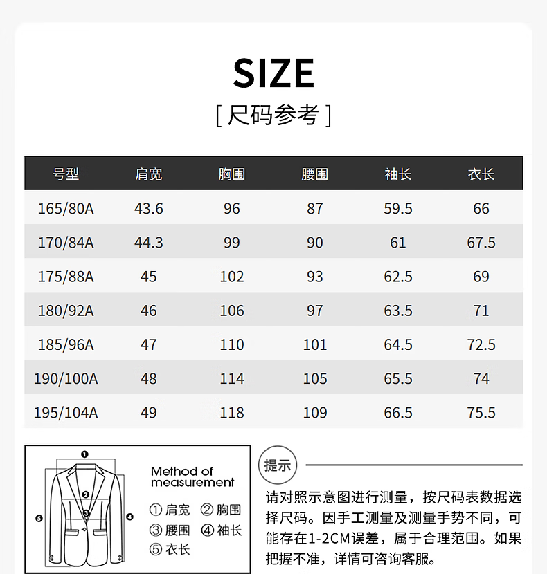 China (cm) 160-165/84-86 165-170 / 88-90 167-172 / 92-96 168-173 / 98-102 170-176 / 106-110