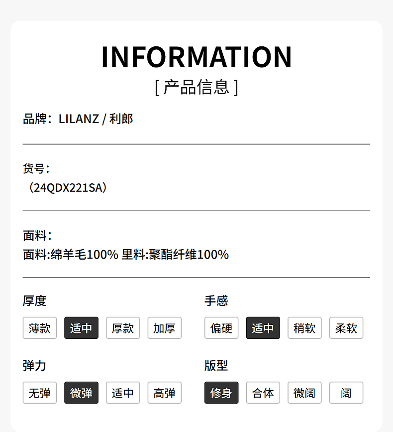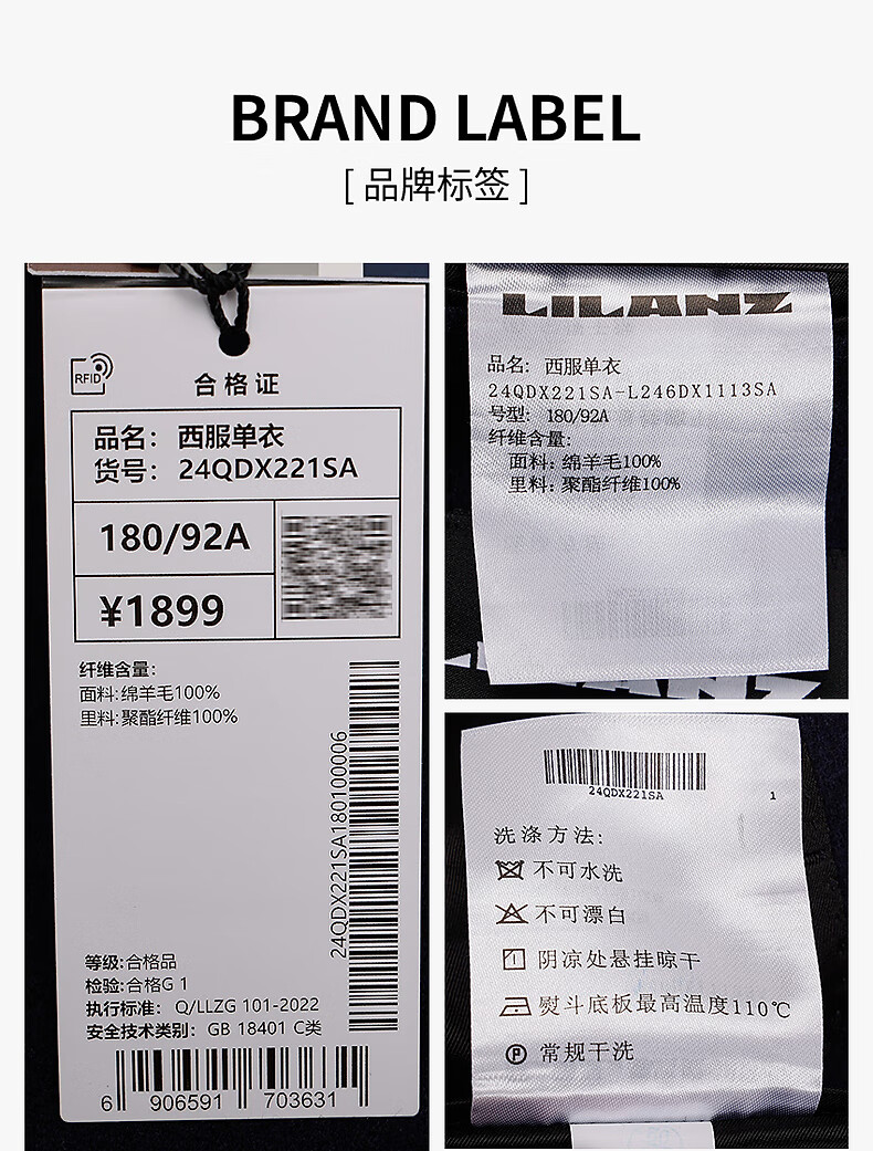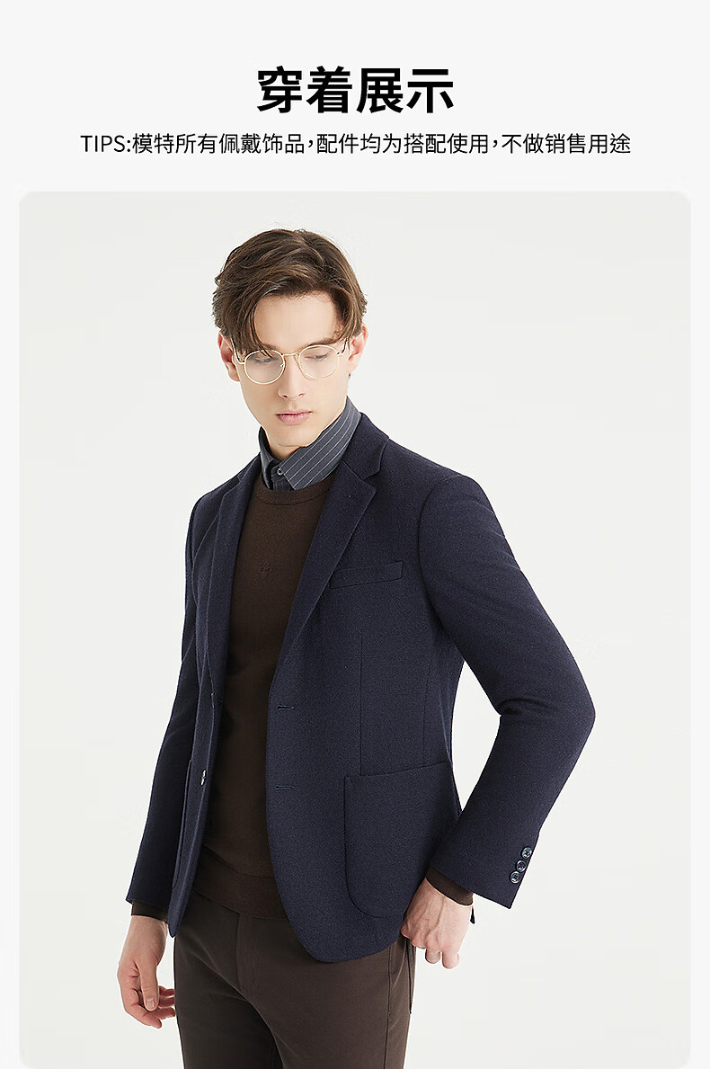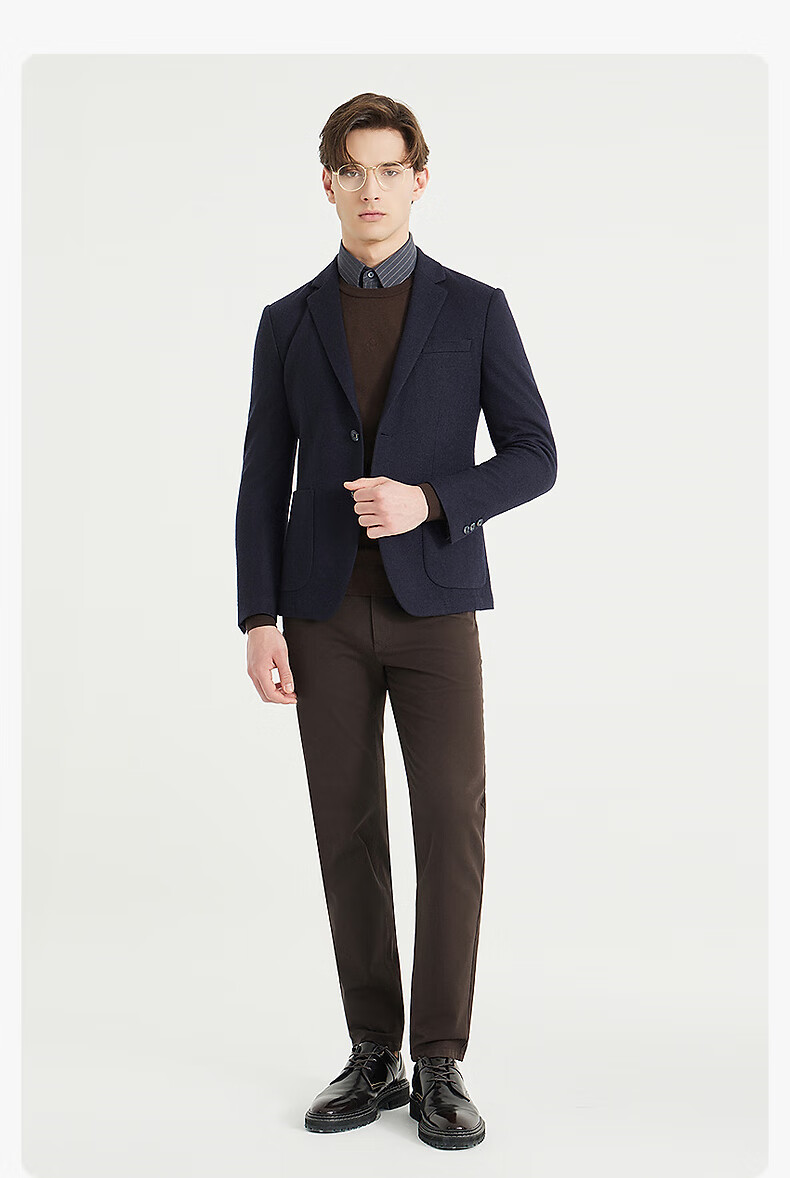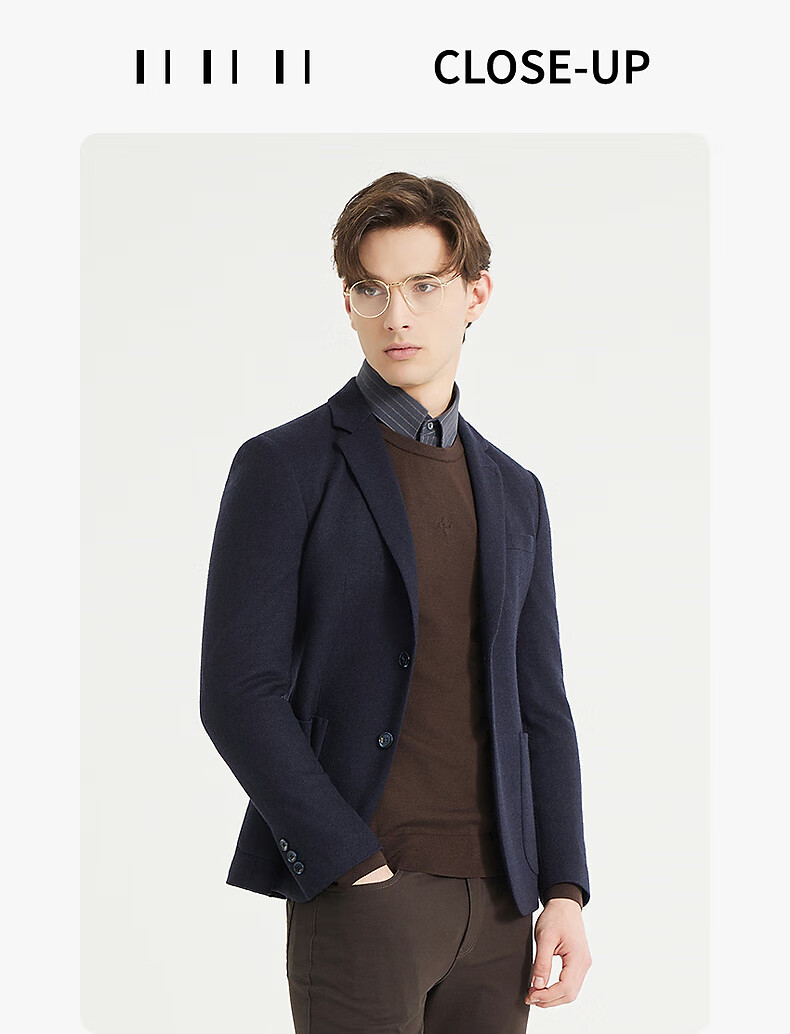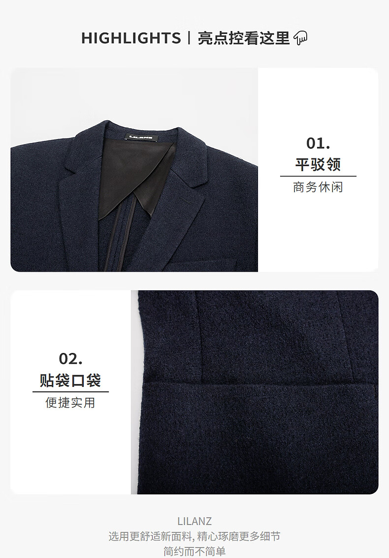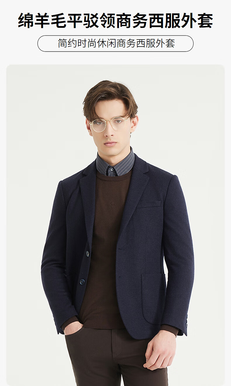 Lilang Sheep Wool 100% Wool Suit Jacket Men's Slim Slim Elastic Autumn 2025 New Suit Men's Singles Tibetan Blue (24QDX221SA) 170A