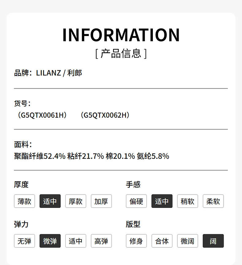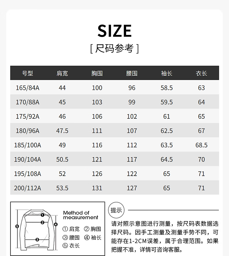 China (cm) 160-165/84-86 165-170 / 88-90 167-172 / 92-96 168-173 / 98-102 170-176 / 106-110