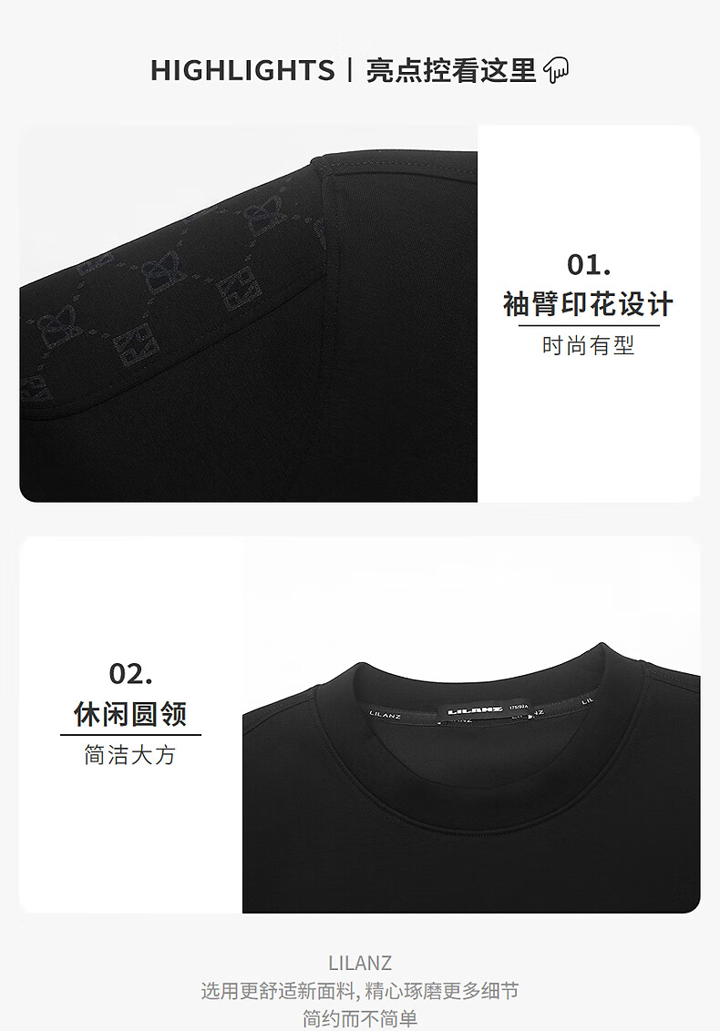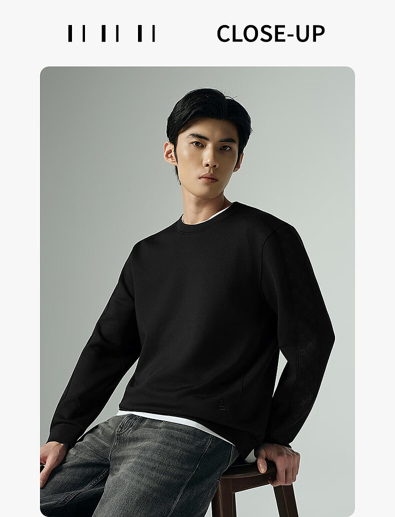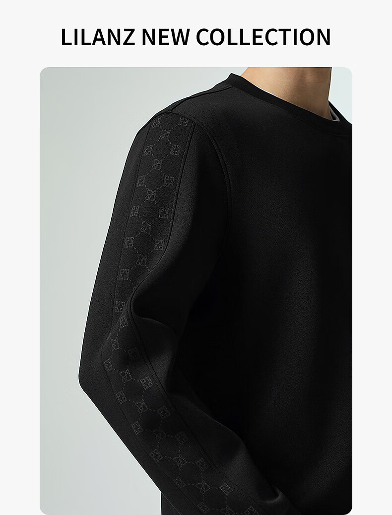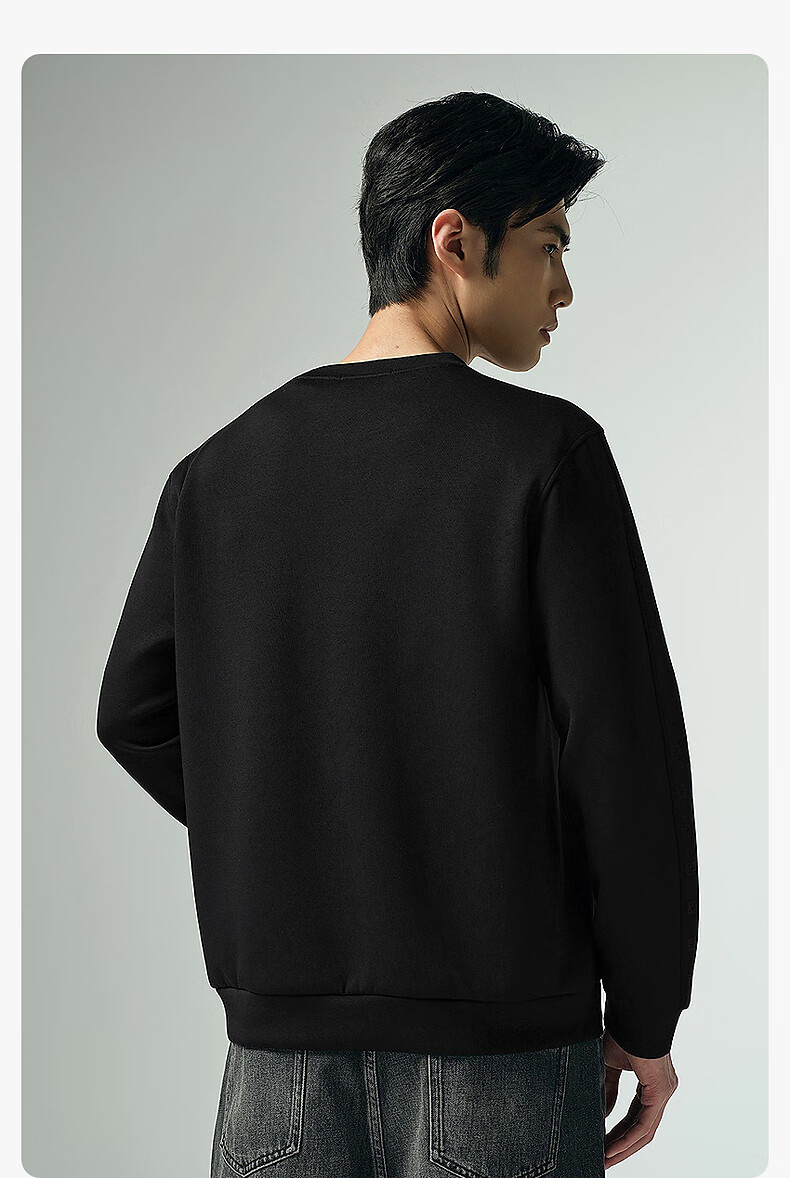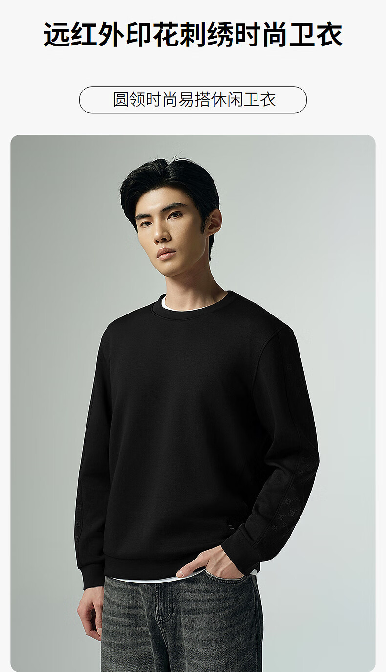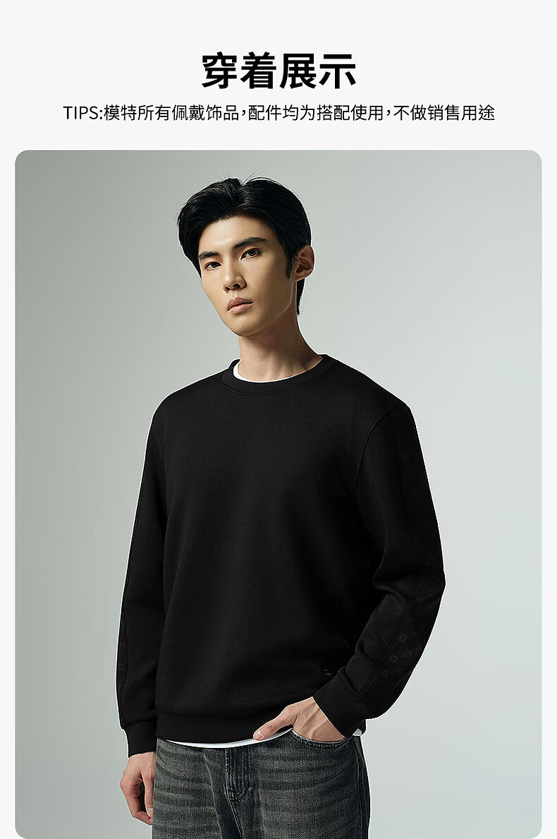 利郎卫衣男圆领远红外发热长袖T恤宽松版秋季2025新款袖臂印花卫衣 黑色(G5QTX0061H) XL 175/92A