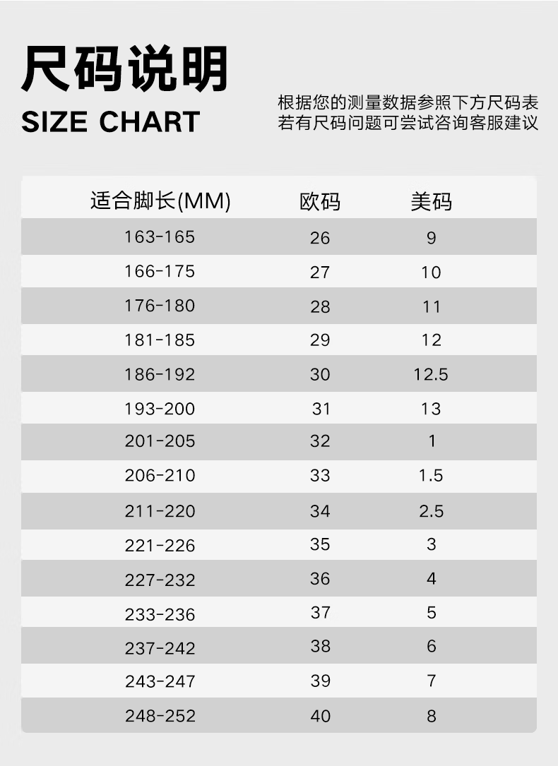 China (cm) 36 - 37 38 - 39 40 - 42 43 - 44 45 - 47