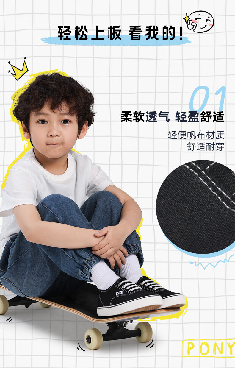Puniboni spring trendy street non-slip canvas shoes for men, women, medium and large children, one-step sports, leisure and breathable 252K1SK05BK black 26 suitable for feet about 158~160mm