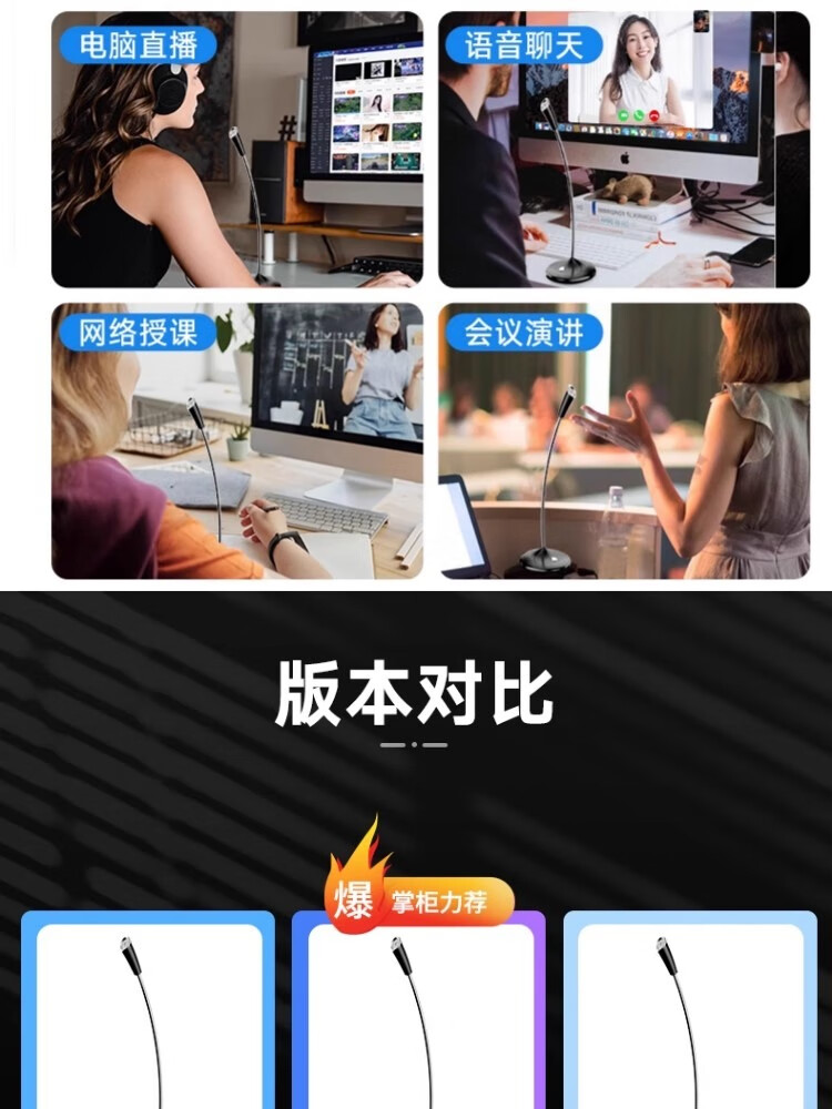 Fashion tribal desktop microphone computer 3.5 wired external microphone USB e-sports online class game voice recording desktop video conference anchor live broadcast external sound card desktop notebook HD version-USB Black