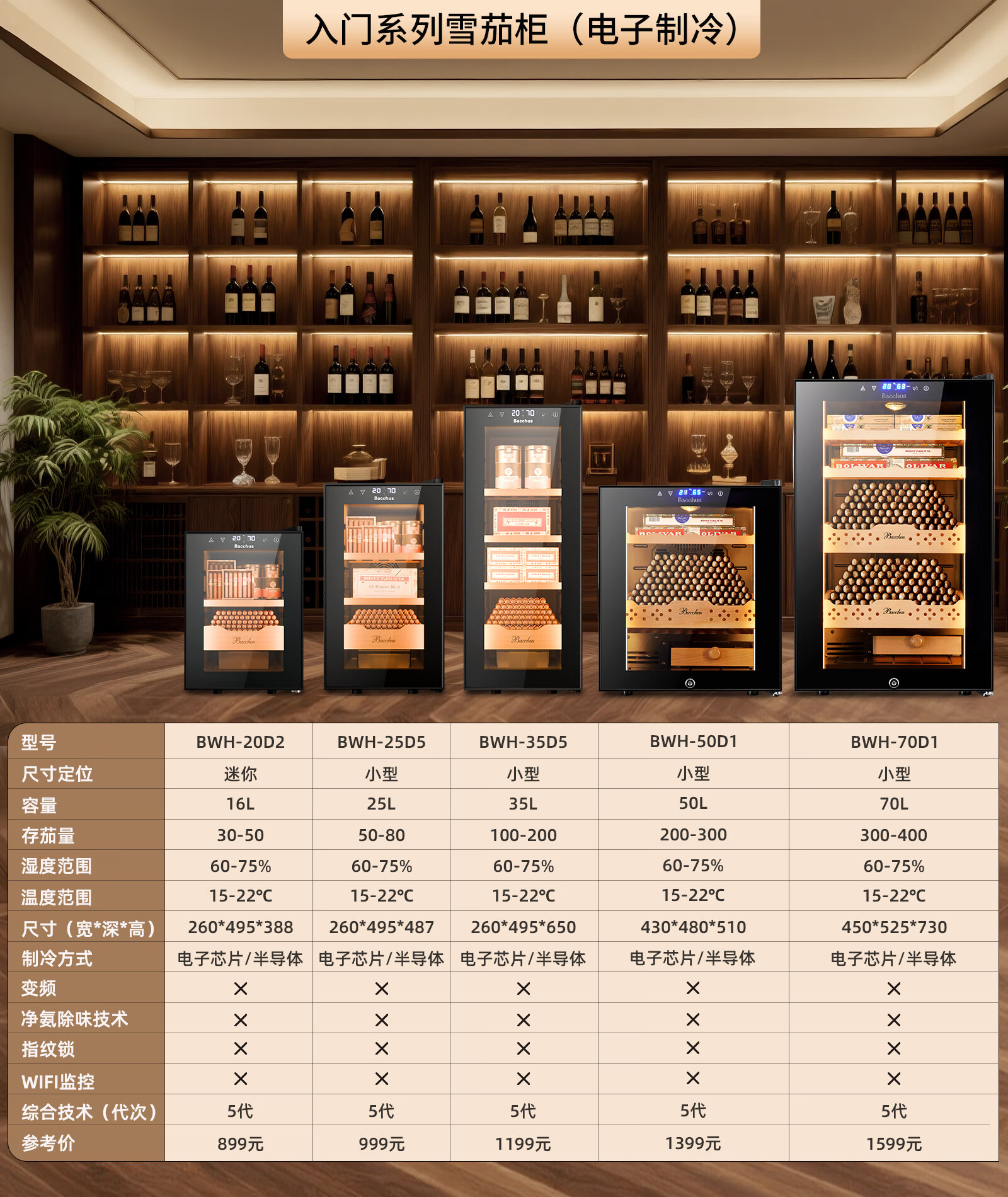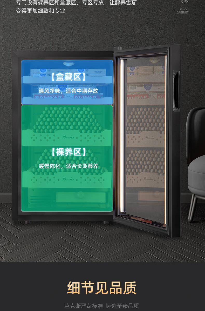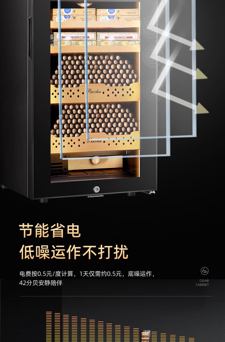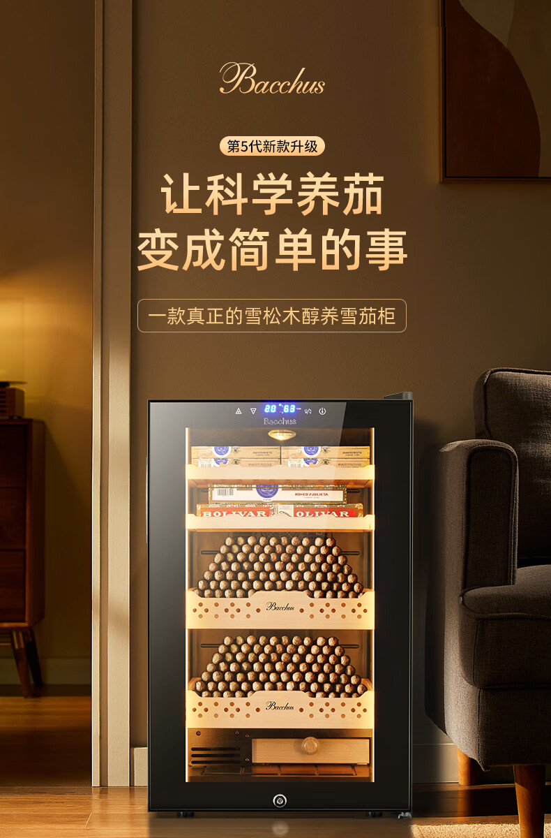 Bacchus cigar cabinet with humidity control, constant temperature and humidity control humidifier box, mini small household solid wood cedar wood embedded mellow culture naked culture red wine cigar energy-saving air-cooled frost-free 5th generation constant temperature and humidity + side light (1 naked culture + 1 box culture) 16L