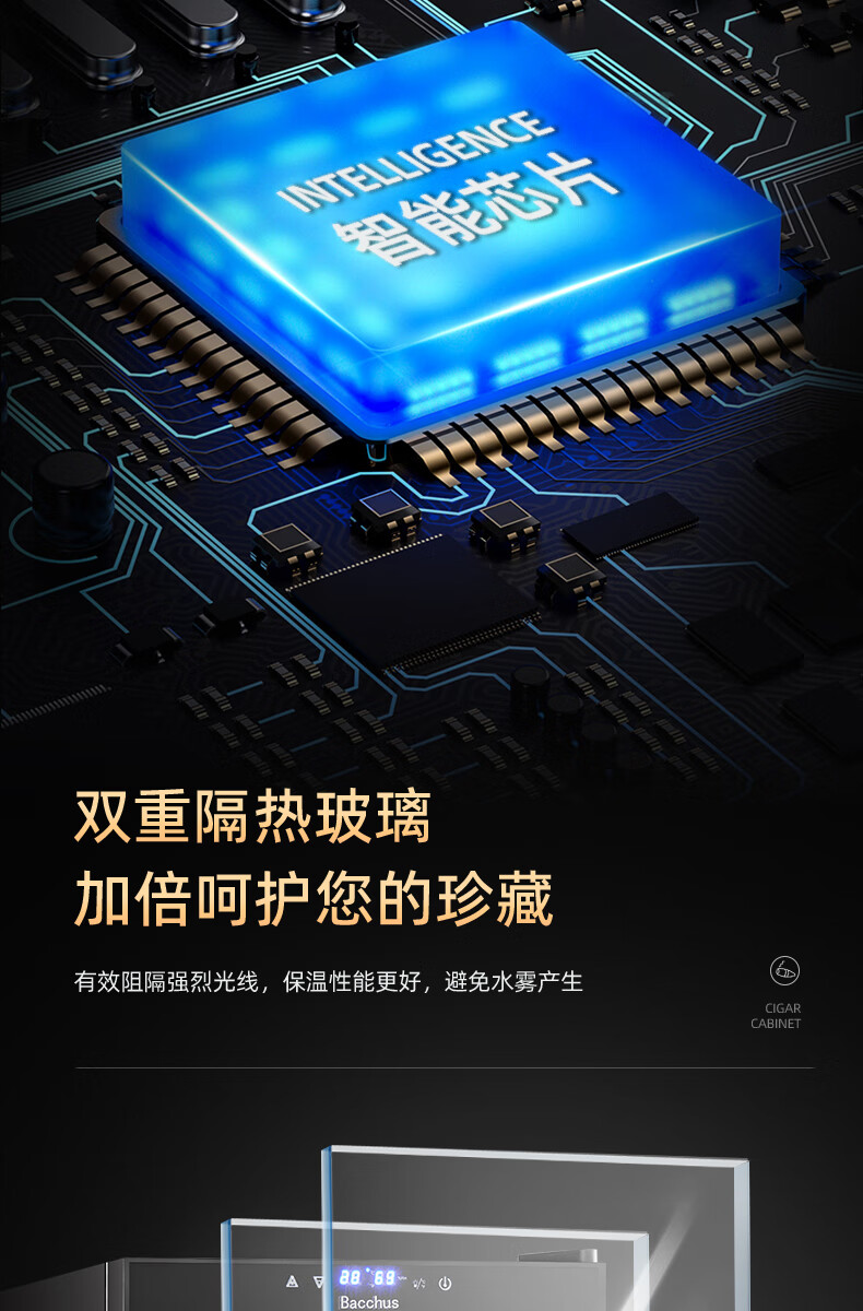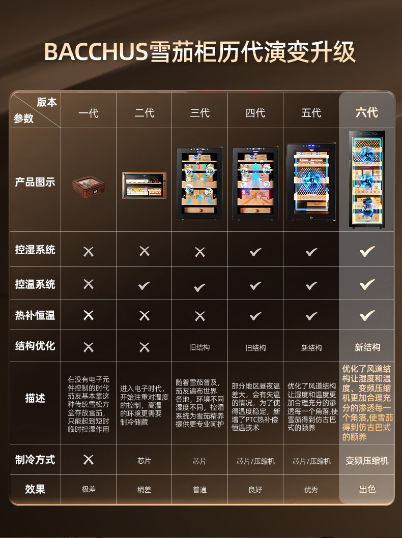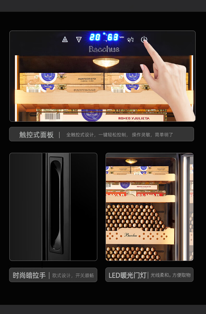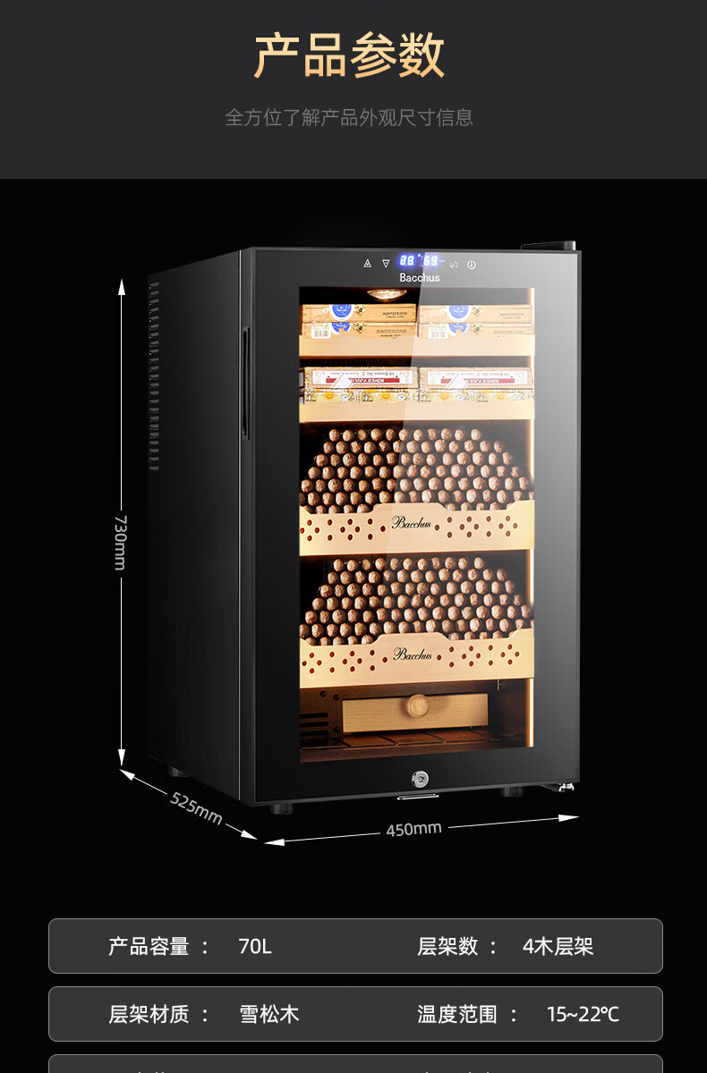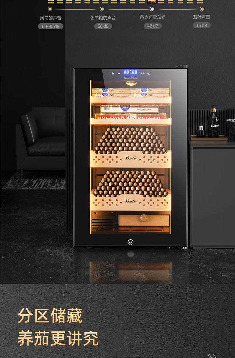 Bacchus cigar cabinet with humidity control, constant temperature and humidity control humidifier box, mini small household solid wood cedar wood embedded mellow culture naked culture red wine cigar energy-saving air-cooled frost-free 5th generation constant temperature and humidity + side light (1 naked culture + 1 box culture) 16L