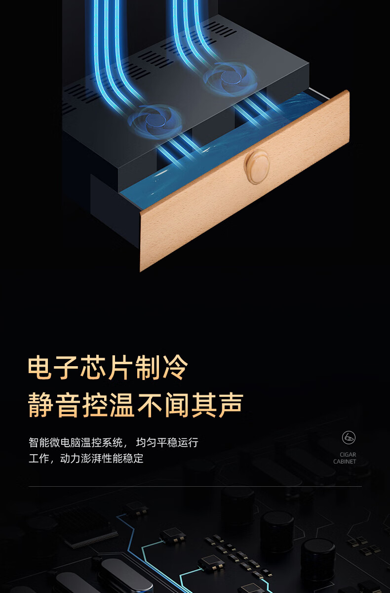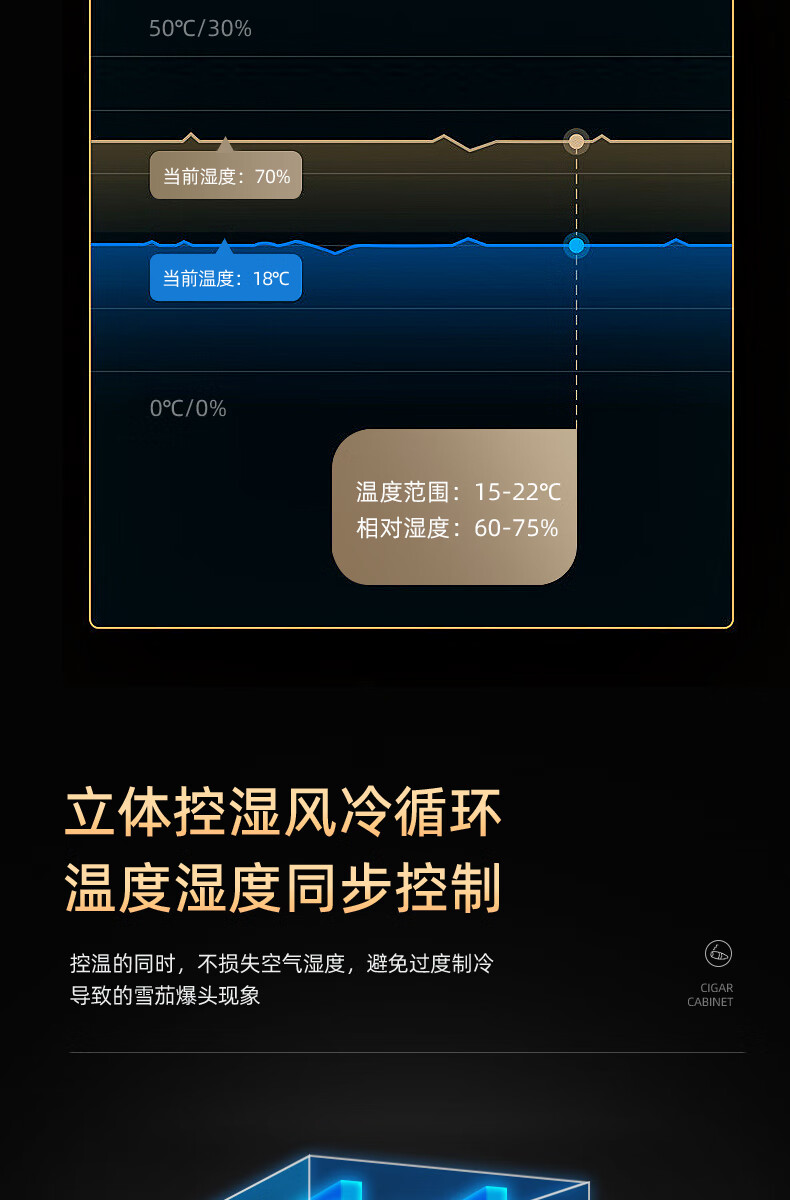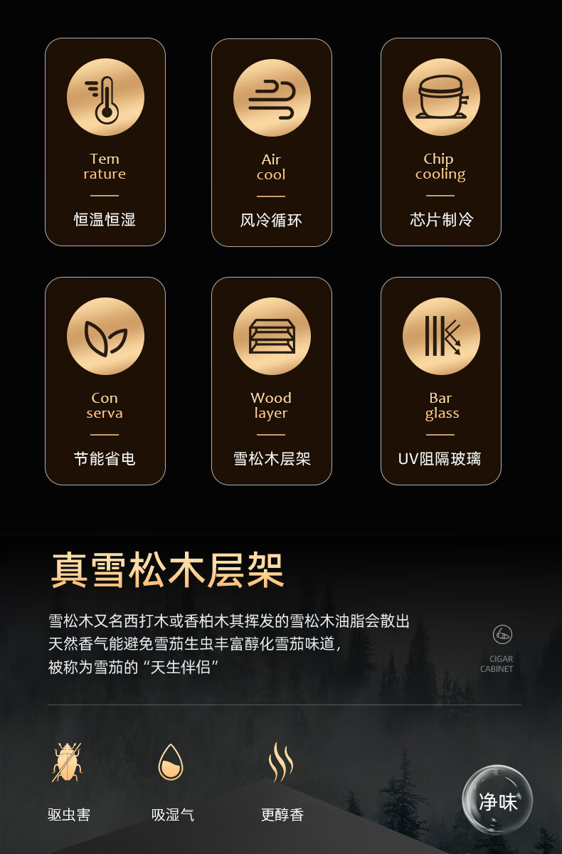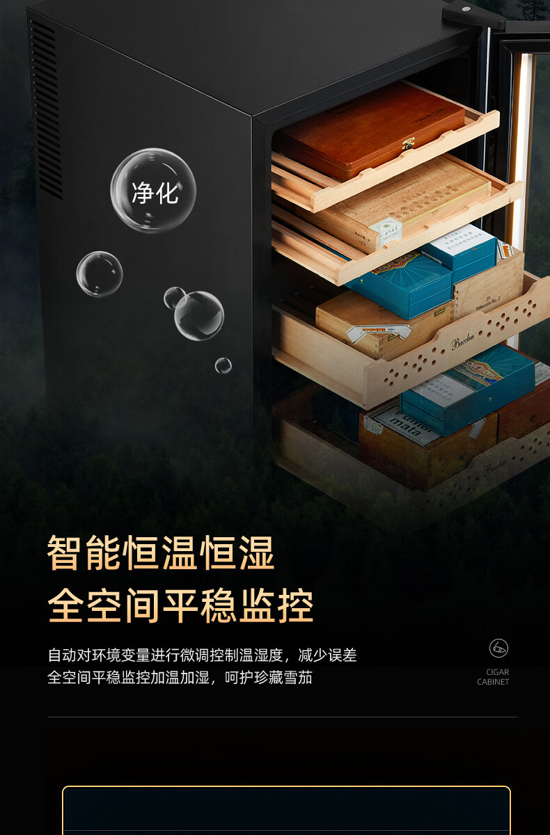 Bacchus cigar cabinet with humidity control, constant temperature and humidity control humidifier box, mini small household solid wood cedar wood embedded mellow culture naked culture red wine cigar energy-saving air-cooled frost-free 5th generation constant temperature and humidity + side light (1 naked culture + 1 box culture) 16L