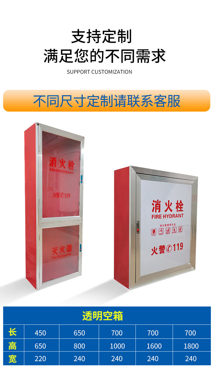 National standard fire hydrant box cabinet thickened fire self-rescue hose reel wall box shopping mall indoor fire hydrant box full set storage box fire hydrant box full set 800*650*220 fire hydrant box 1.2 thick (empty box)