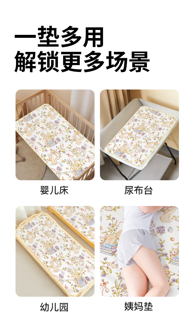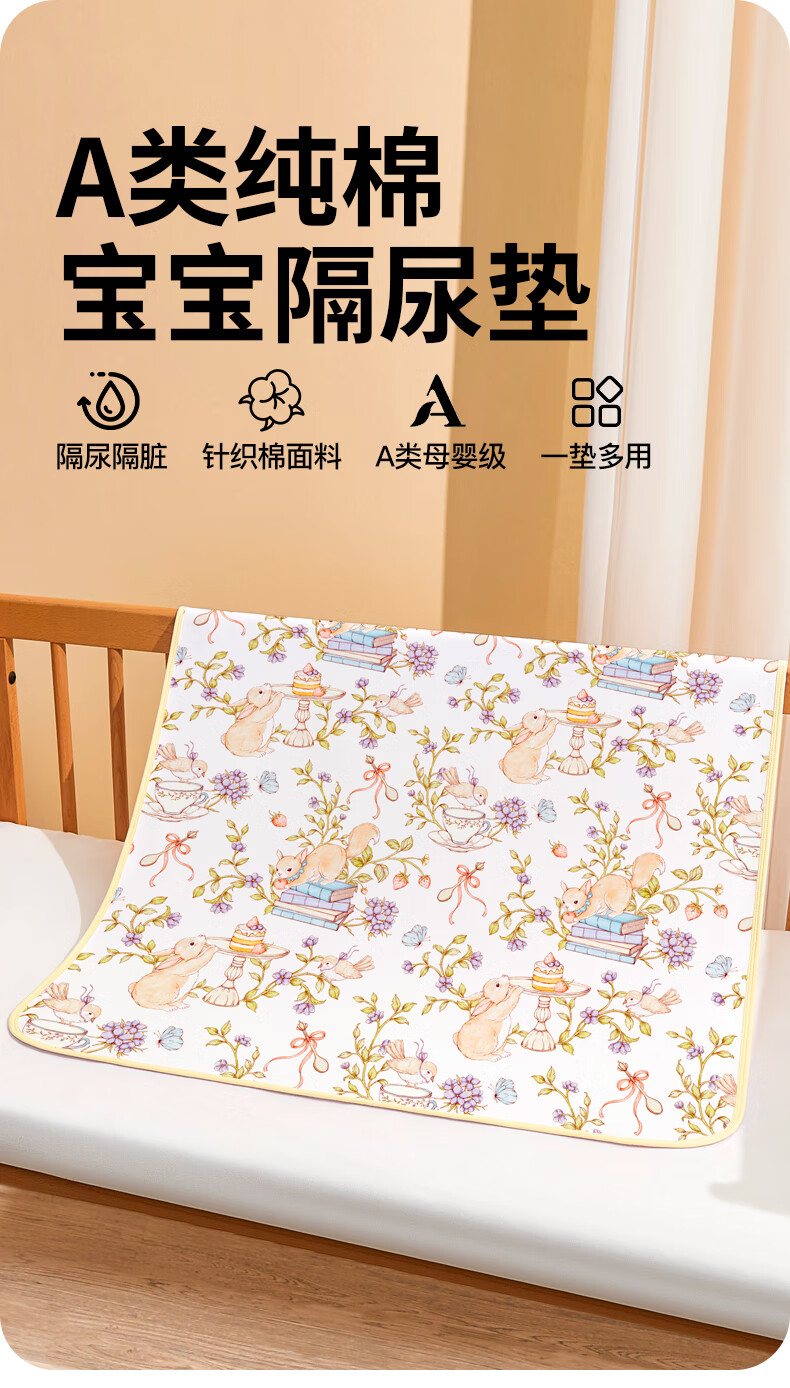 Duo Elf baby diaper pad, washable, waterproof, breathable, baby changing table, overnight pad, nursing pad, children's pure cotton sheets, Class A pure cotton fabric, forest style cute pet 120x200cm