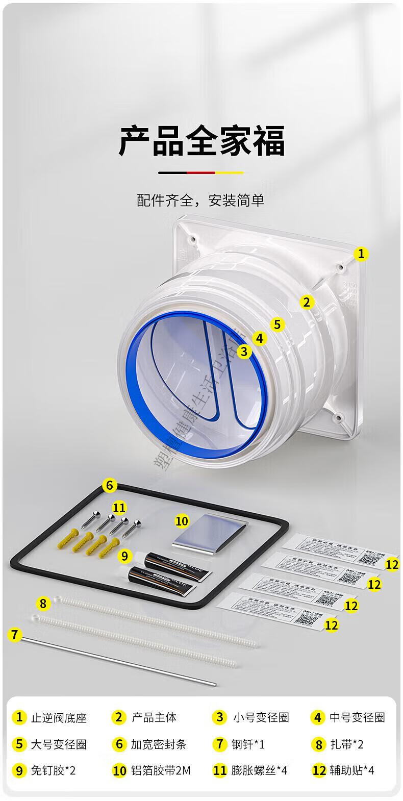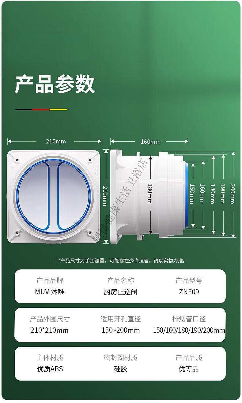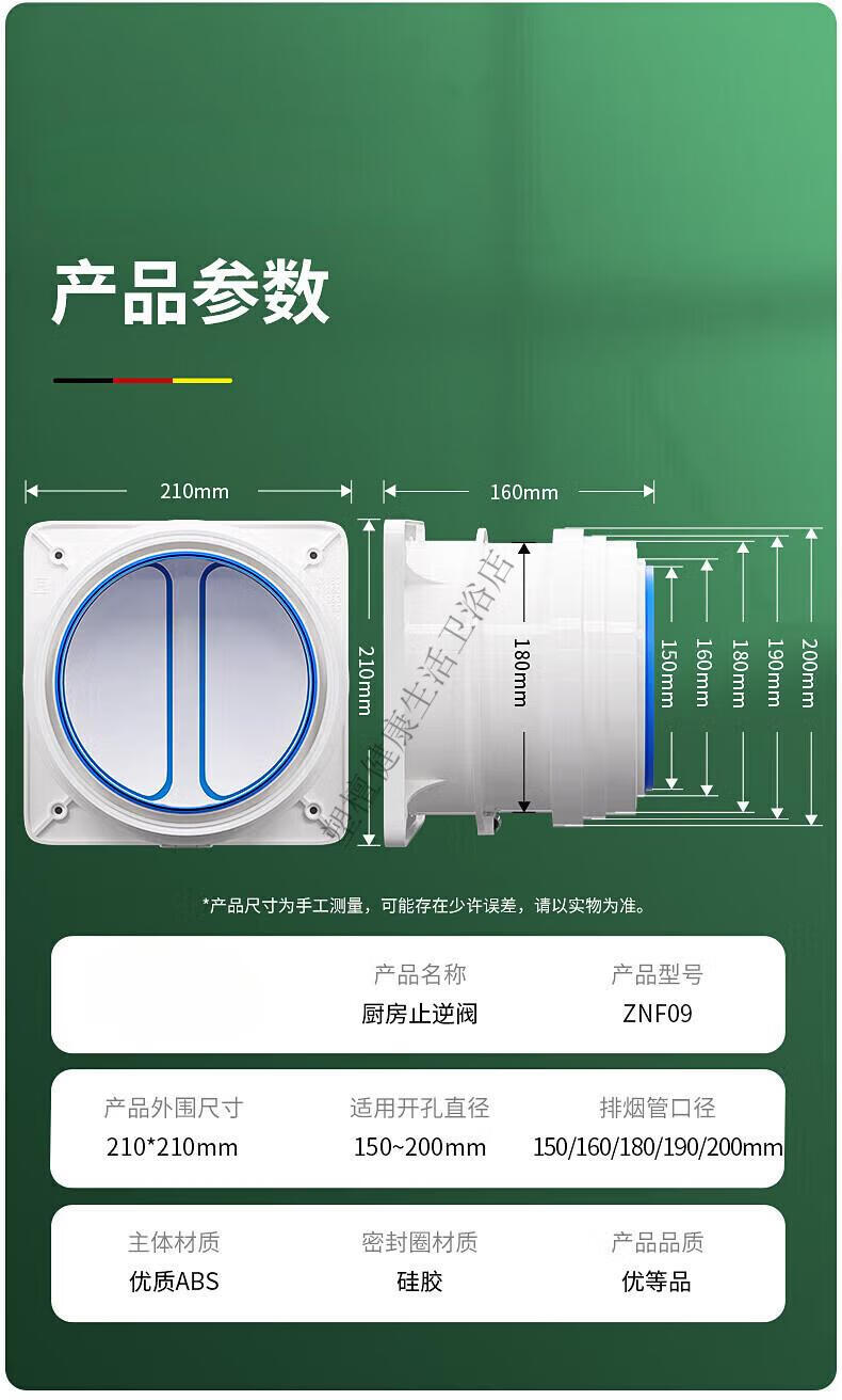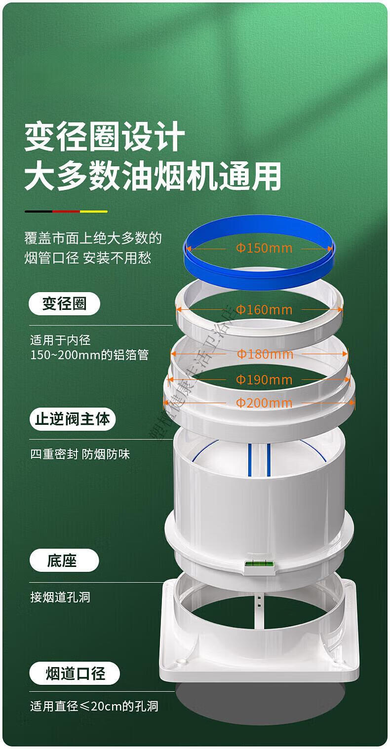 JOMOO New German Range Hood Check Valve Flue Valve Kitchen Special Anti-Smoke Treasure Public Smoke Exhaust Pipe Universal Check Valve Enhanced Kitchen Check Valve (150-200 Universal)