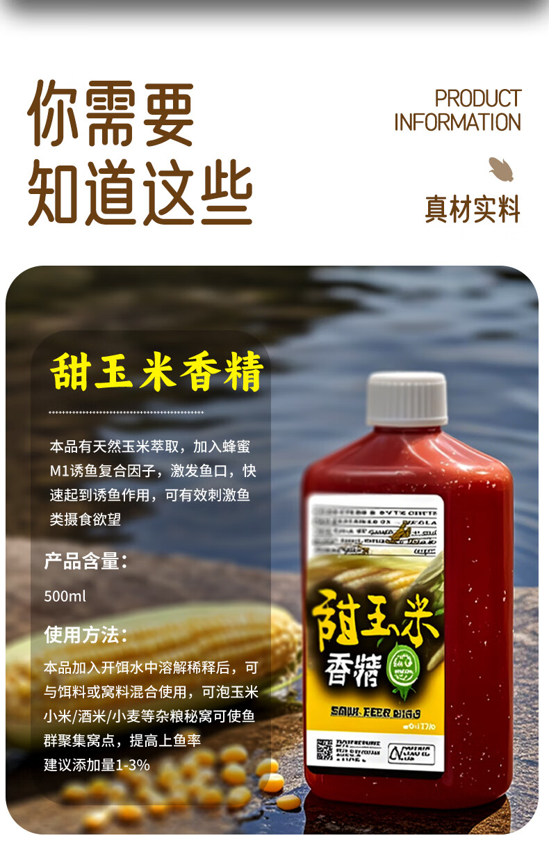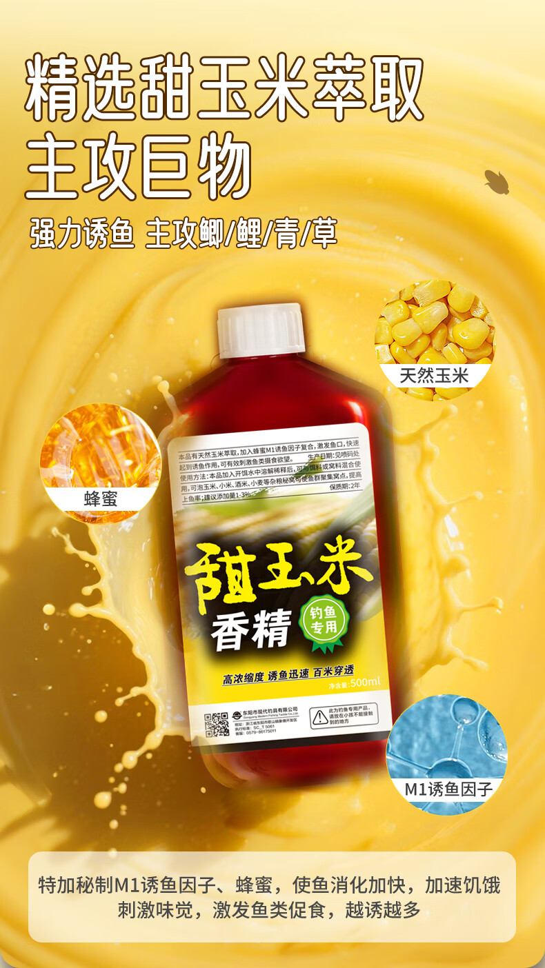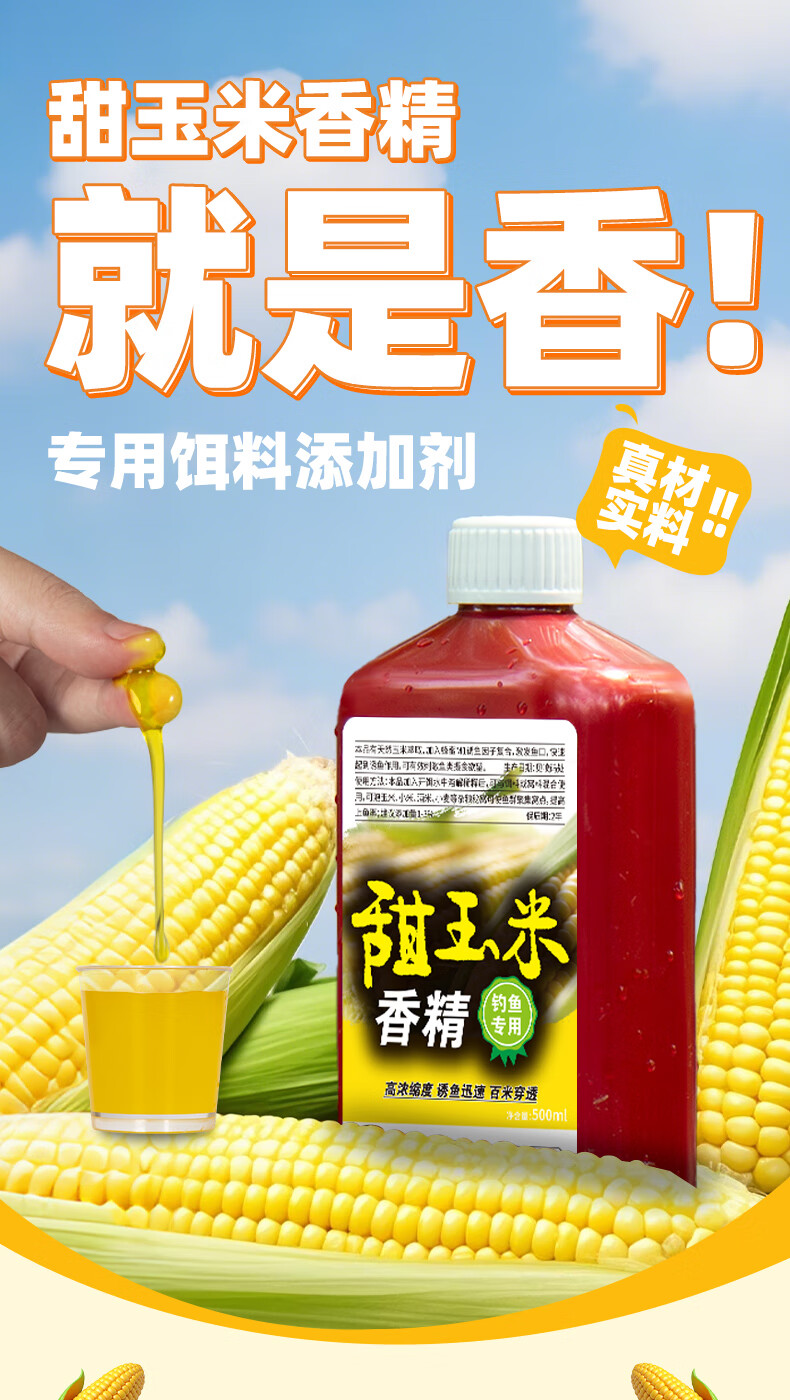 Zhizunfang Concentrated Sweet Corn Flavor Fishing Bait Special Small Medicine for Crucian Carp and Grass Carp Wild Fishing Black Pit Fish Lure Additive Sweet Corn Flavor*2 Highly Concentrated and Long-lasting Fish Lure