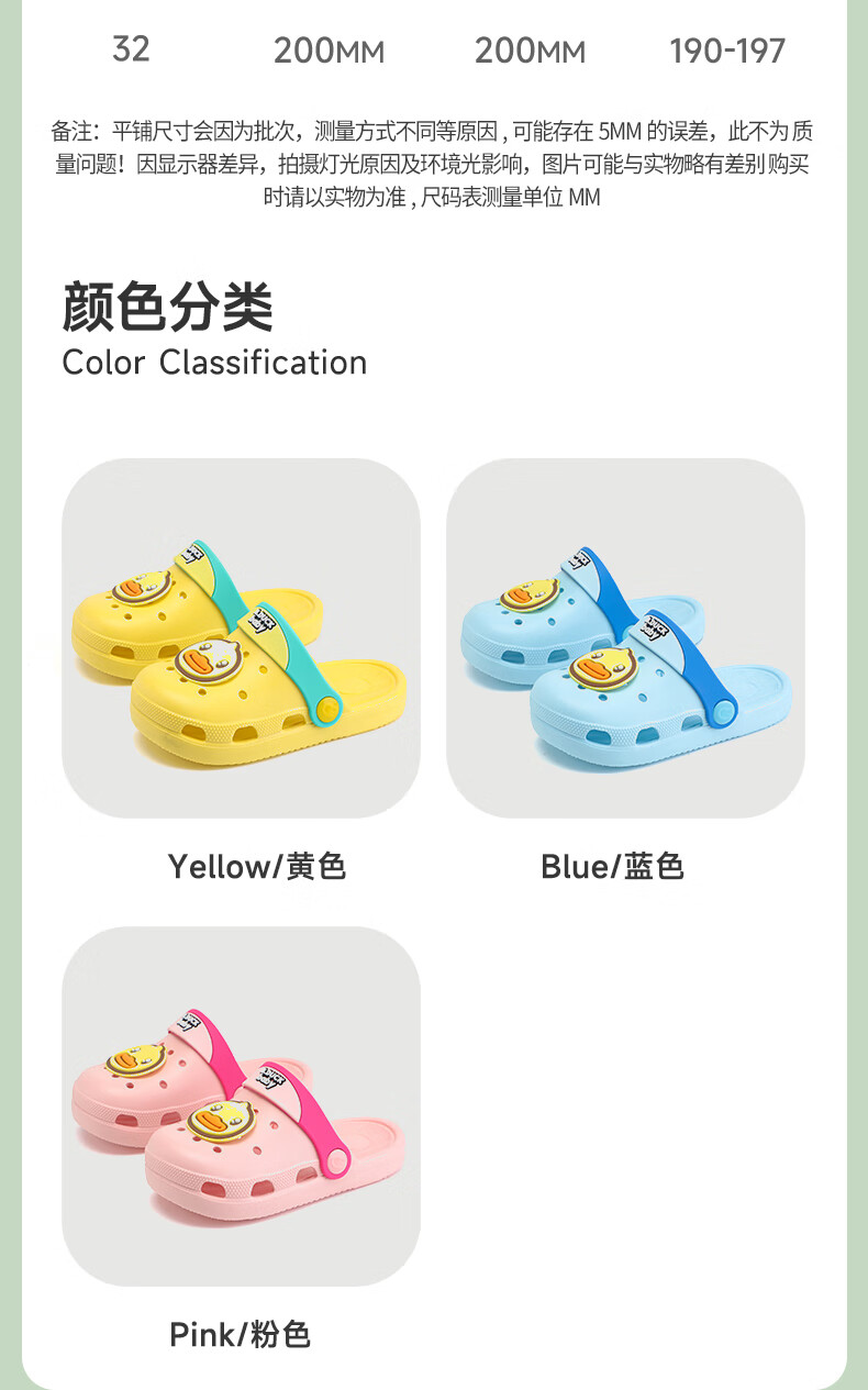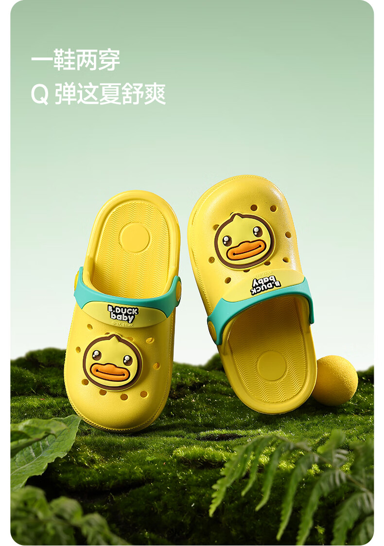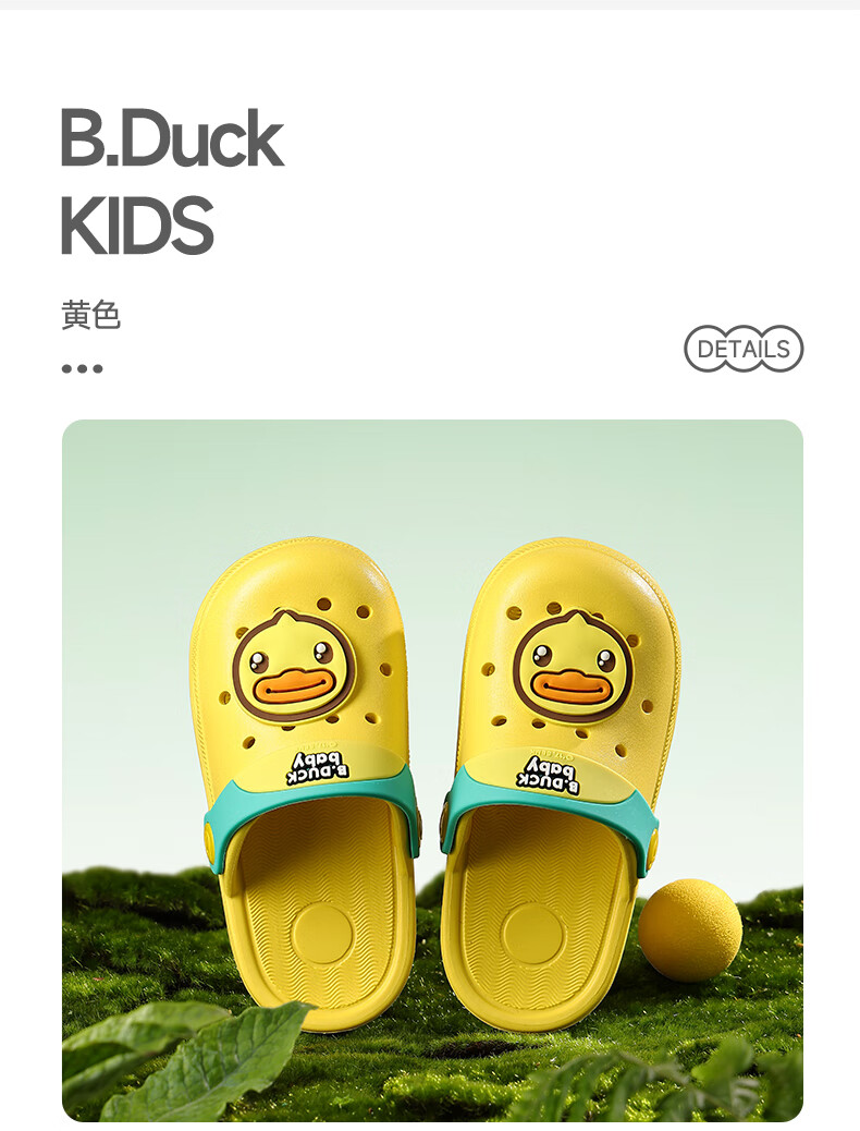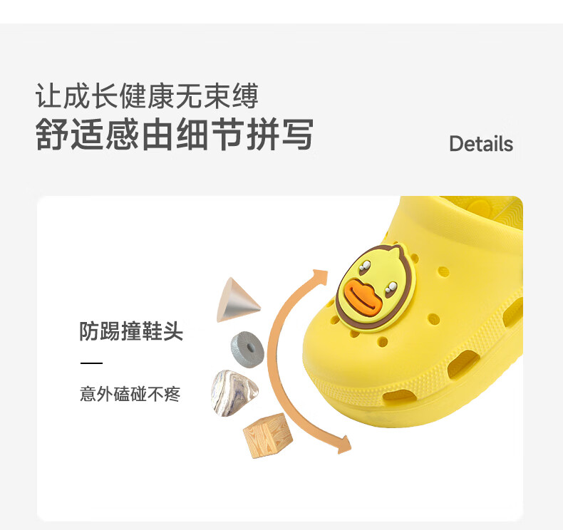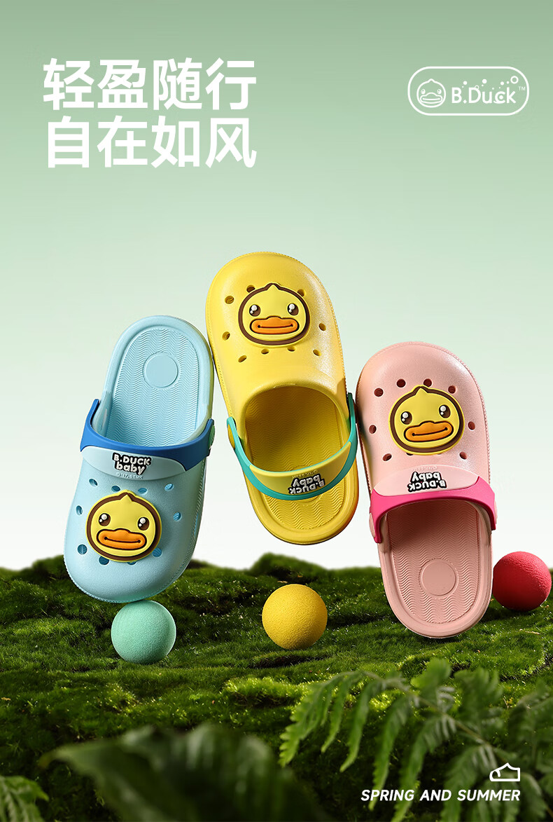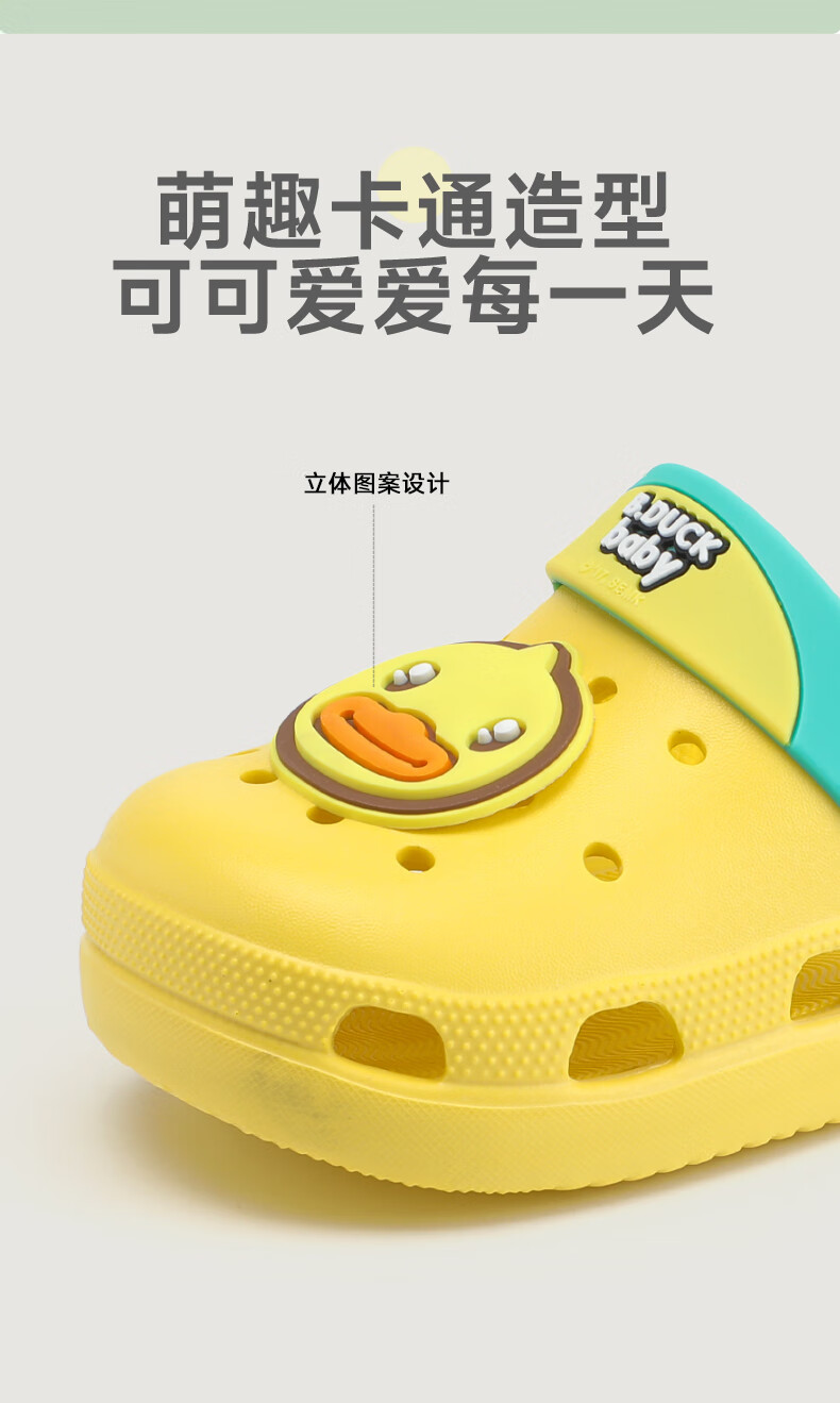 B.Duck little yellow duck children's clogs 2025 new summer baby sandals girls anti-collision and anti-slip boys yellow size 28 foot length 17.0-17.7cm