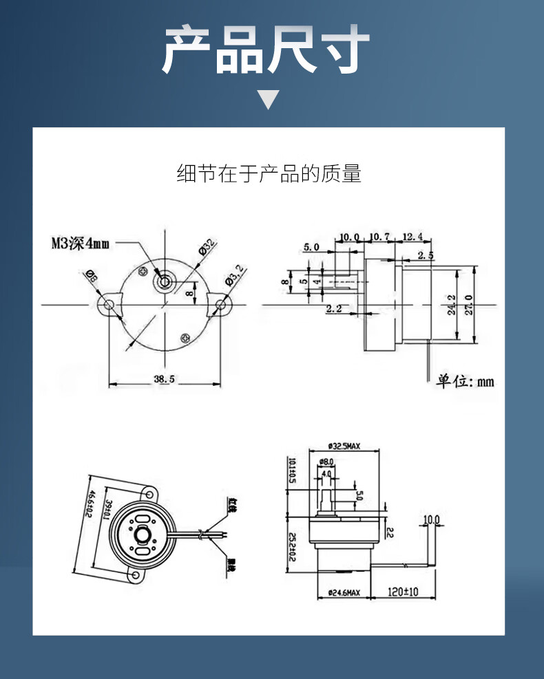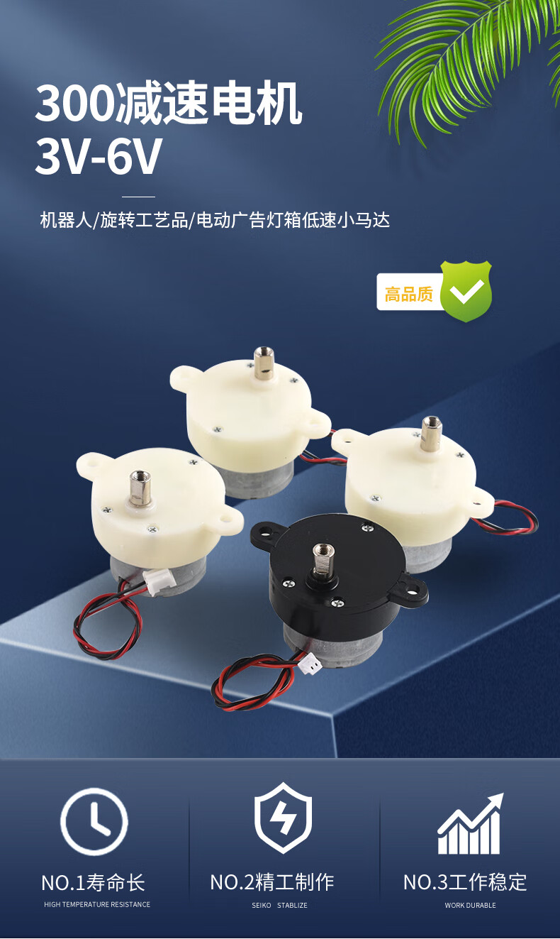 300 reduction motor 3V-6V robot/rotating crafts/electric advertising light box low speed small motor 3V 10 turns black model 1.25 terminal no Specifications