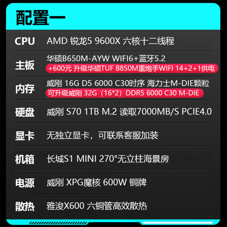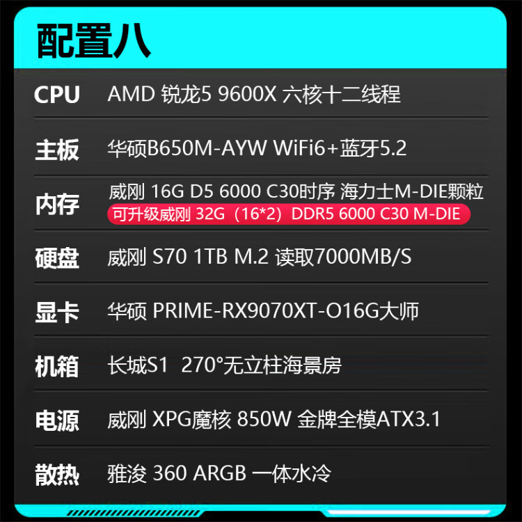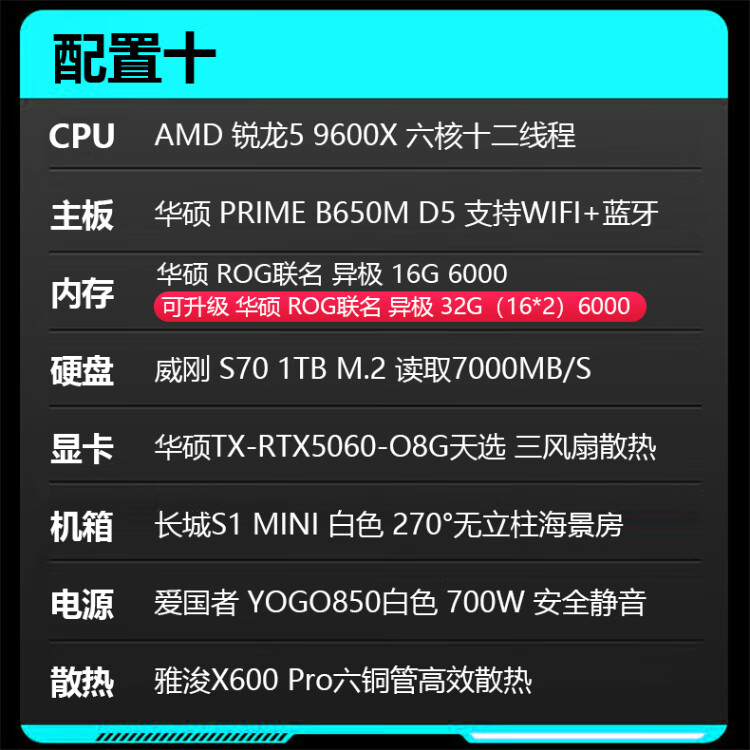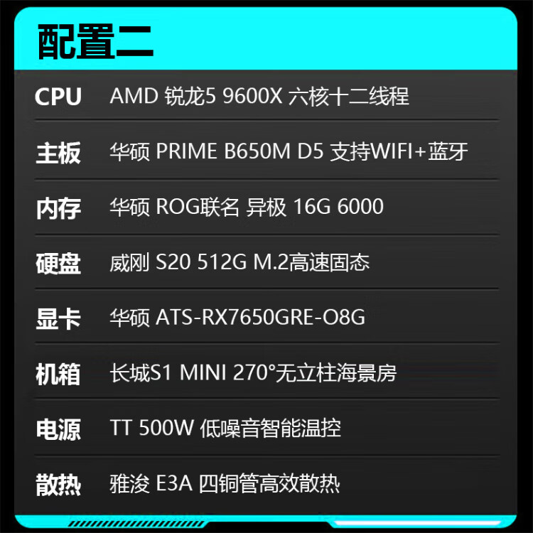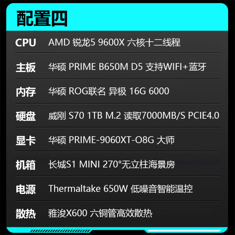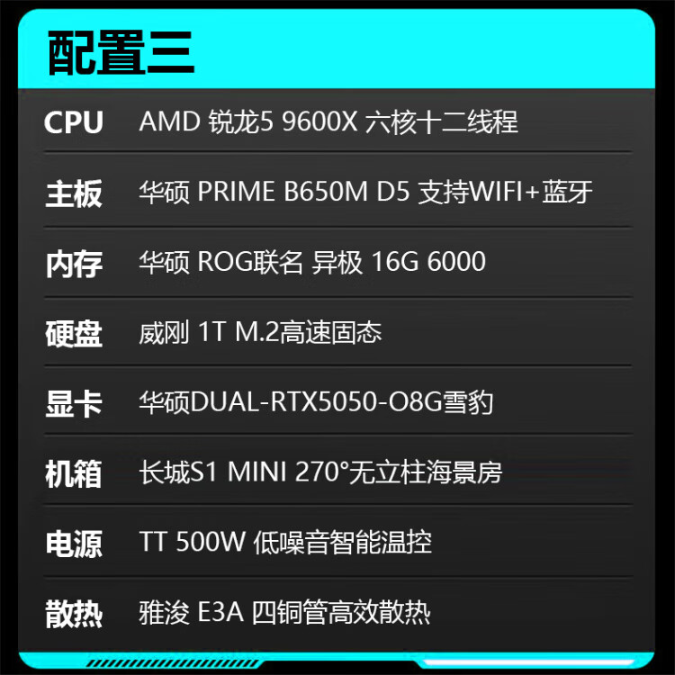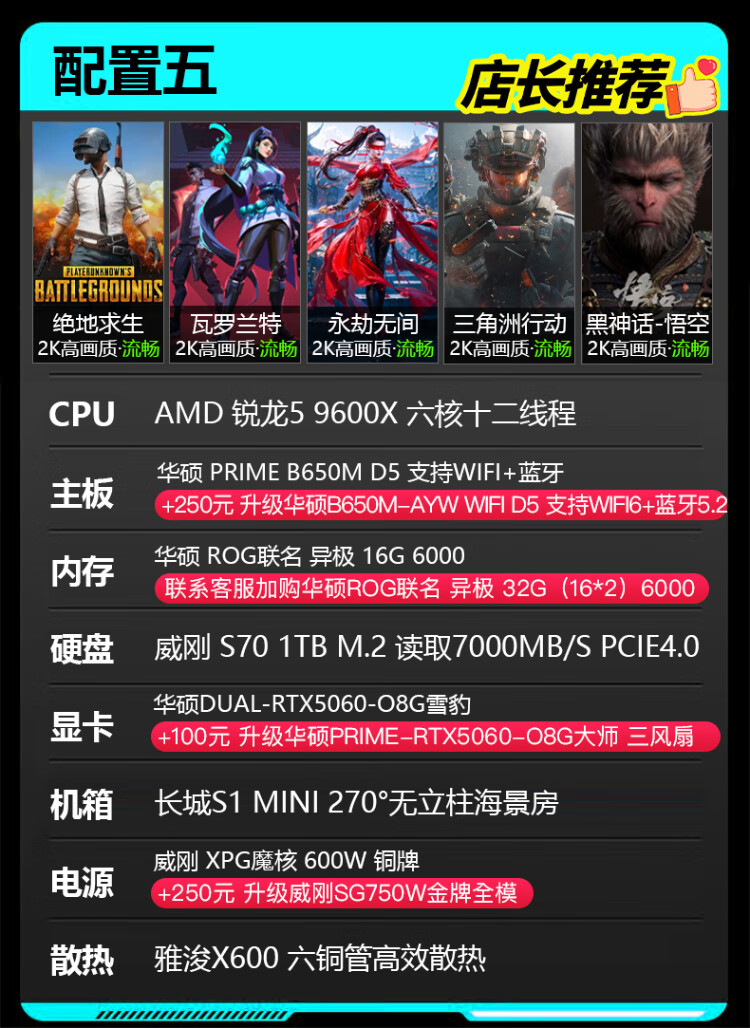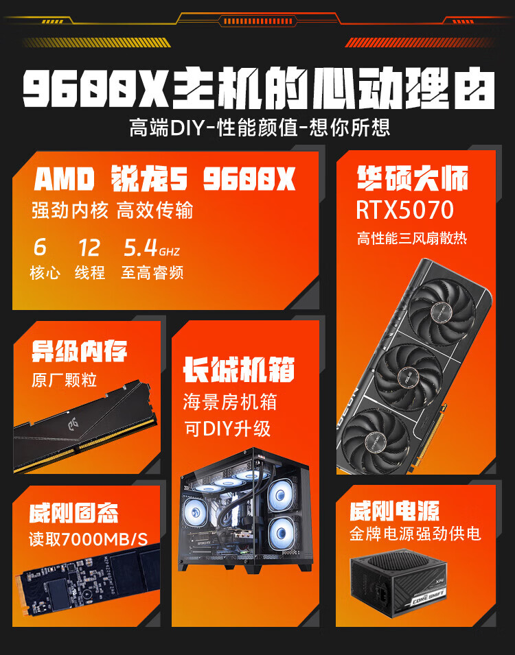 ASUS host 9600X+5060/5060ti/7650GRE AMD assembled computer computer desktop computer host game console high frame Valorant with seven 9600X丨5060TI丨16G丨1T Operation Delta/Eternal Tribulation/Chicken/Valorant/Wukong