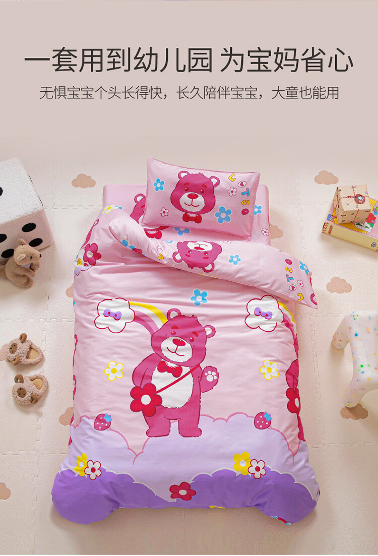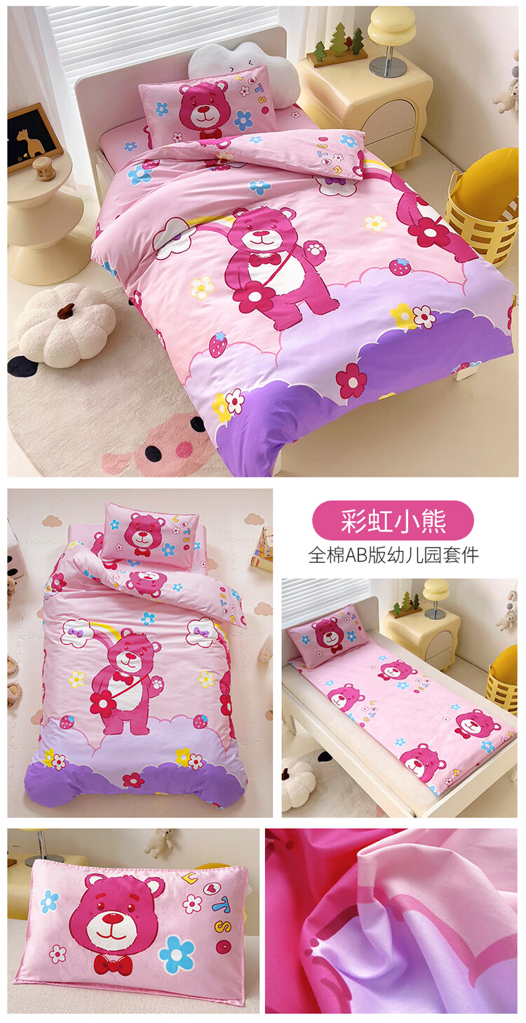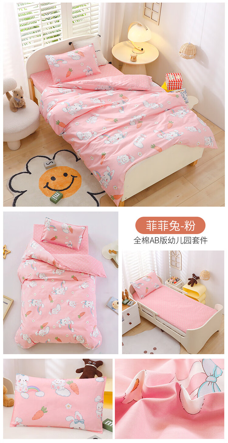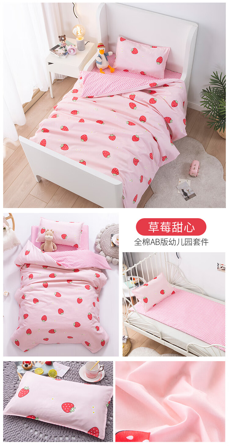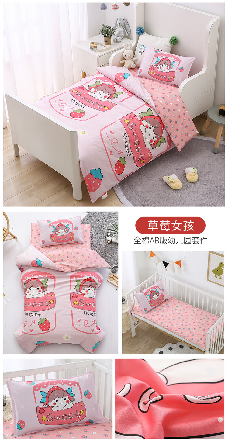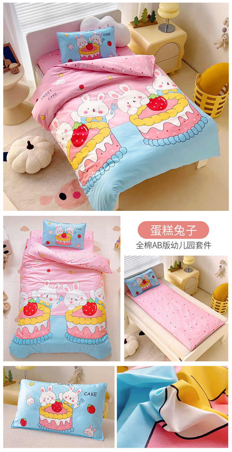 Pure cotton three-piece kindergarten quilt set, baby entry quilt cover, six-piece baby and child nap set, pure cotton, strawberry rabbit, pure cotton, breathable, soft and comfortable, single quilt cover 120*150cm
