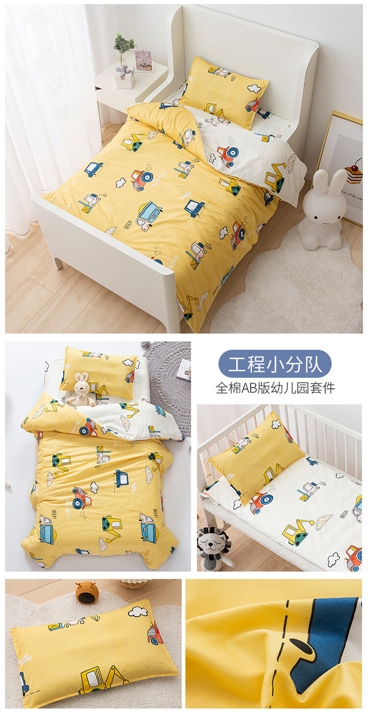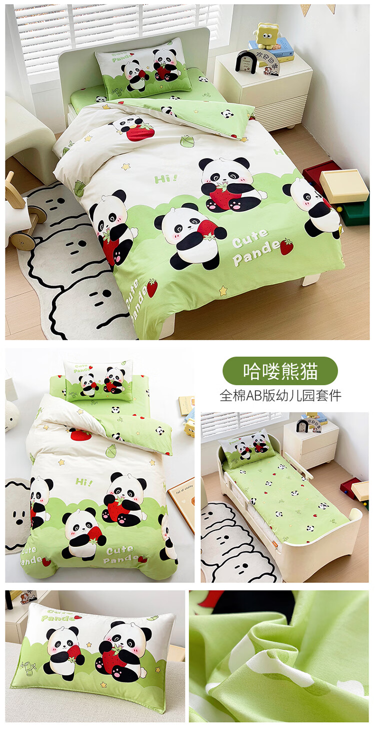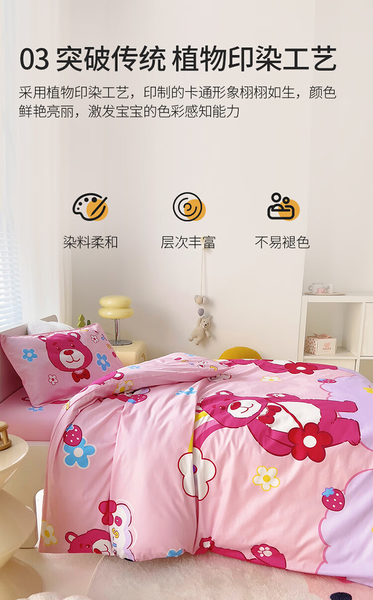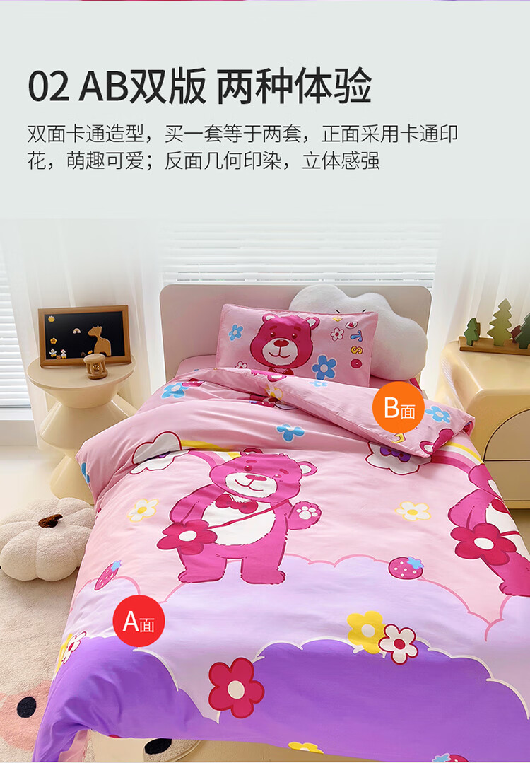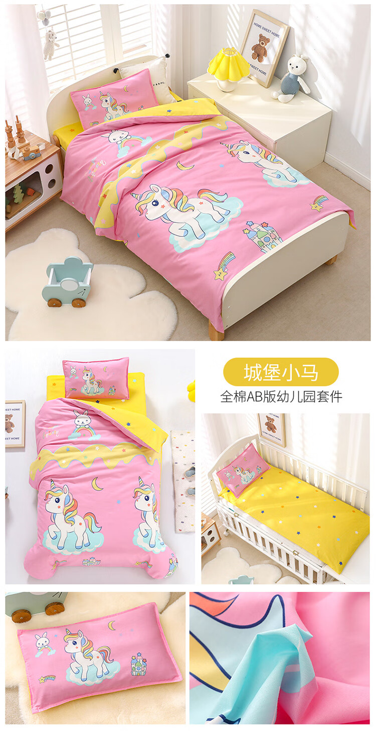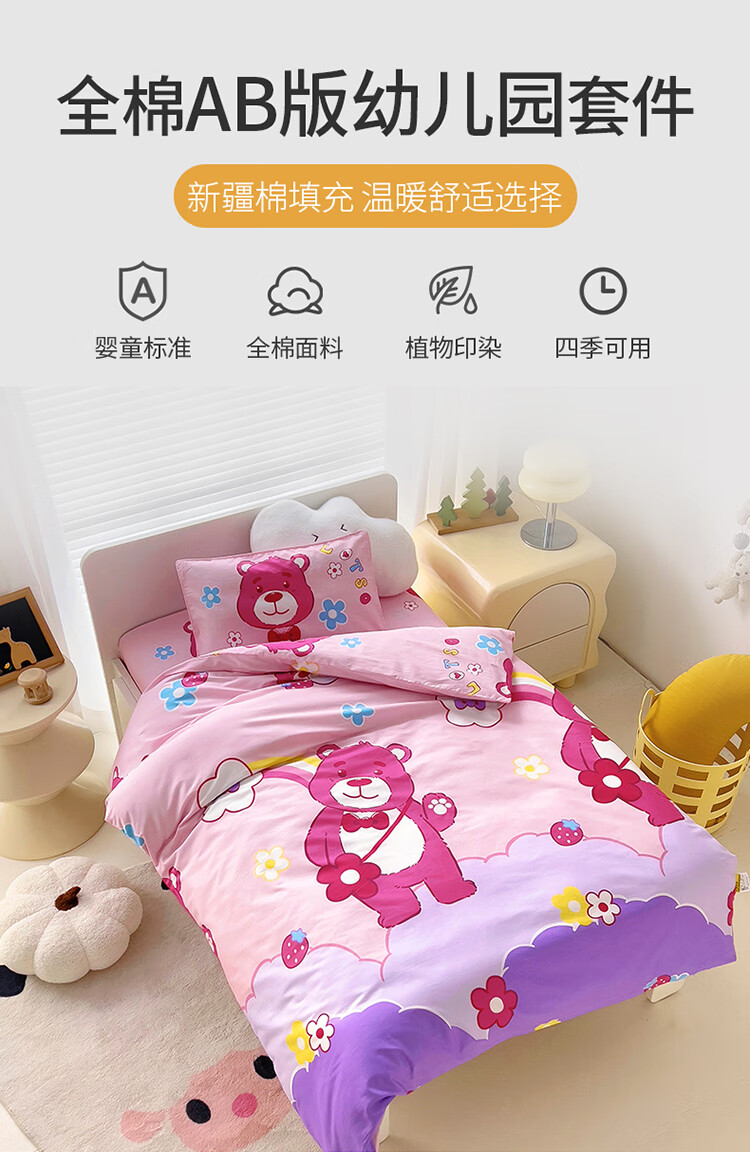 Pure cotton three-piece kindergarten quilt set, baby entry quilt cover, six-piece baby and child nap set, pure cotton, strawberry rabbit, pure cotton, breathable, soft and comfortable, single quilt cover 120*150cm