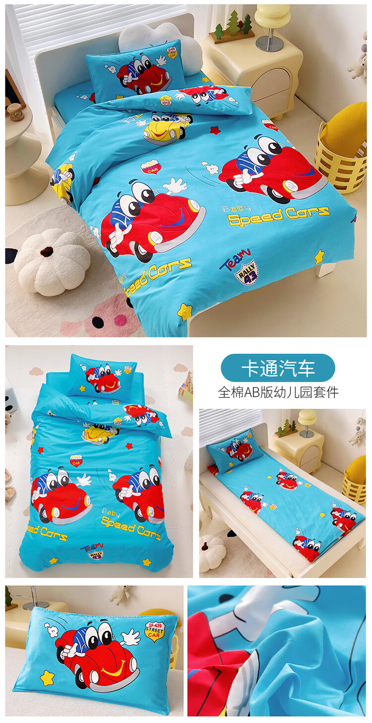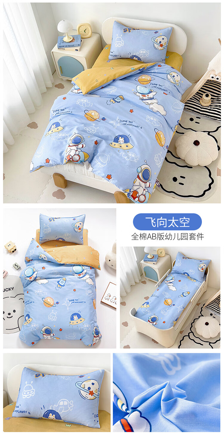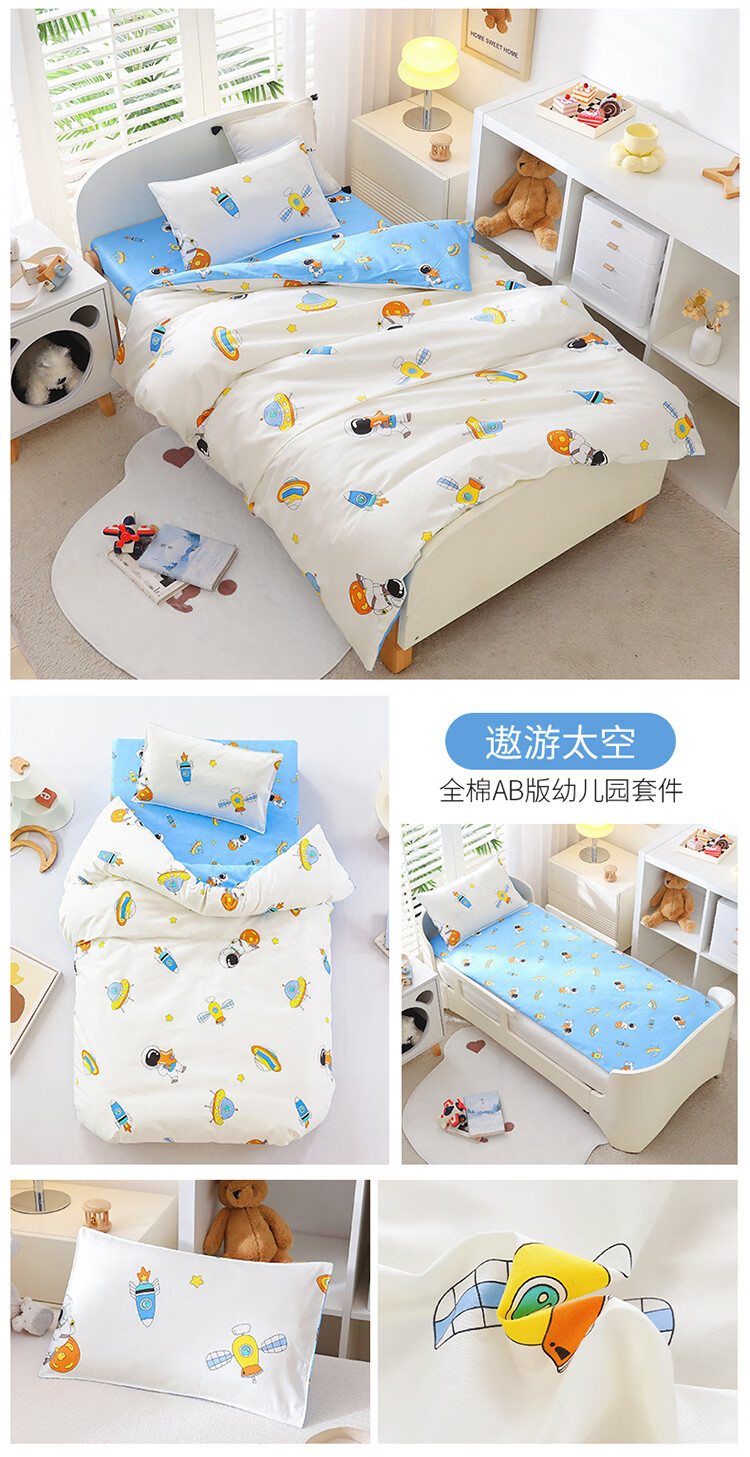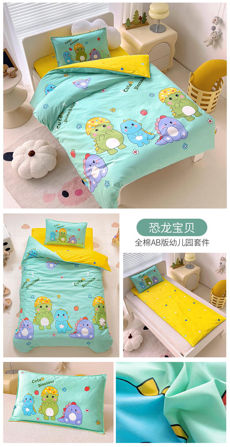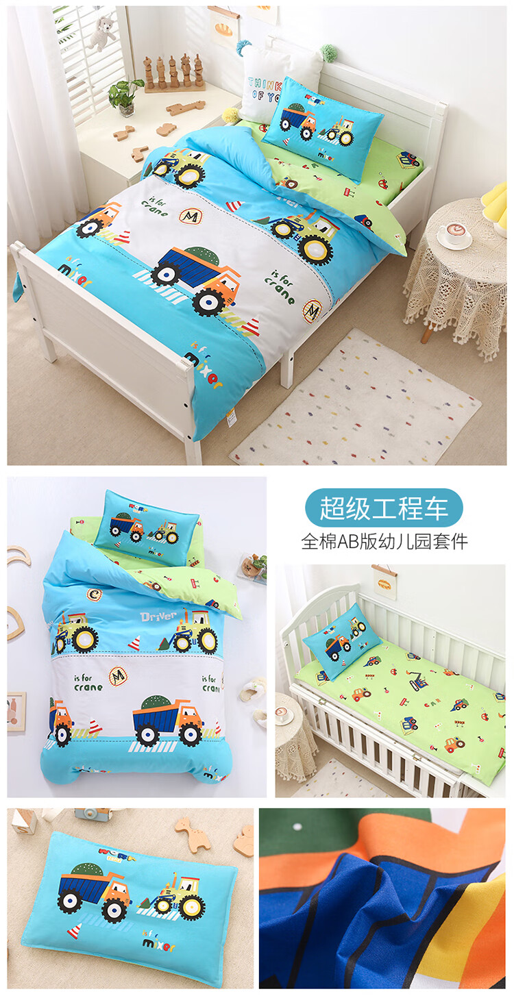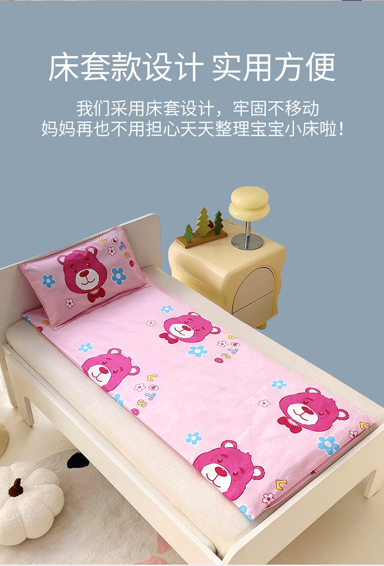 Pure cotton three-piece kindergarten quilt set, baby entry quilt cover, six-piece baby and child nap set, pure cotton, strawberry rabbit, pure cotton, breathable, soft and comfortable, single quilt cover 120*150cm