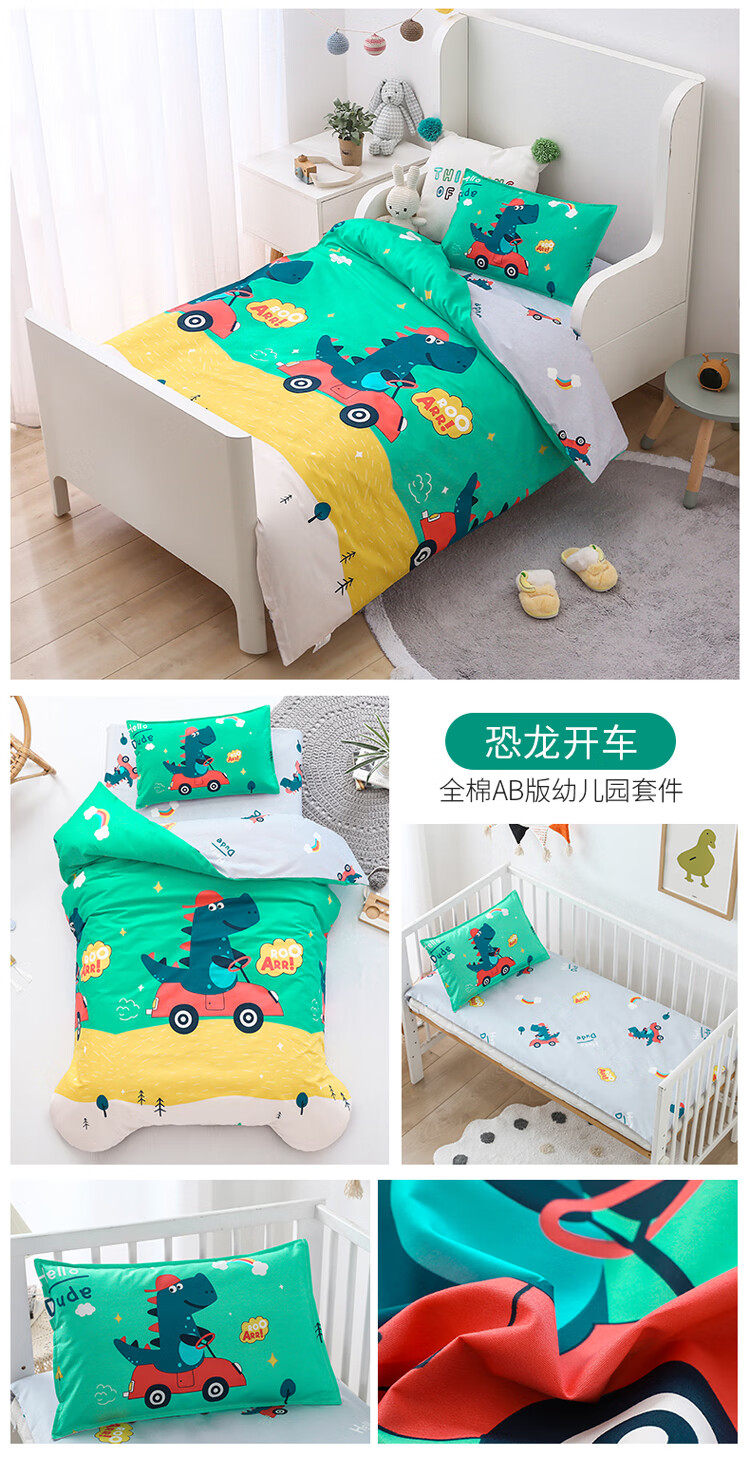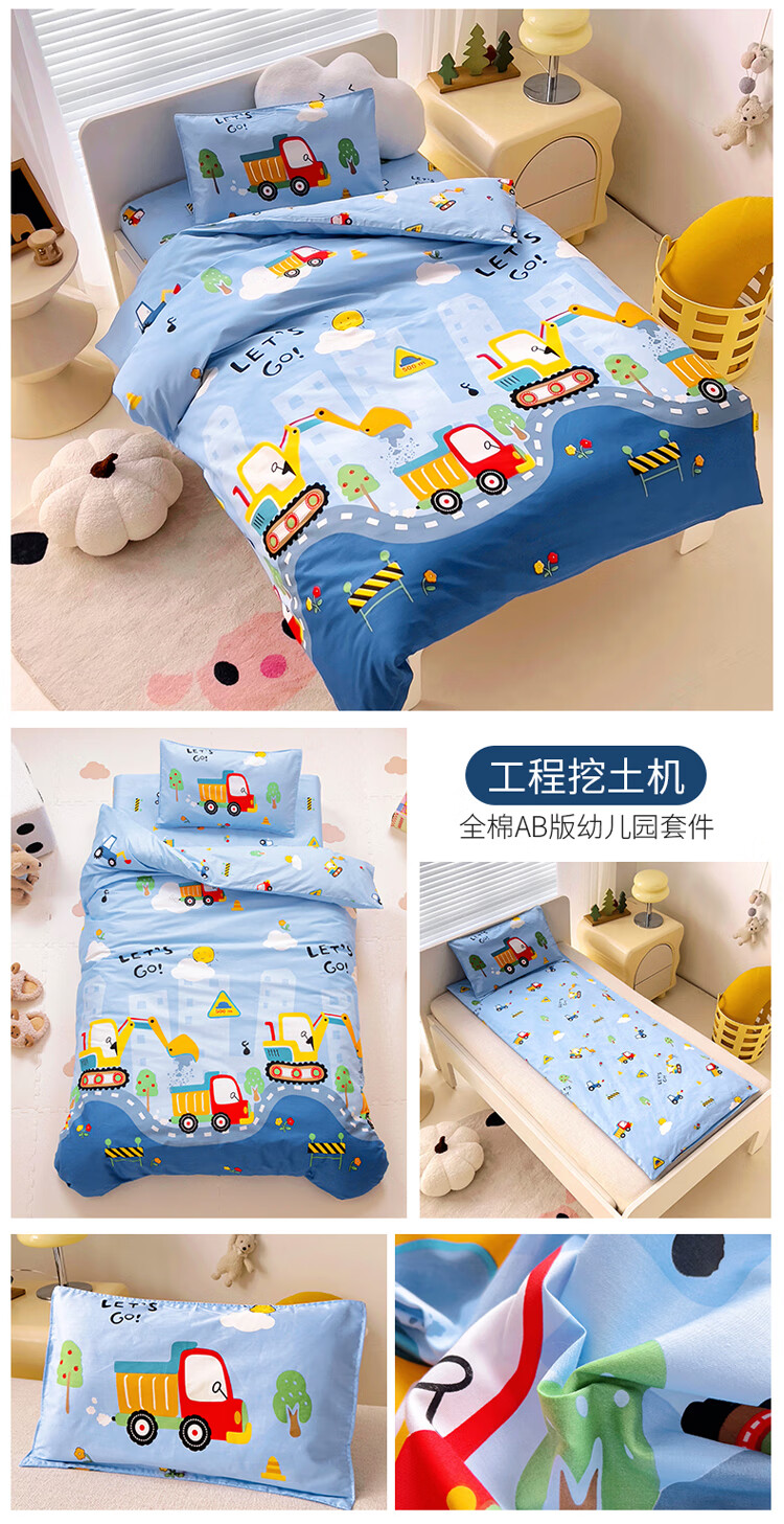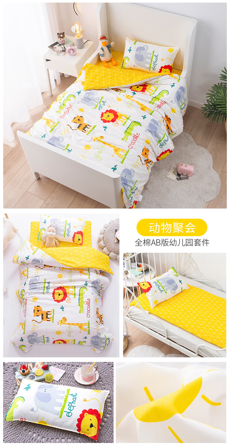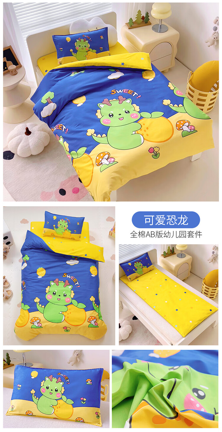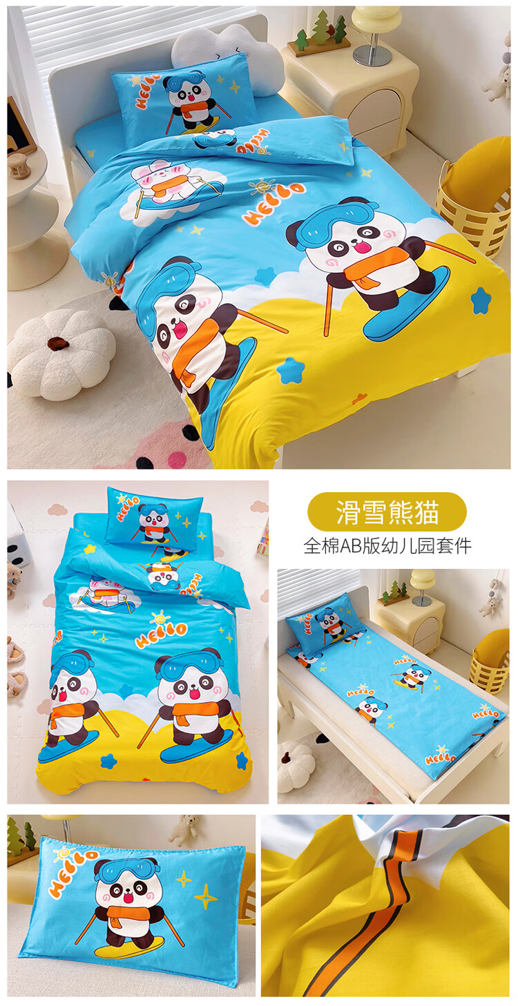 Pure cotton three-piece kindergarten quilt set, baby entry quilt cover, six-piece baby and child nap set, pure cotton, strawberry rabbit, pure cotton, breathable, soft and comfortable, single quilt cover 120*150cm