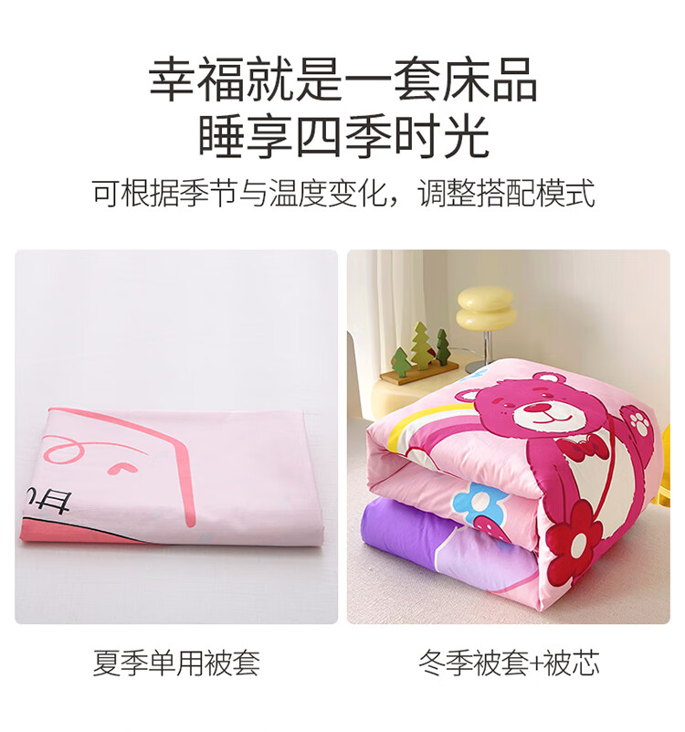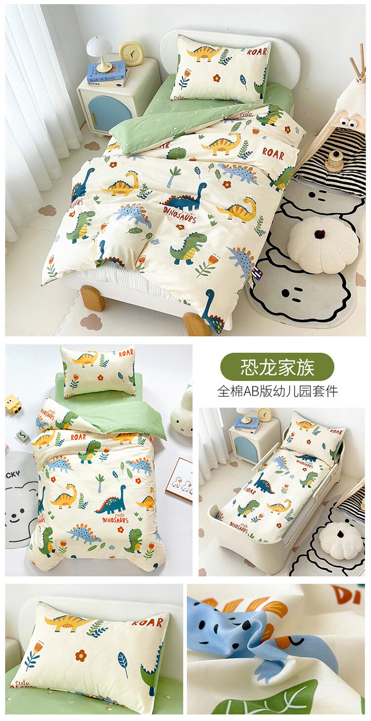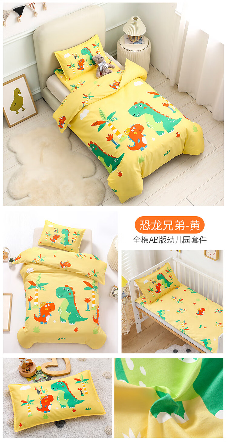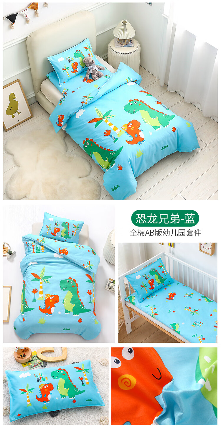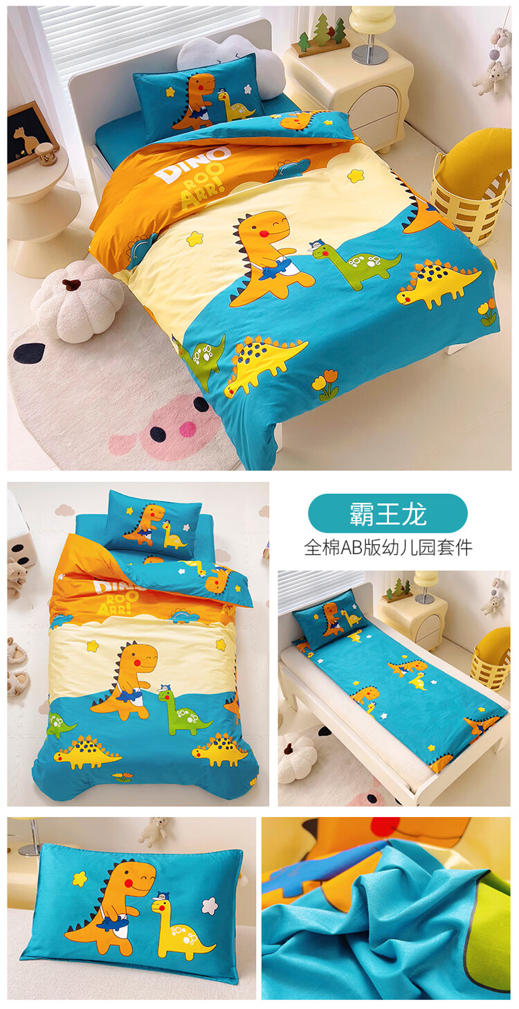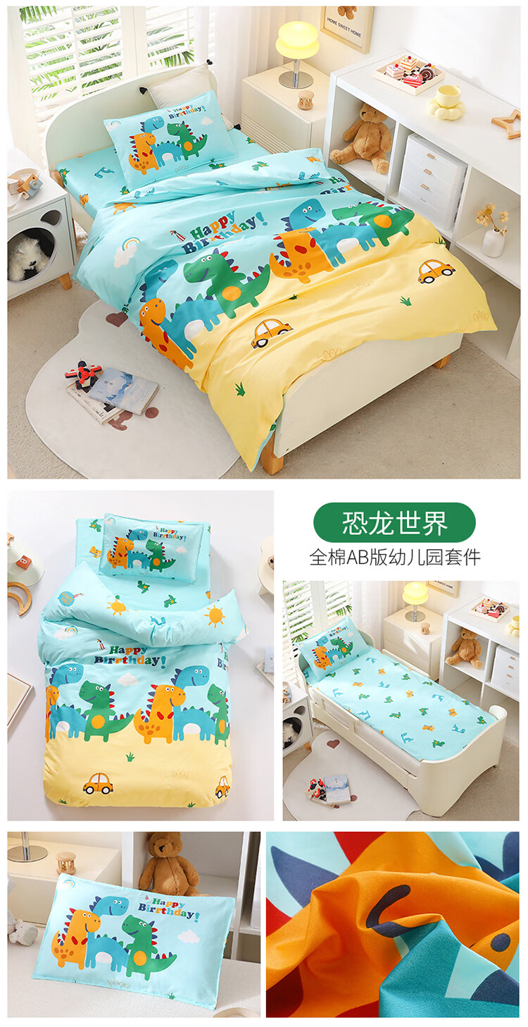 Pure cotton three-piece kindergarten quilt set, baby entry quilt cover, six-piece baby and child nap set, pure cotton, strawberry rabbit, pure cotton, breathable, soft and comfortable, single quilt cover 120*150cm