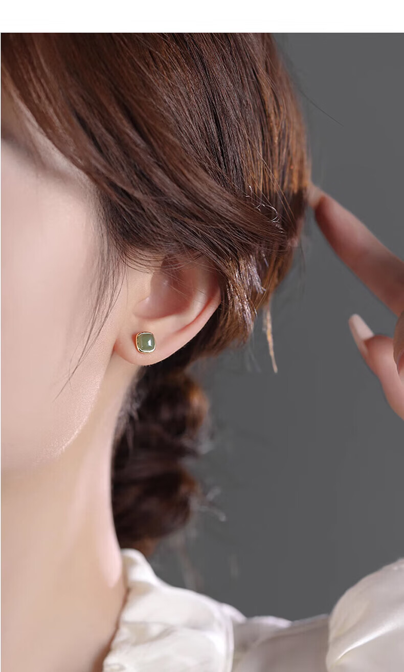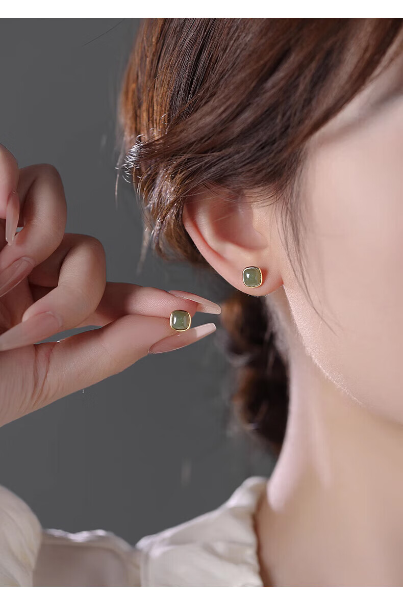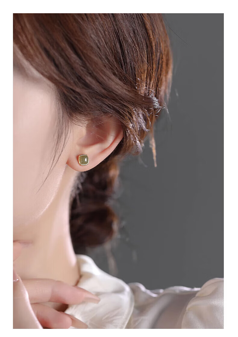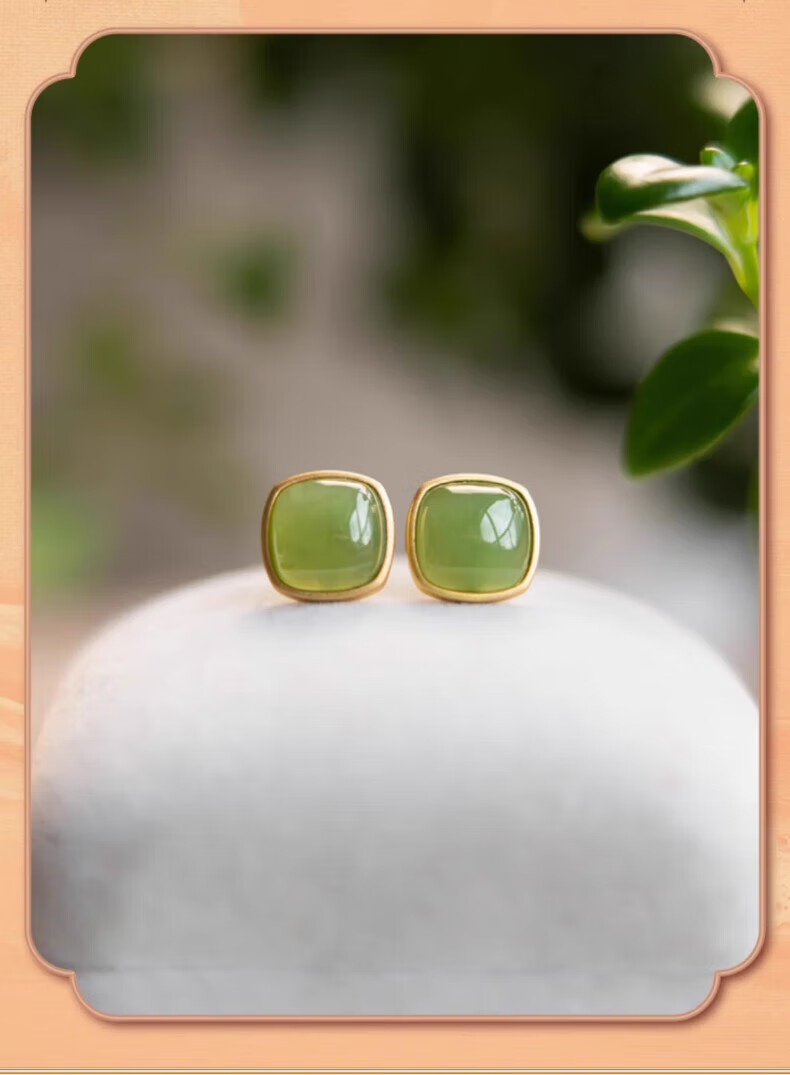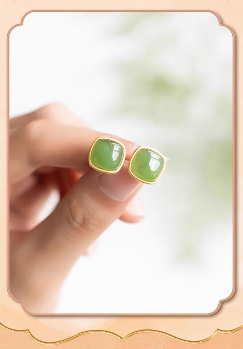 Lao Fengxiang Premium Hetian Jade Earrings for Women Sugar Cube Sterling Silver Earrings Practical Birthday Gifts for Girlfriends and Wife Jingdong Bakura Shipments *Same/Next Day Delivery - Light Luxury High-Grade Hetian Jade Earrings