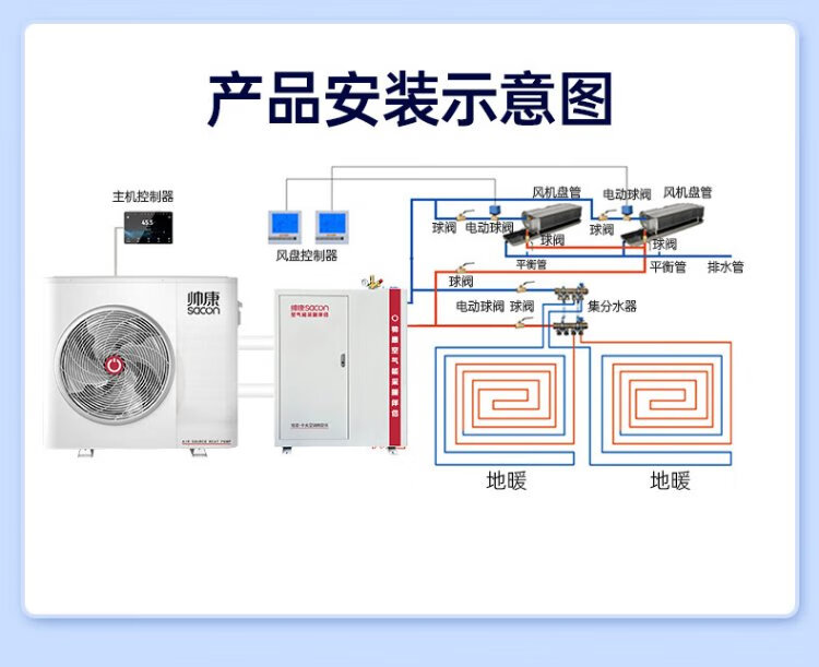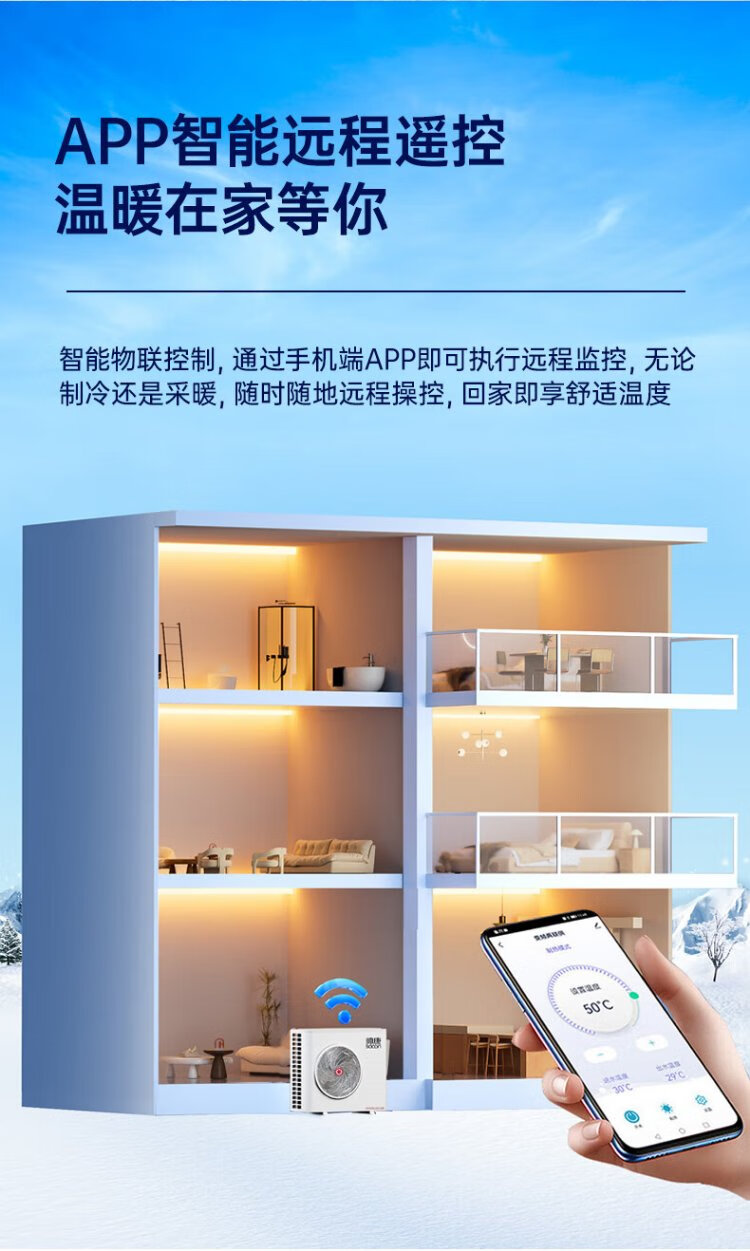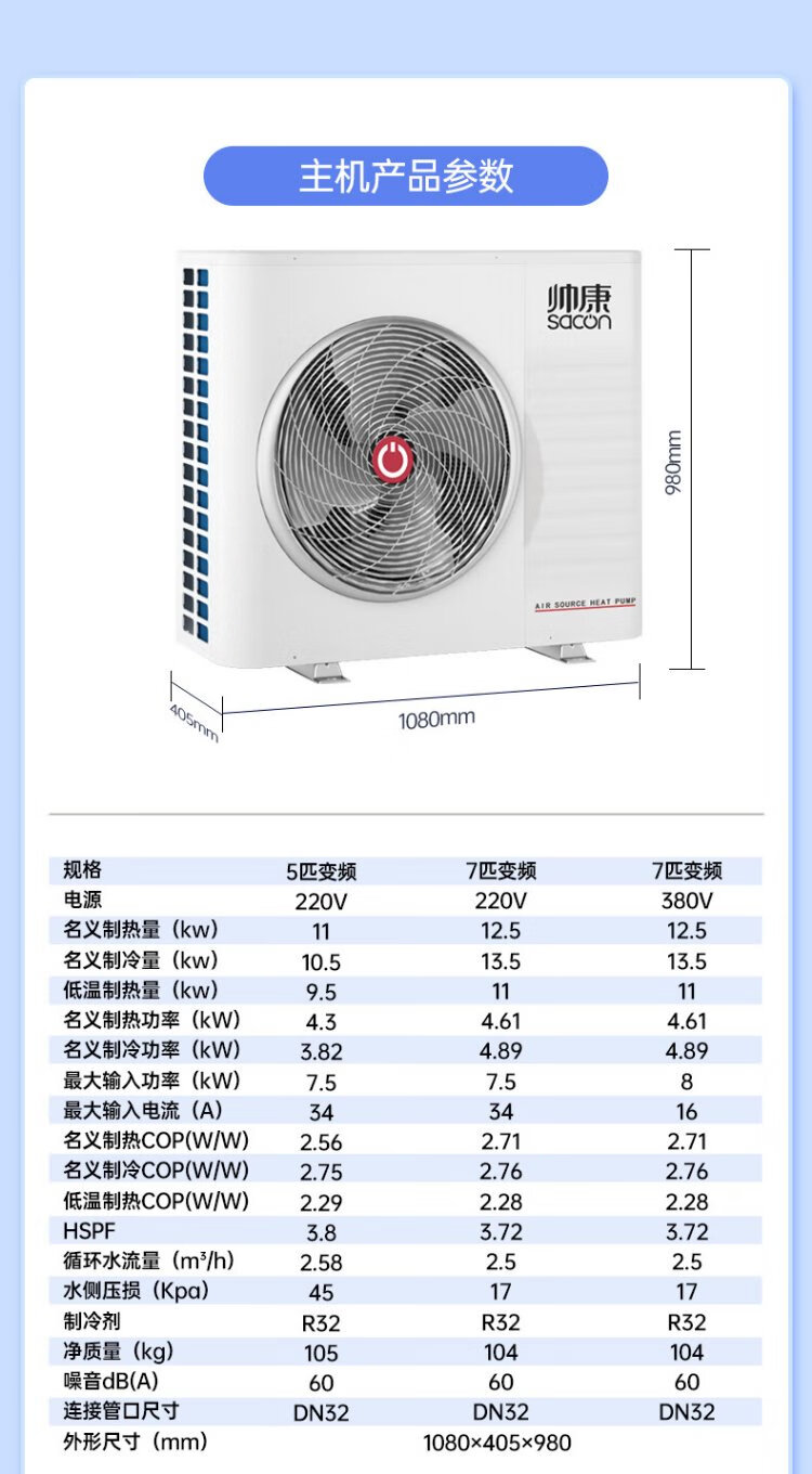 Sacon Air Energy Fußbodenheizung und Klimaanlage, All-in-One-Luftenergie-Wärmepumpe, Heimheizung, erstklassige Energieeffizienz, Doppelfrequenzumwandlung, WiFi, intelligente Steuerung, ländliche Heiz- und Kühlmaschine, Warm Home Series, 380 V, neues Produkt, 7 PS 380 V Heiz- und Kühlmaschine – Installation inklusive (130)