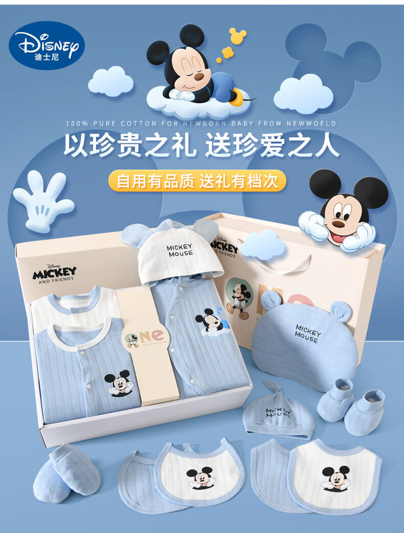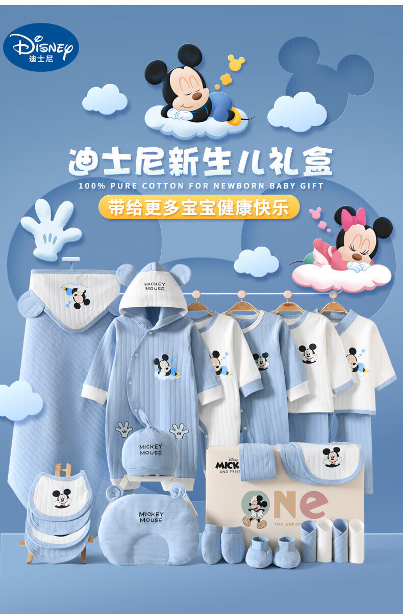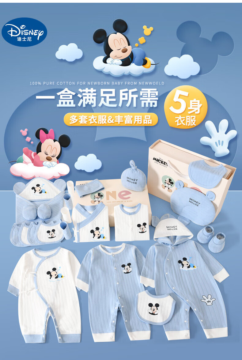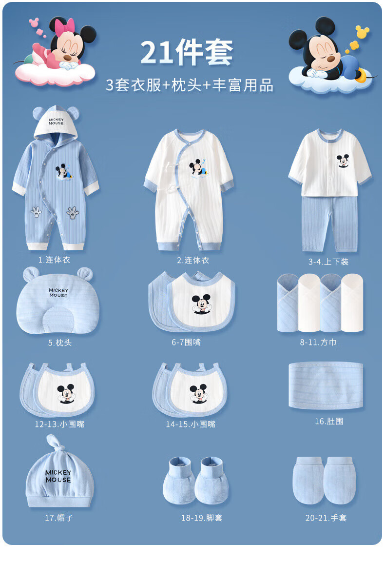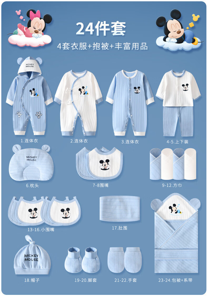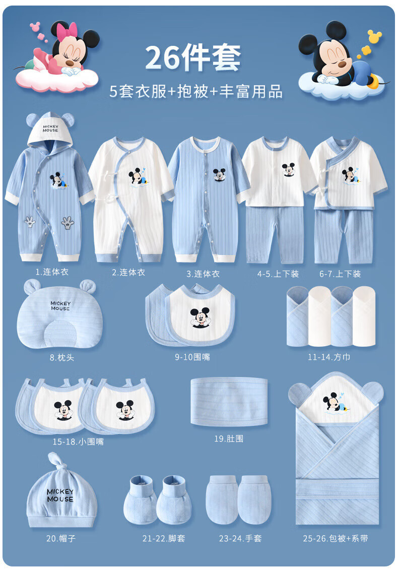 Disney (Disney) baby clothes gift box pure cotton newborn spring, summer, autumn and winter male and female babies 100 days full moon meeting gift supplies Sleeping Dream Minnie Four Seasons 26-piece leather suitcase 59cm (recommended 0-3 months)