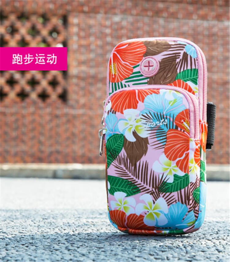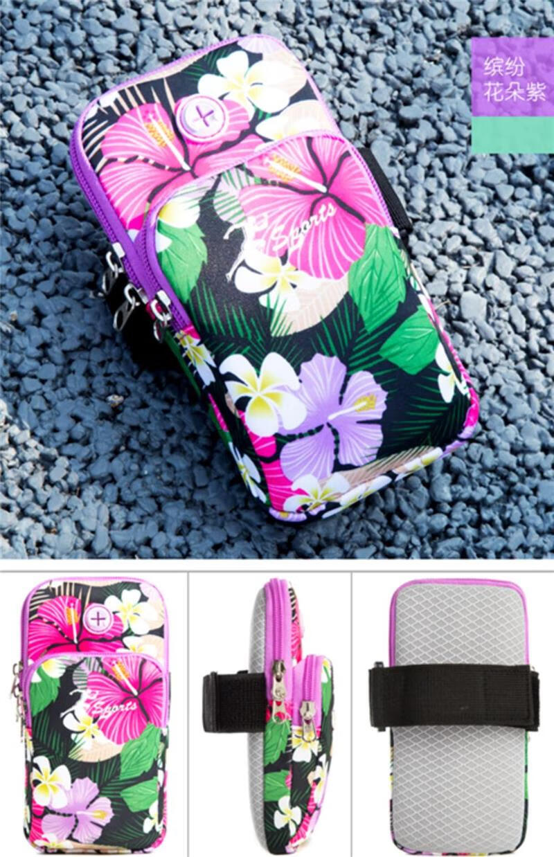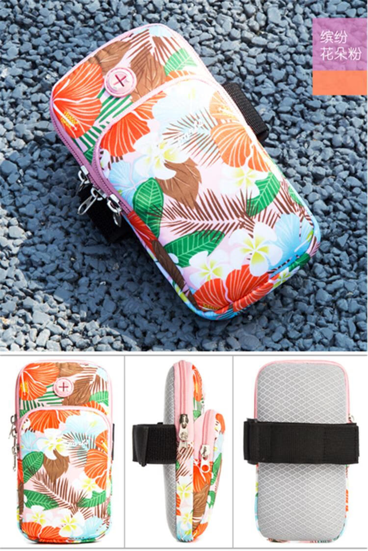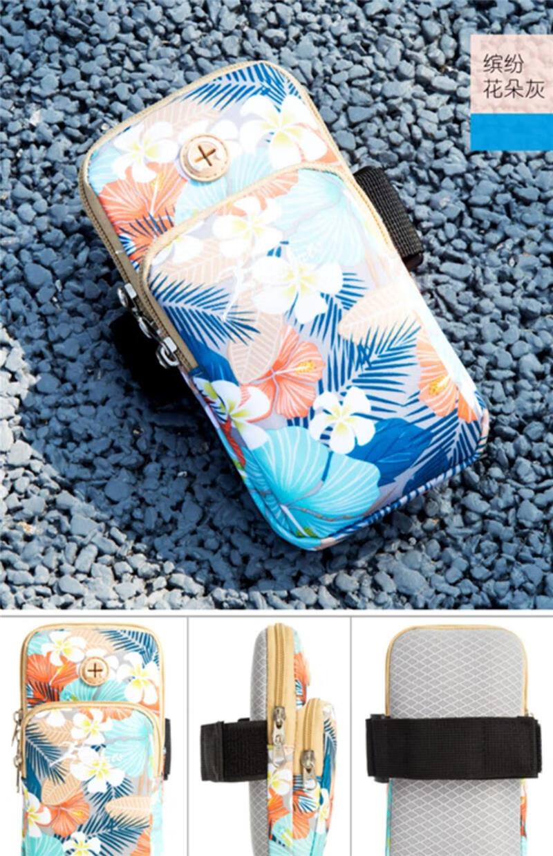 BIBK German quality lightweight running mobile phone arm bag women's universal arm sleeve hanging on the arm arm bag wrist bag square dance flower gray, small size