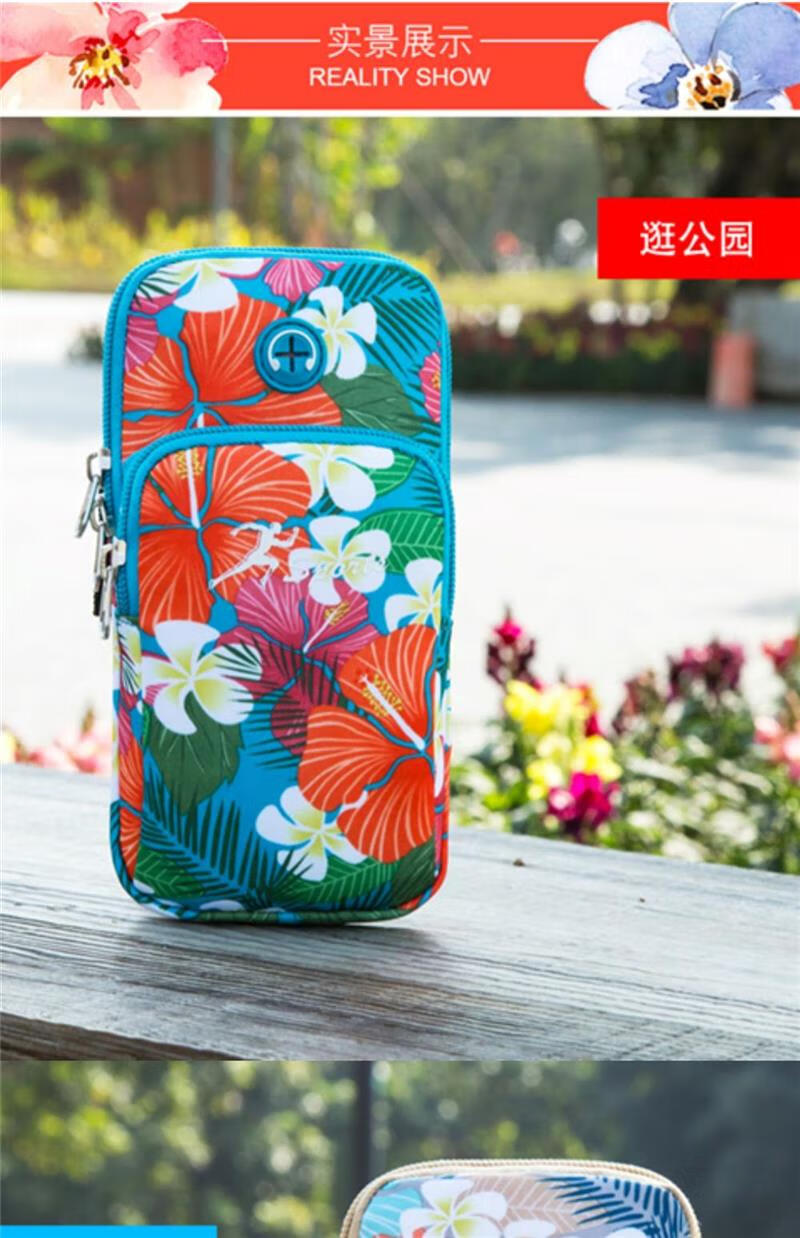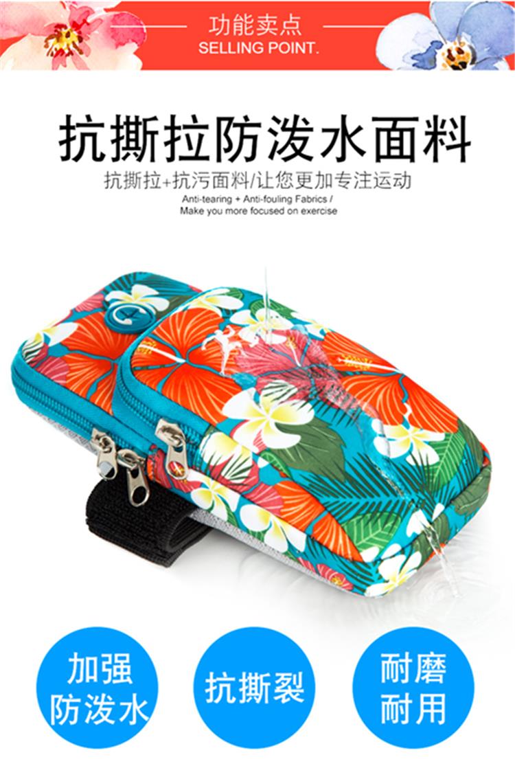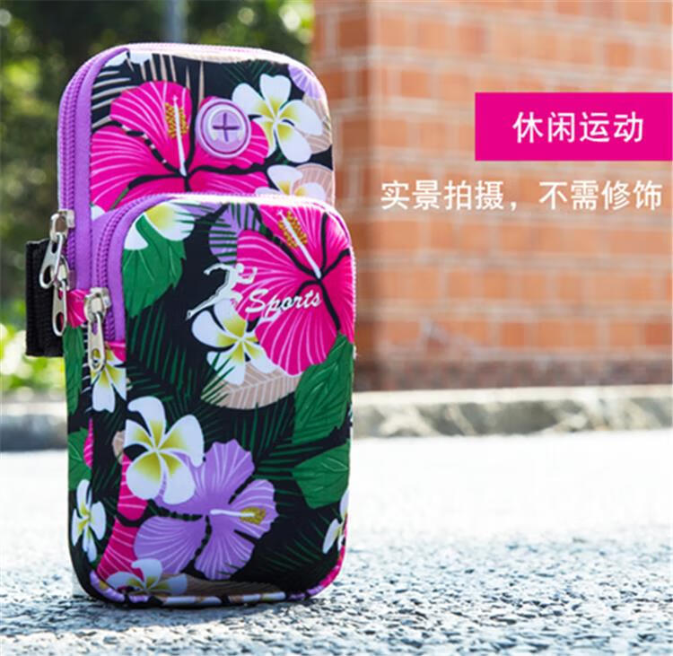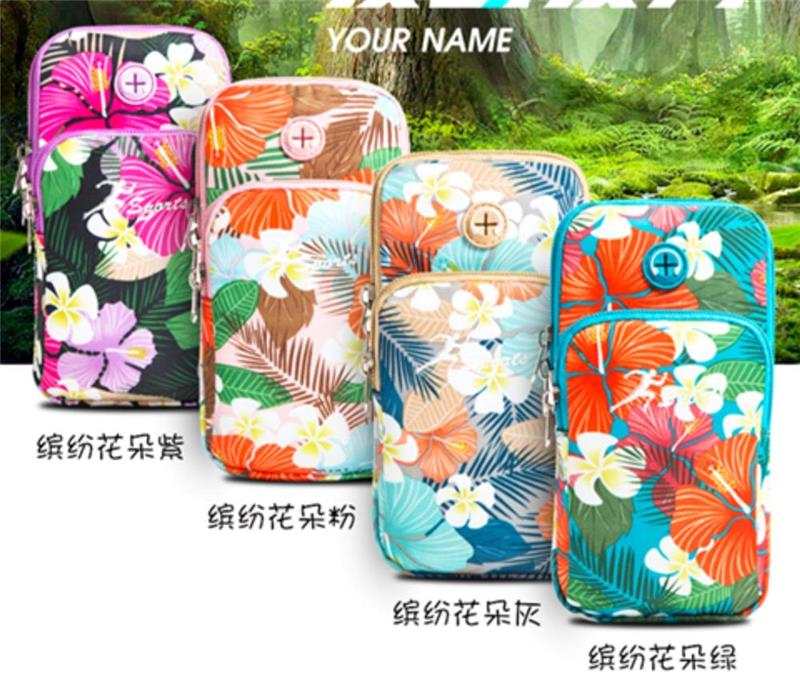 BIBK German quality lightweight running mobile phone arm bag women's universal arm sleeve hanging on the arm arm bag wrist bag square dance flower gray, small size