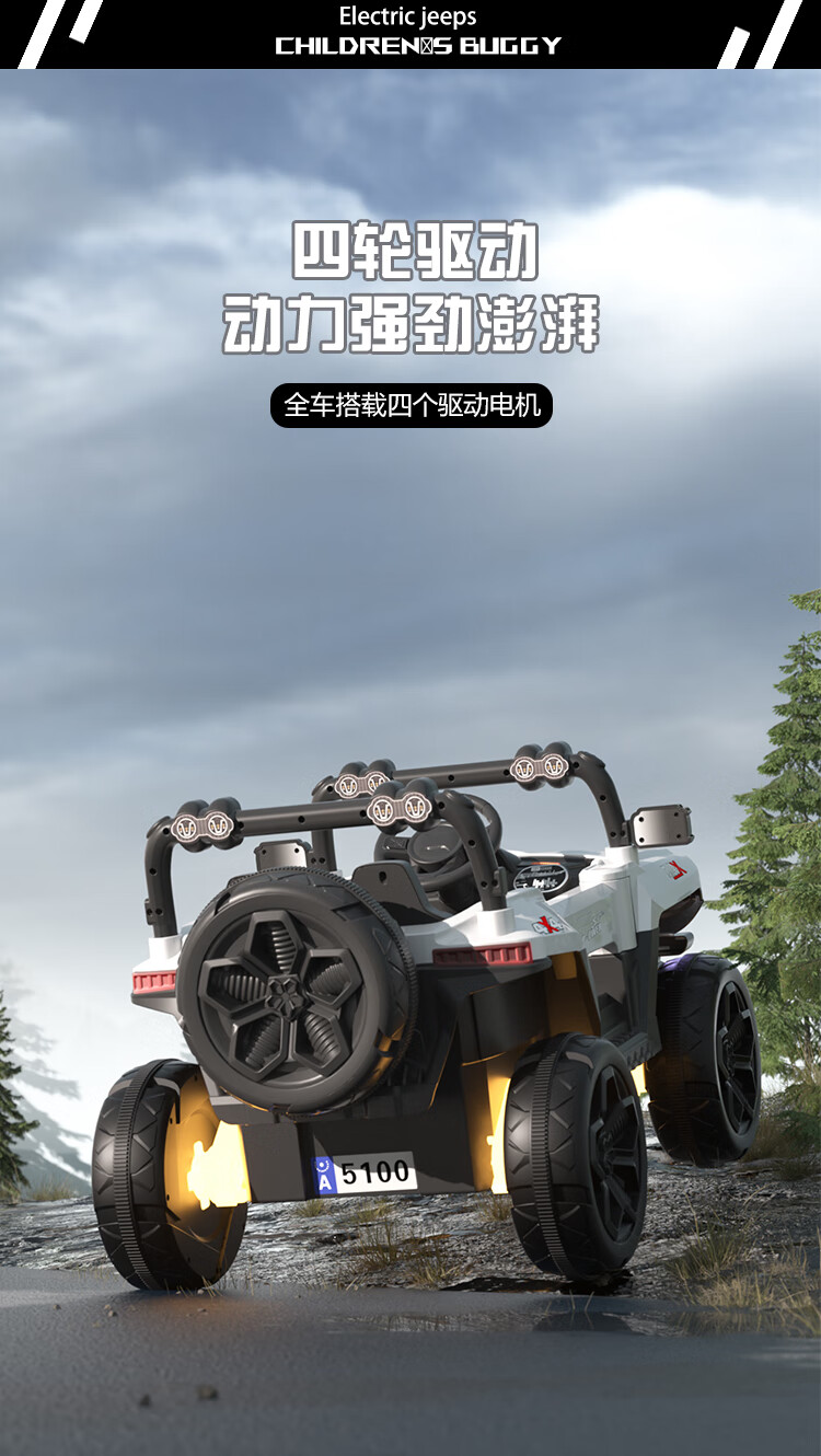 QP four-wheeled children's electric car can sit in off-road car for men and women, remote control toy stroller 5100 5200 red 6v4 dual electric dual drive
