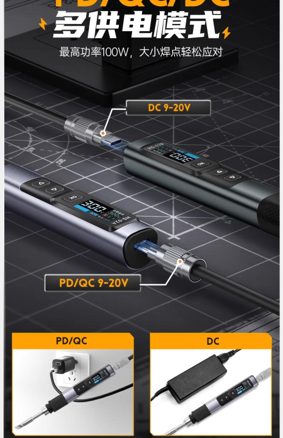 Smart soldering iron 100W portable constant temperature soldering station soldering pen home repair welding HS-02A family photo + mobile workbench