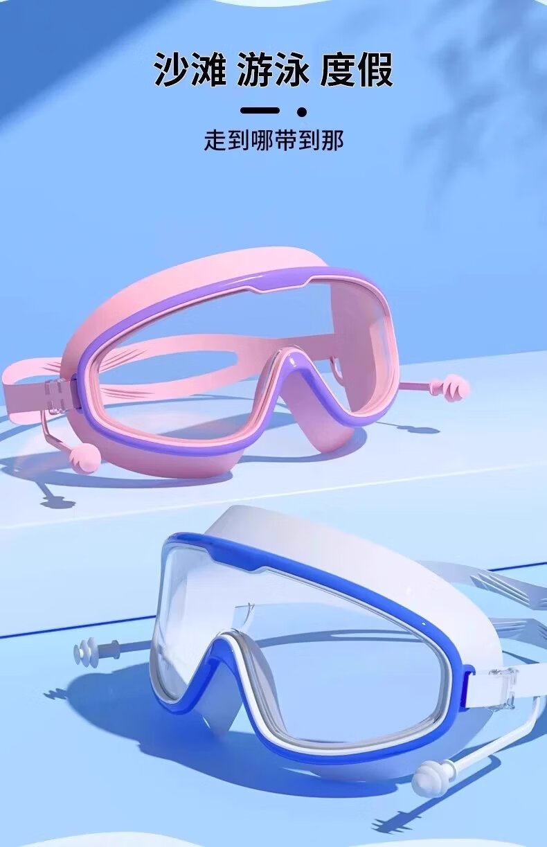 Disney children's bath waterproof glasses little girl's hair shampoo artifact baby eye goggles eye mask children's swimming goggles swimming earplugs nose clip set-pink-1 set