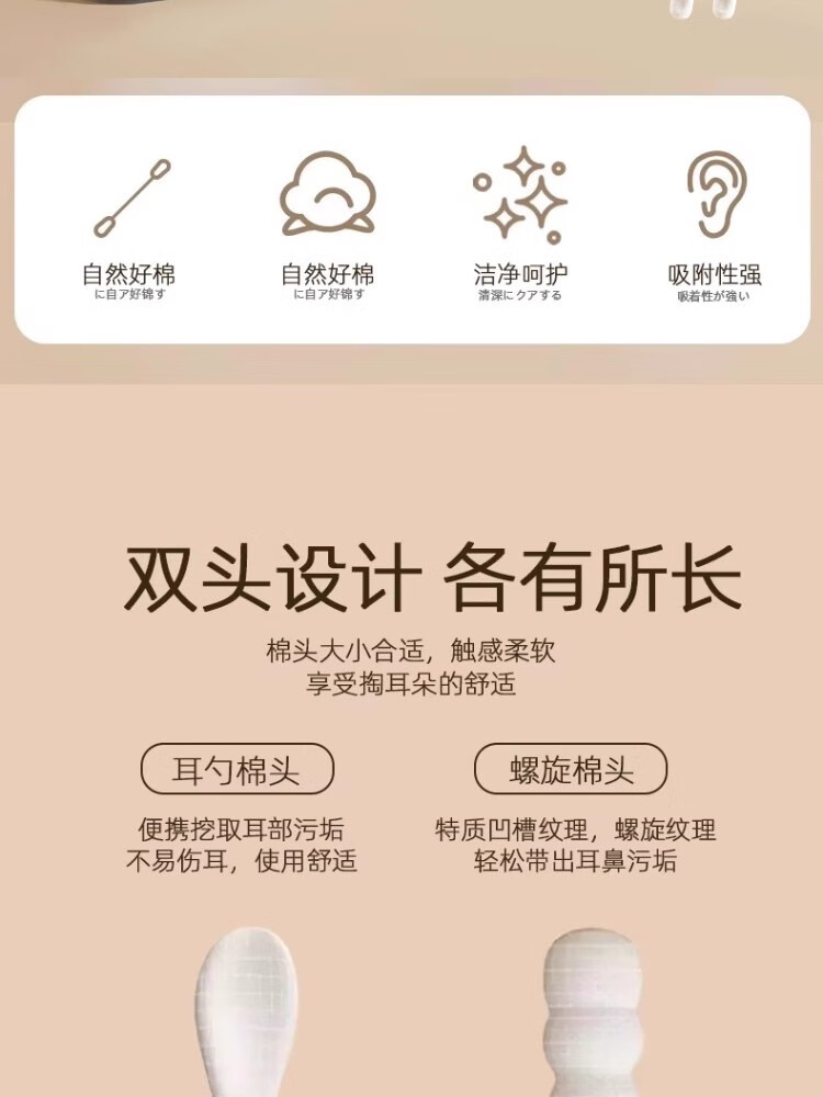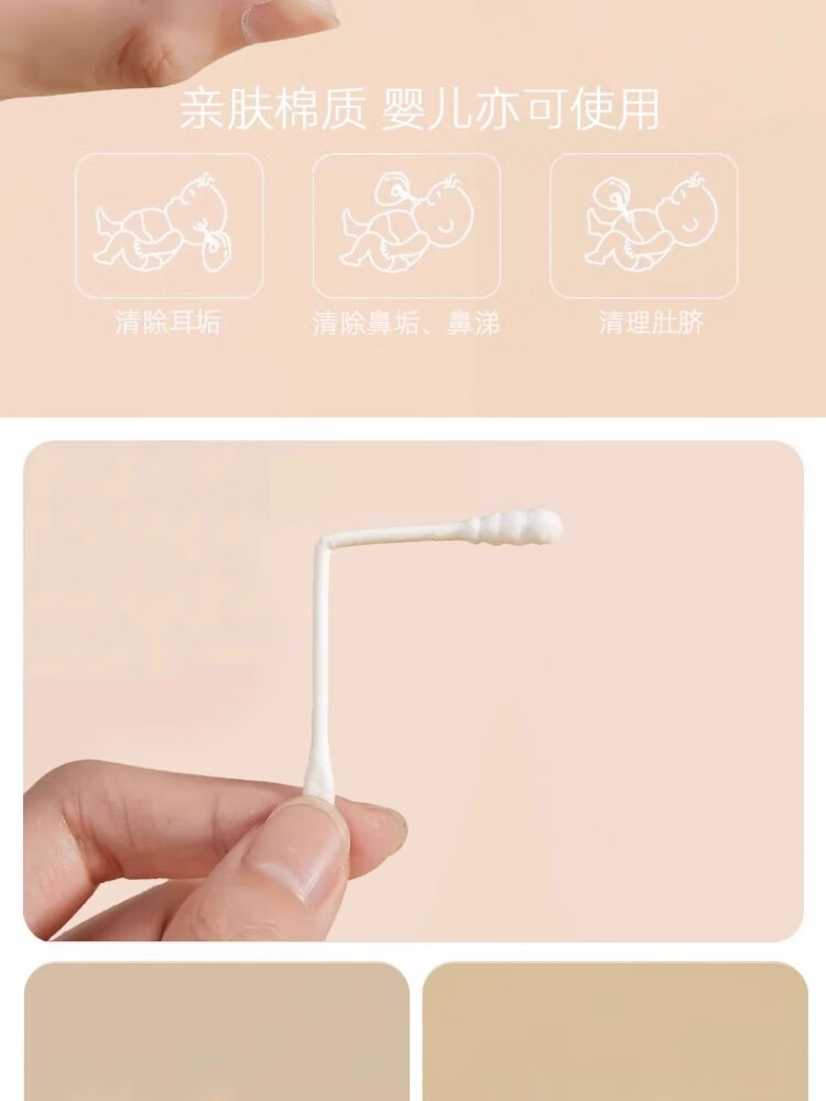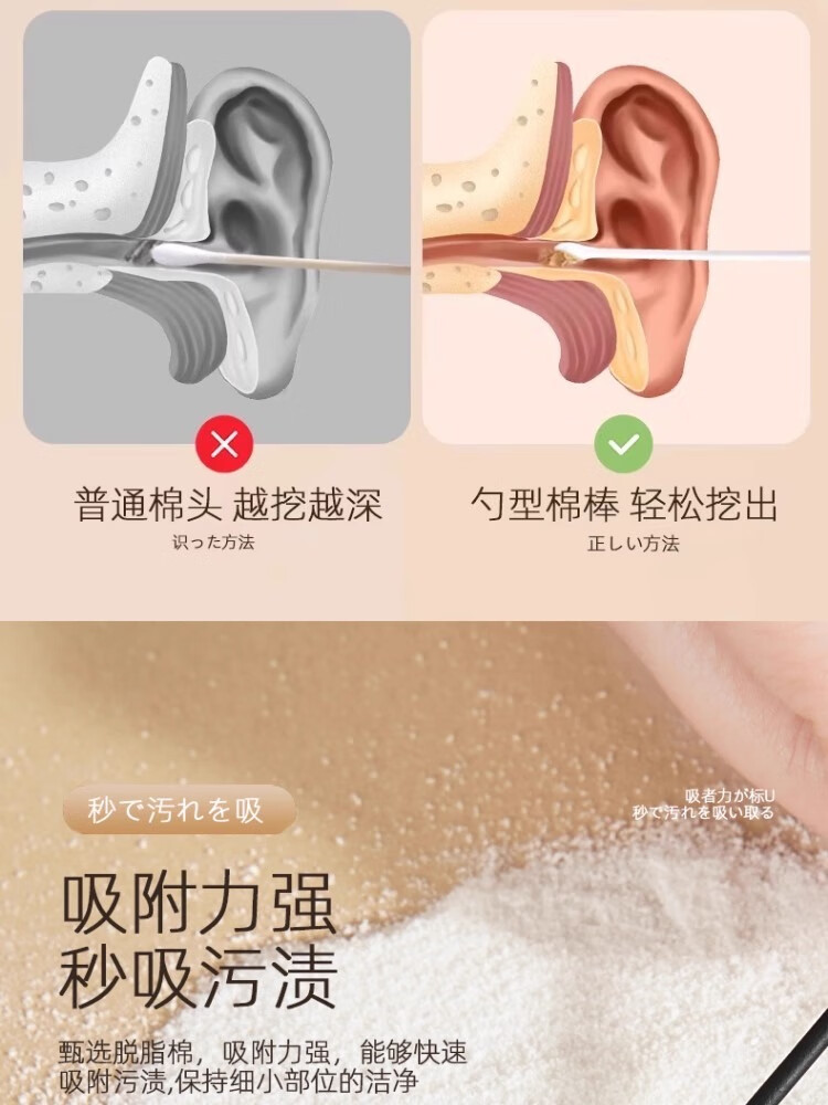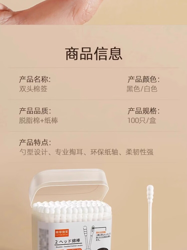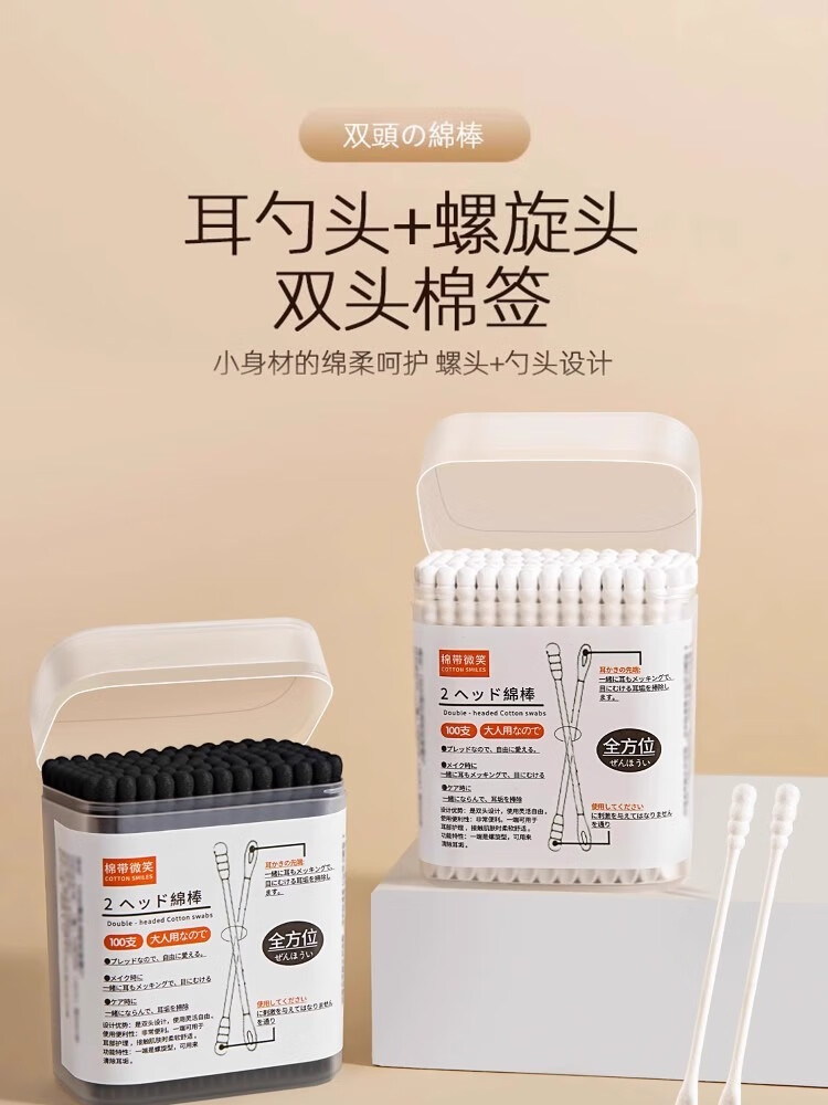 Cotton-tape smile cotton swab for ear oil, special oil-absorbing cotton swab for ears, double-headed non-shedding ear scoop, spiral head massage disposable, black double-headed cotton swab (2 boxes/about 200 pieces)