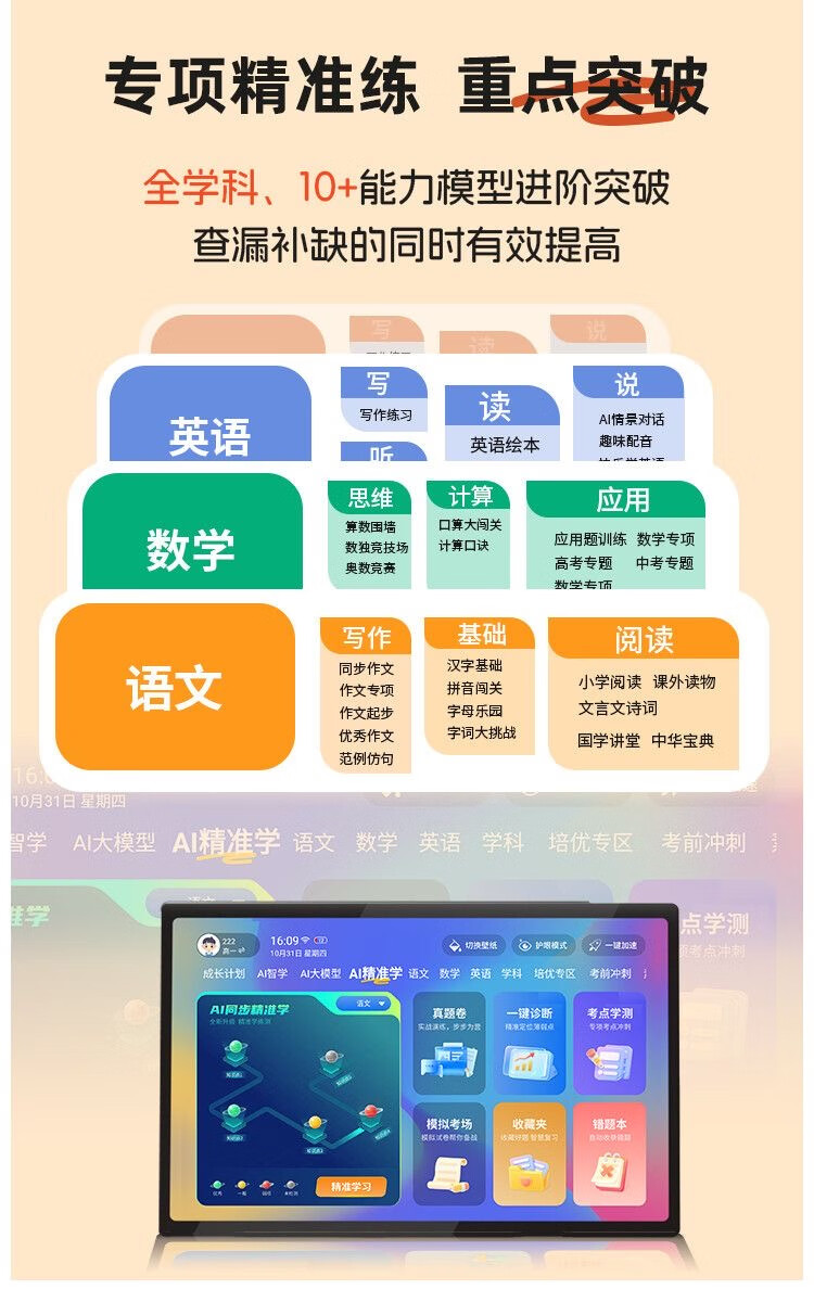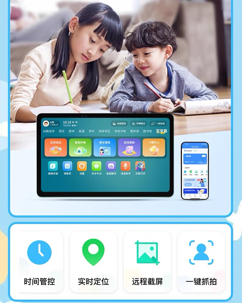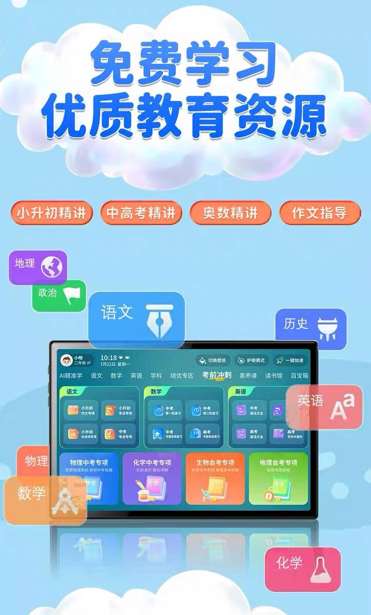 HKMW Huawei machine HUAWEl is suitable for the 2025 new intelligent AI learning machine, primary school, junior high school and high school, general general student tablet reading and tutoring machine, light blue, new curriculum standard synchronization resources + teacher explanation, lifelong 512GB, Snapdragon 12-core 12G operation + 12 inches, new