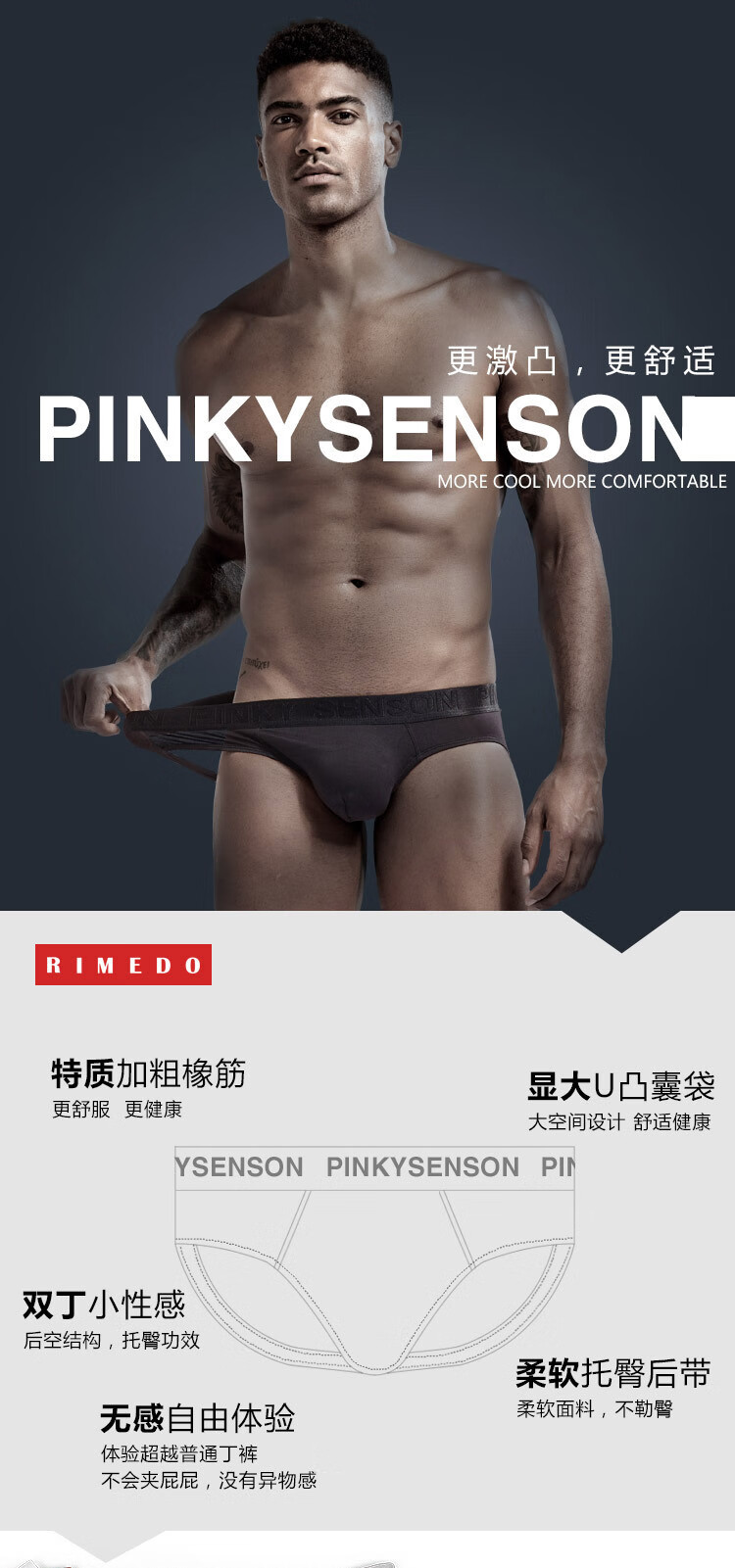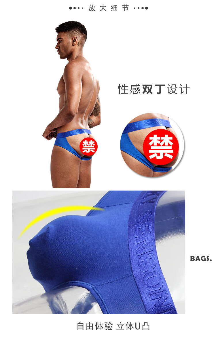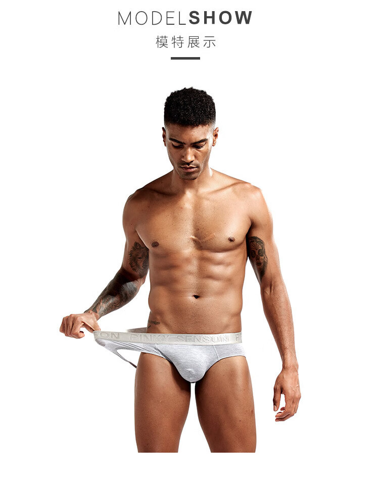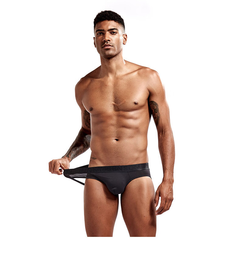 Jiuai underwear men men's doublet modal low waist exposed buttocks U protruding underwear solid color large size black M