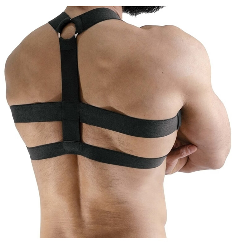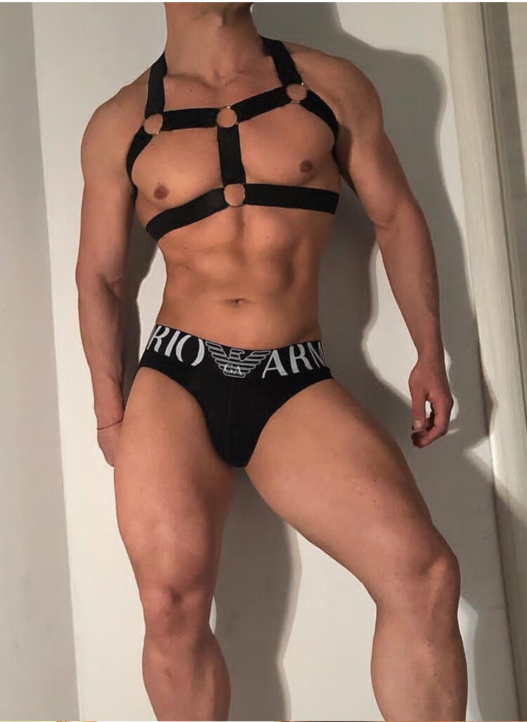 Jiuai low-waisted men's double-butt underwear, sexy, cool and breathable T-pants, seamless butt-lifting sports thong, black (chest strap + underwear) S