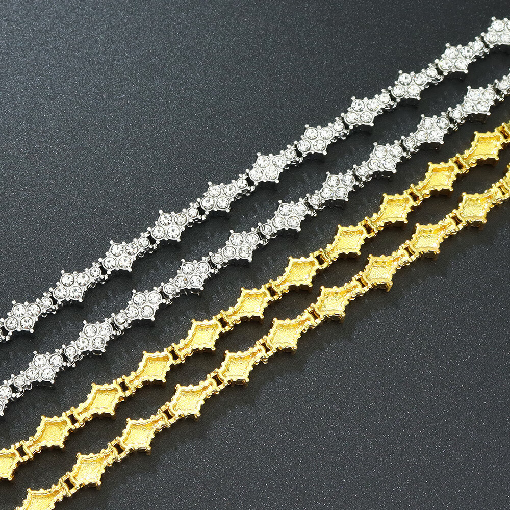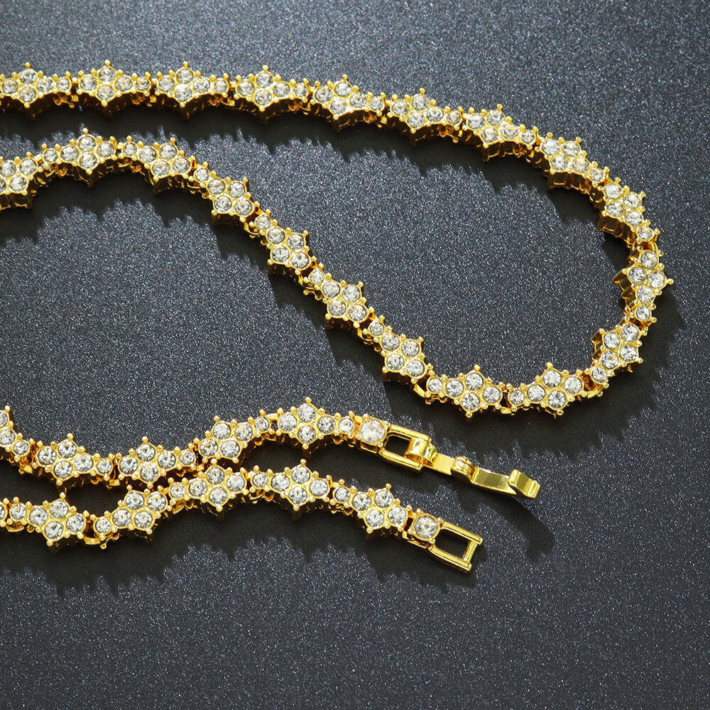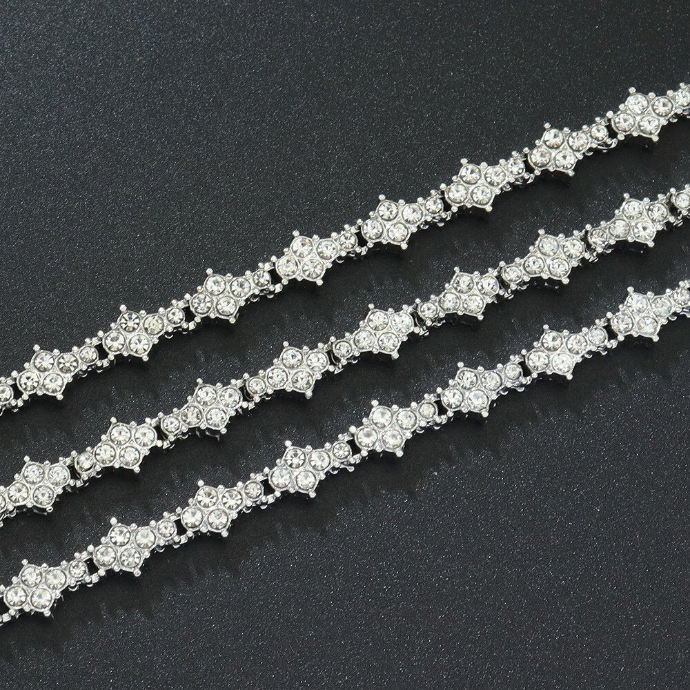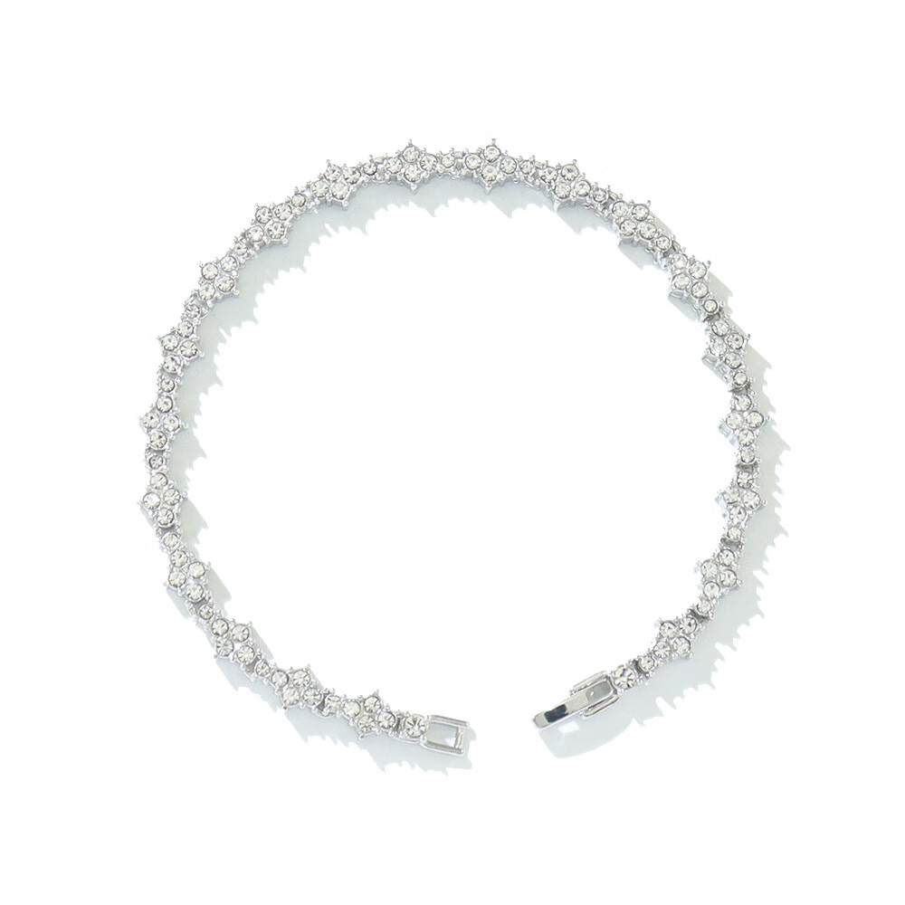 European and American ins style full diamond flower-shaped cross men's and women's trendy tennis chain bracelet bracelet TennisBracelet silver 20cm 8inch ()