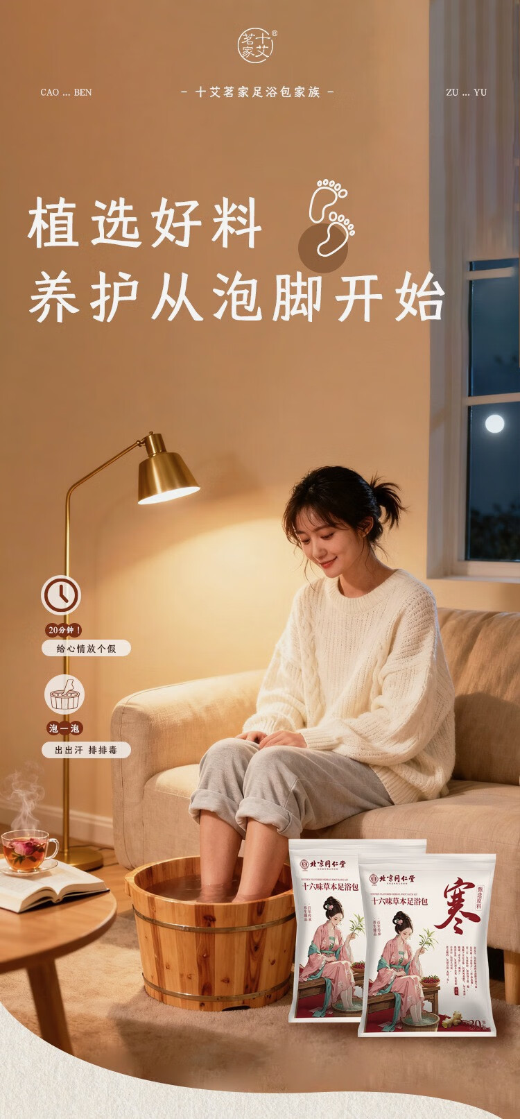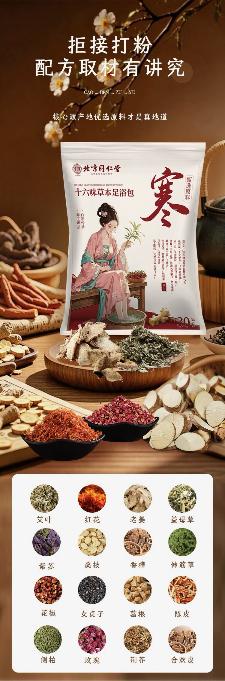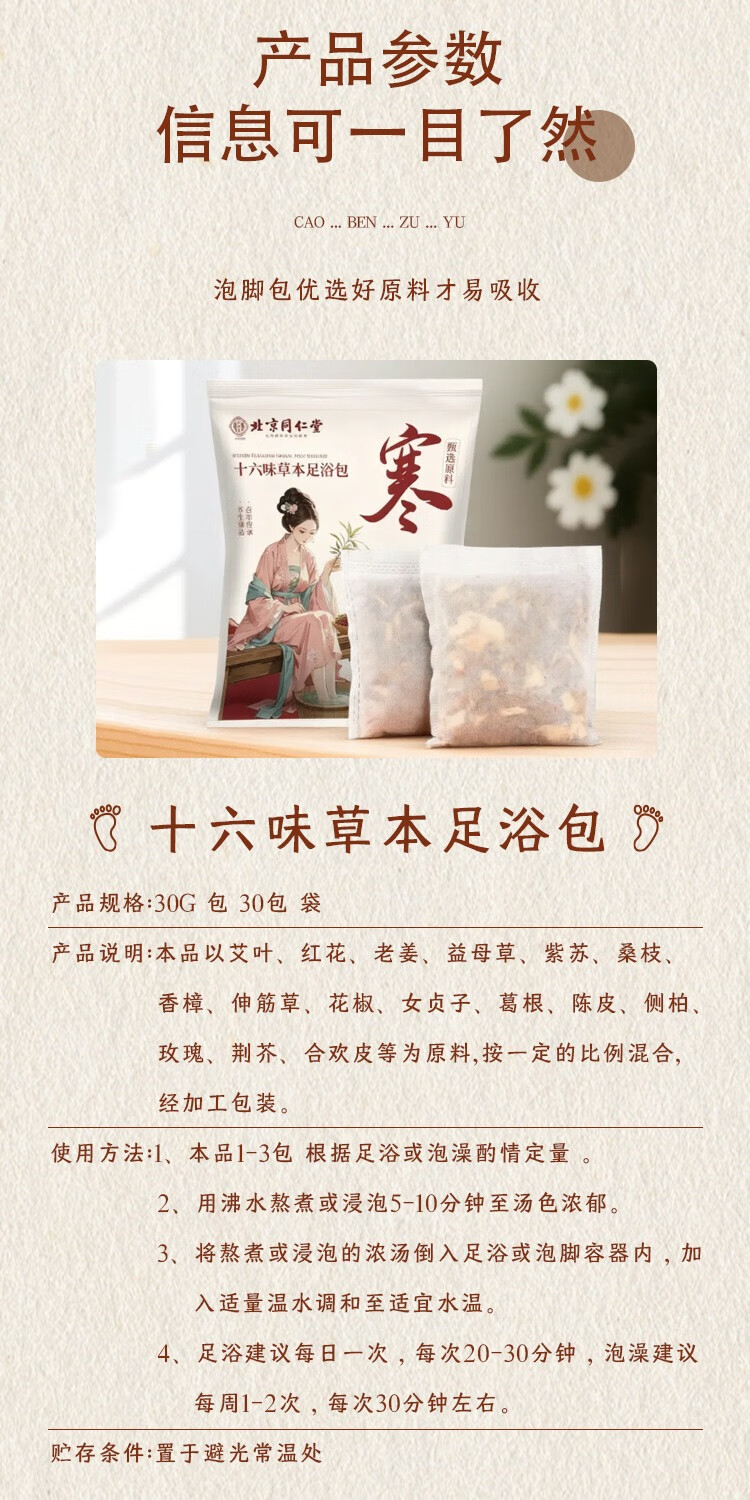 Tongrentang Foot Bath Medicinal Pack for middle-aged and elderly people to activate blood circulation, help sleep, remove rheumatism, joint pain, foot soaking medicated pack for numbness of hands and feet, expel cold, foot bath pack 2 bags, 60 packs, unblock meridians and remove blood stasis